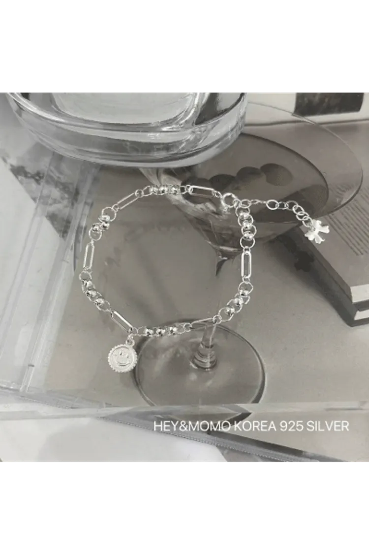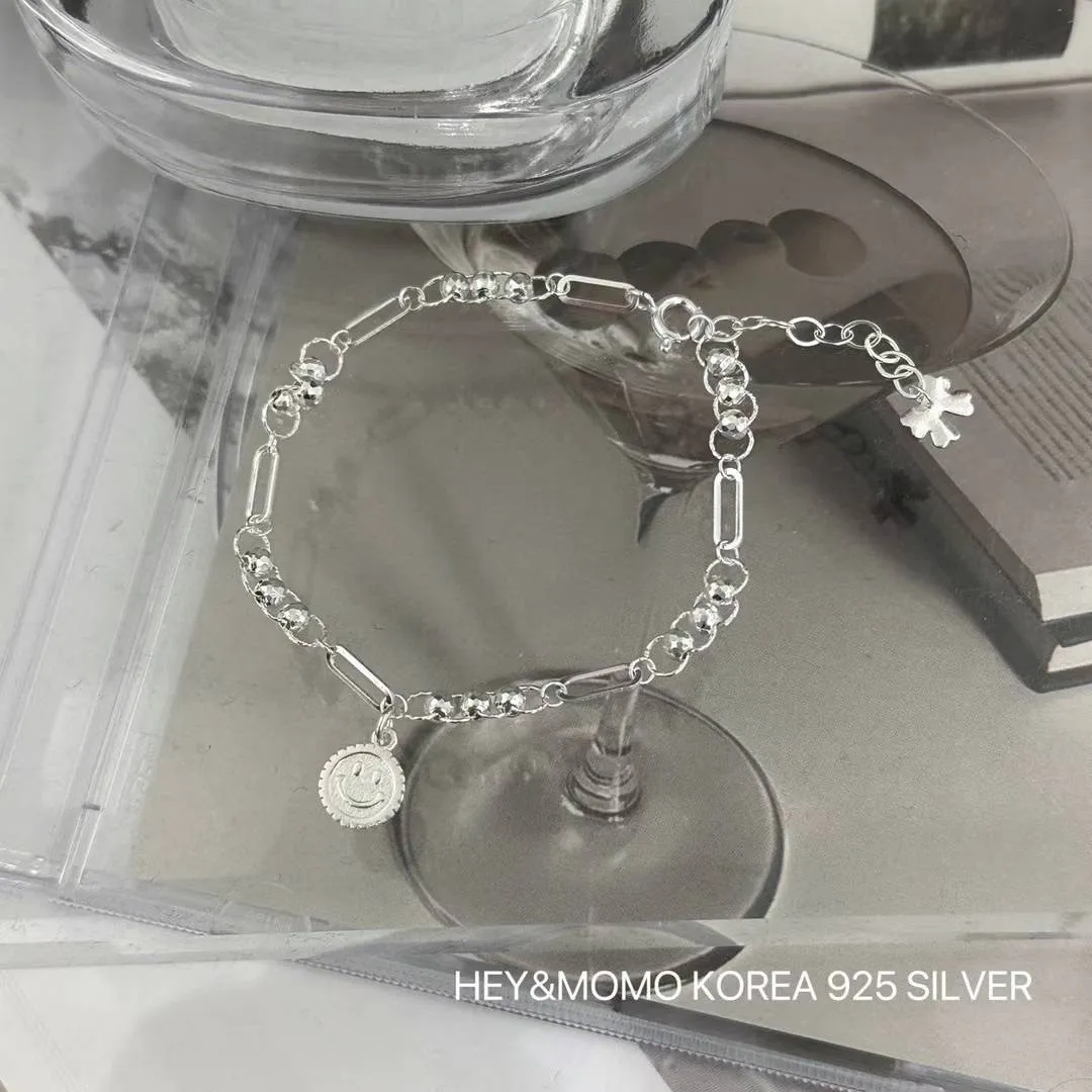 CS391笑臉霧面亮銀925純銀手鍊 $550