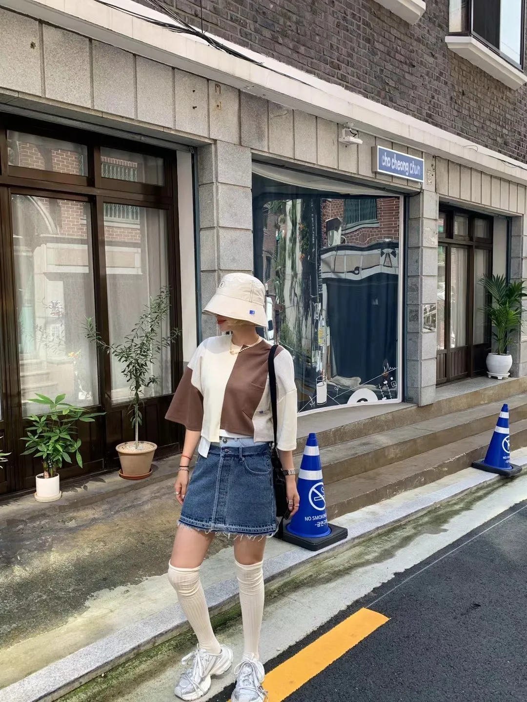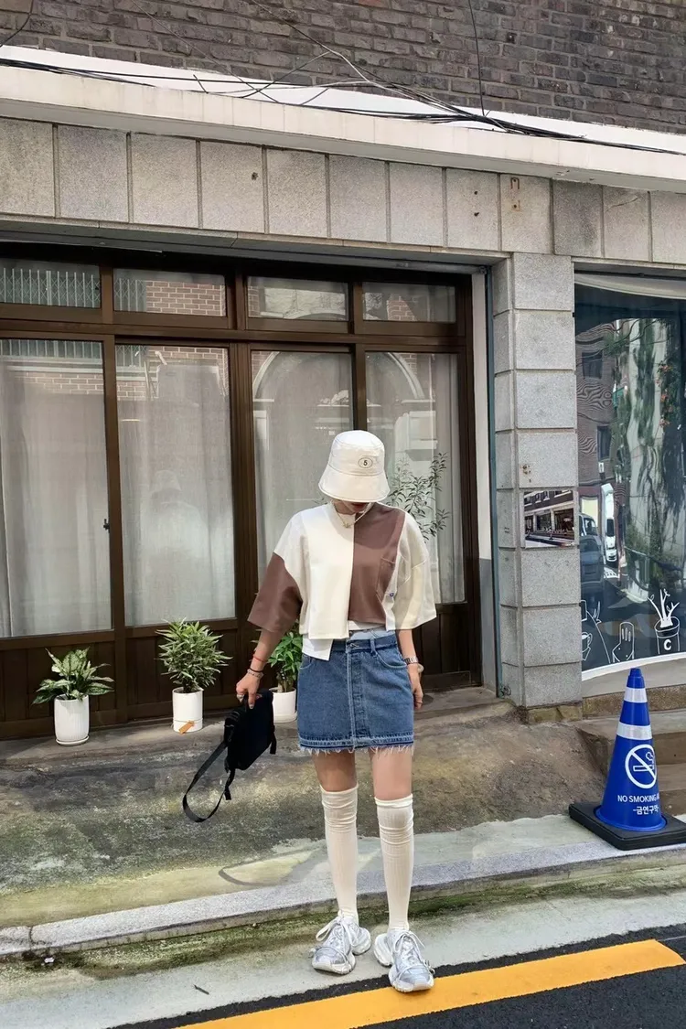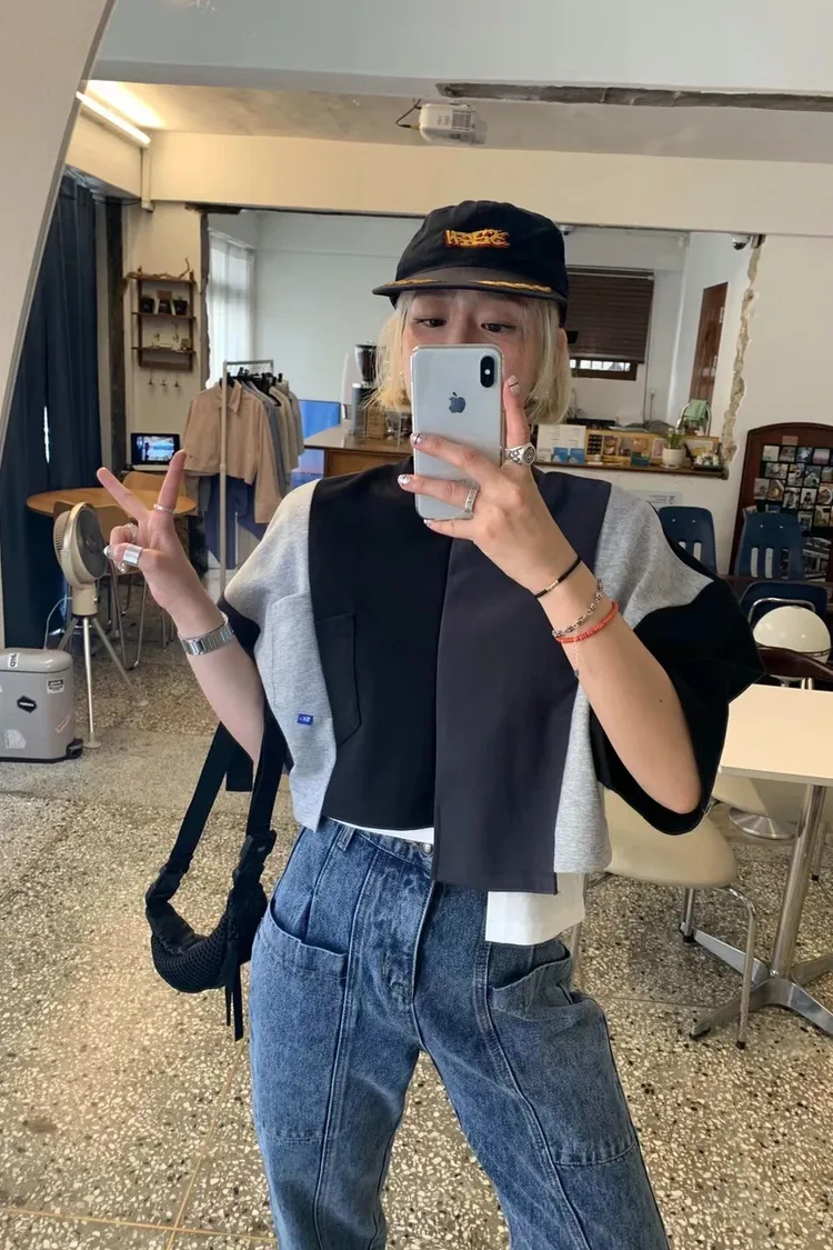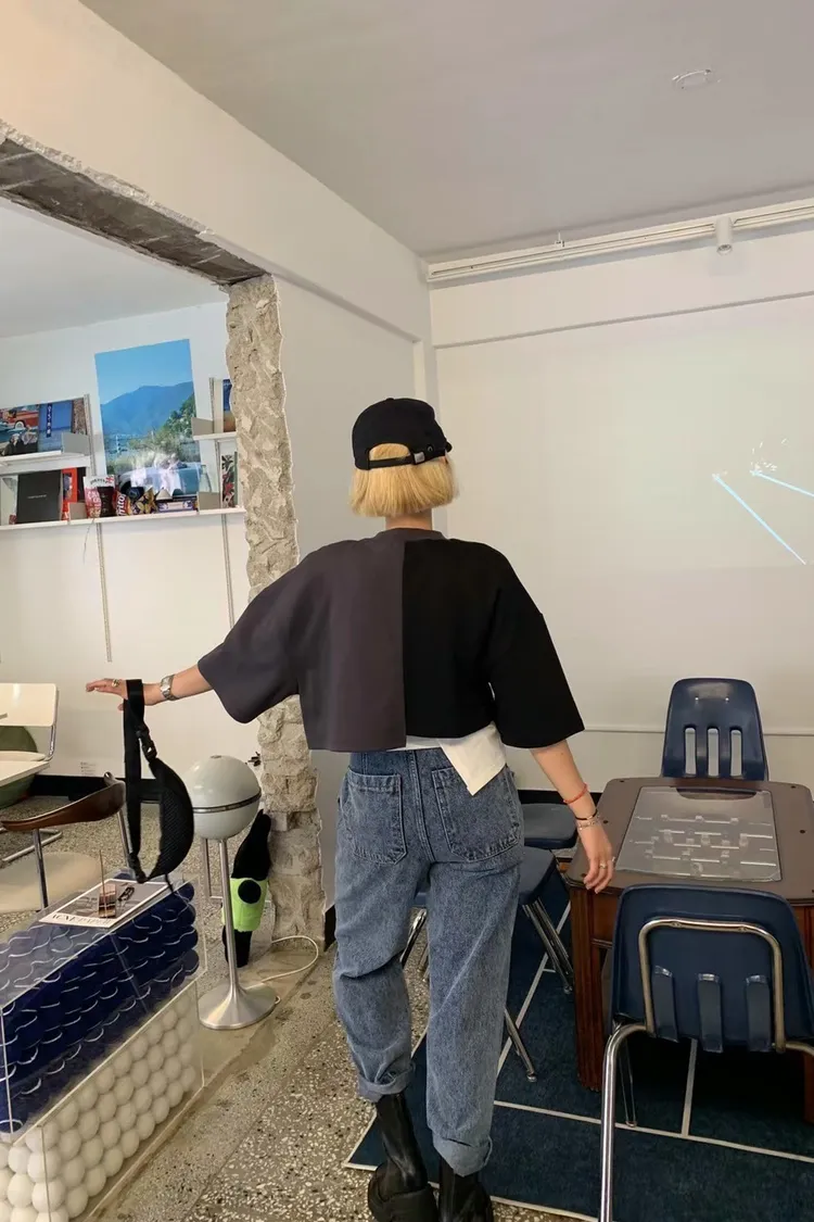 CS425切割拚接超態度短版短袖上衣 白 咖 黑 線上價$790 官網價$820