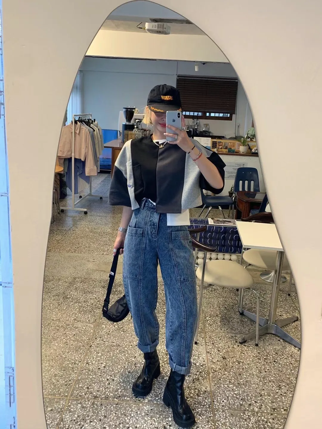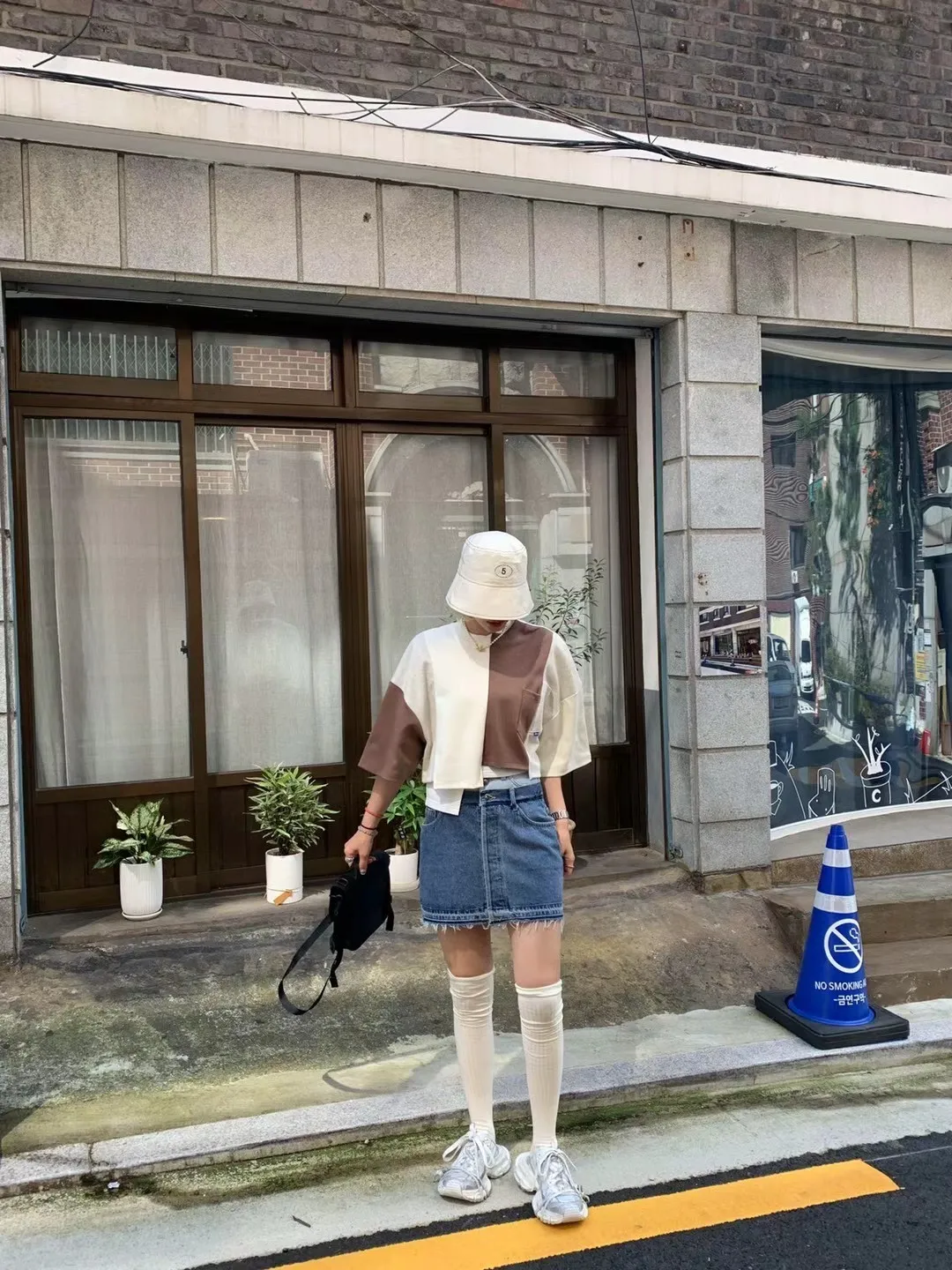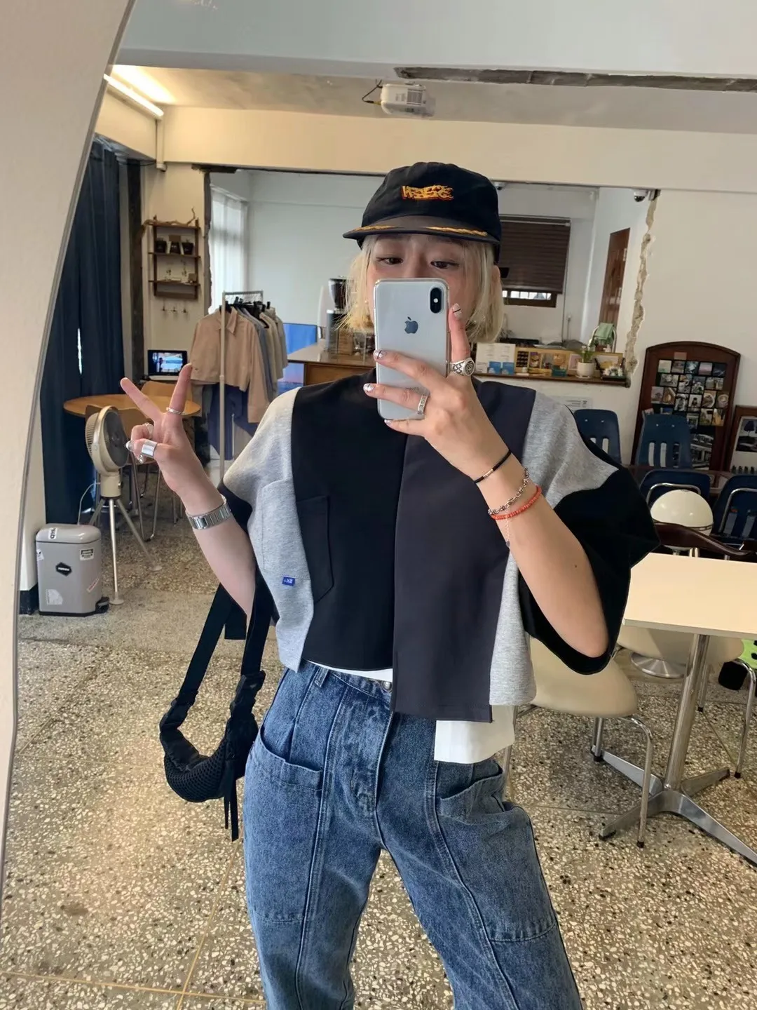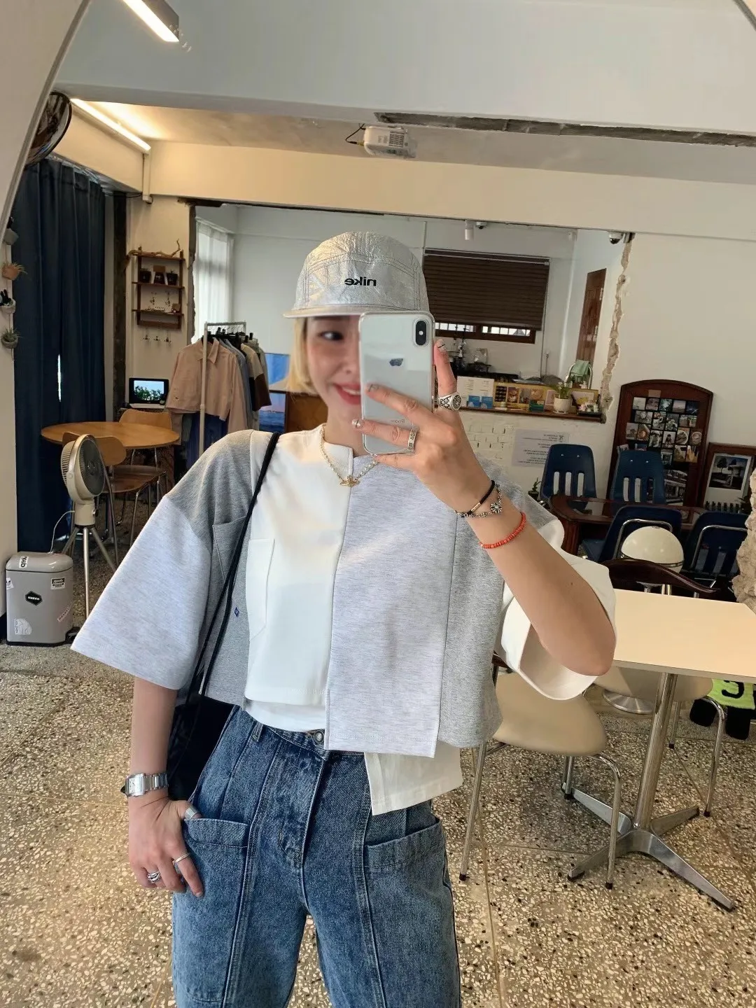 CS425切割拚接超態度短版短袖上衣 白 咖 黑 線上價$790 官網價$820