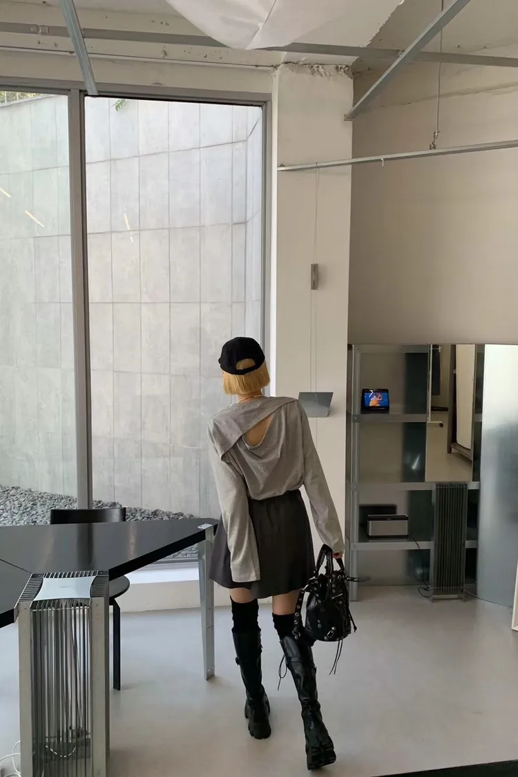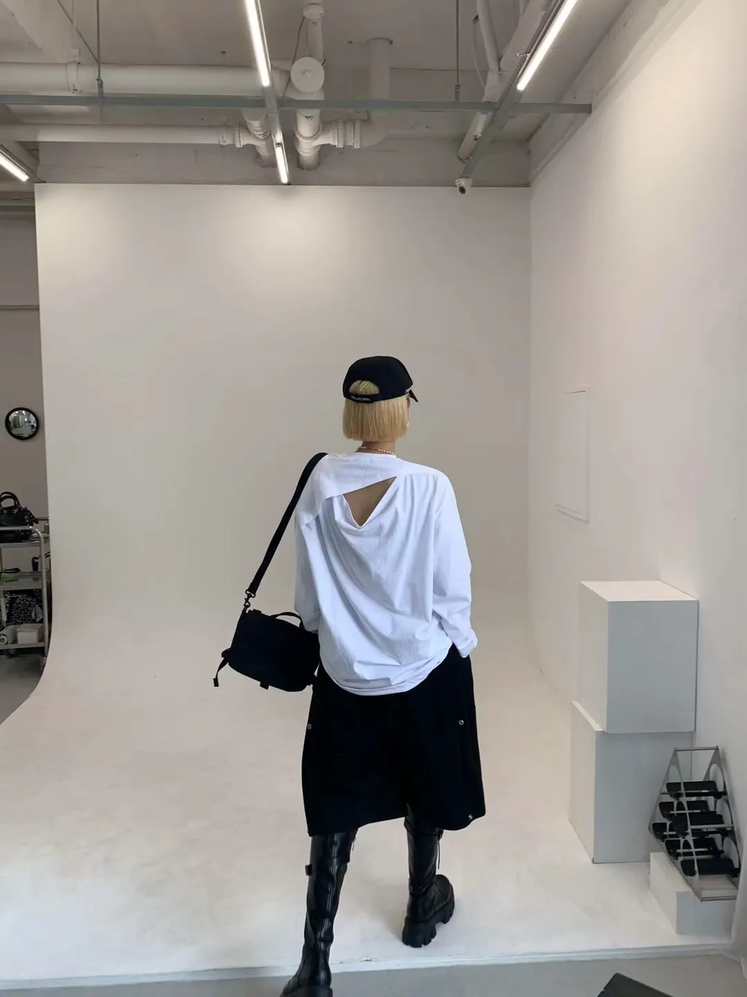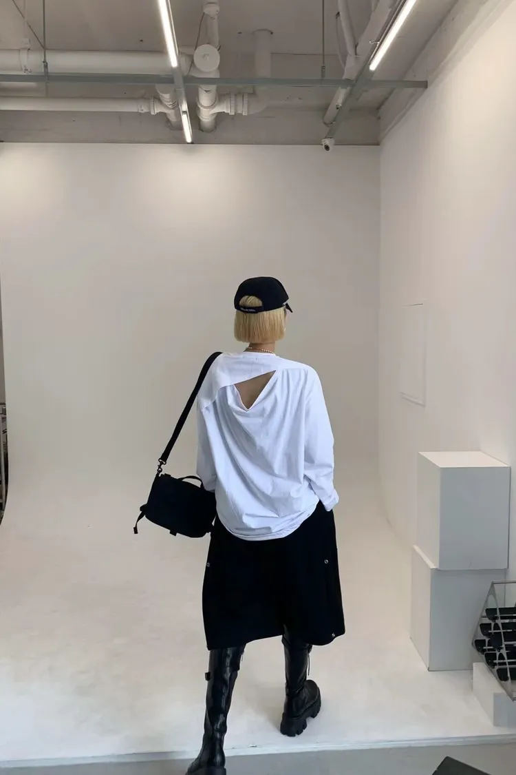 CS429背後簍空多層次三角小標Tshirt 白 灰 黑 線上價$799 官網價$829