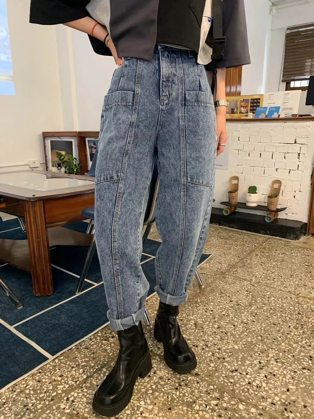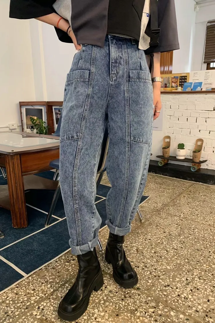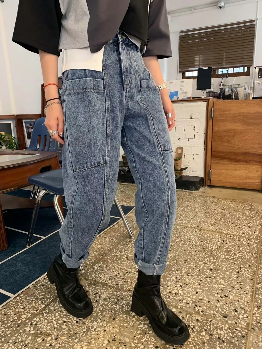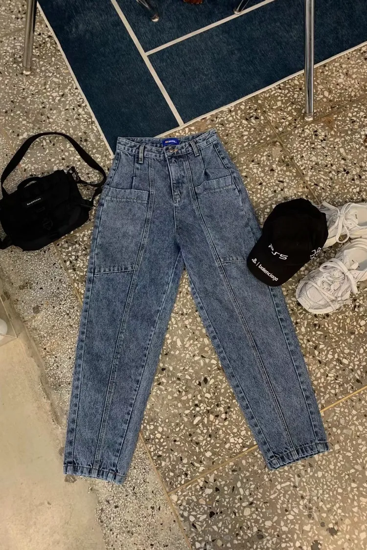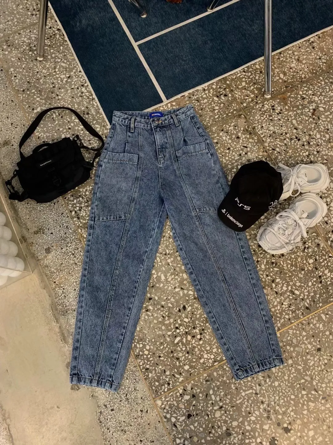 CS436復古雪花灰高腰車線牛仔長褲 線上價$1230 官網價$1260