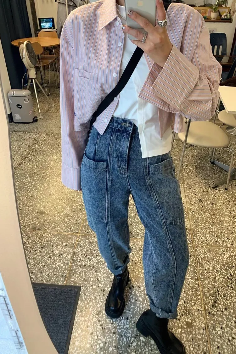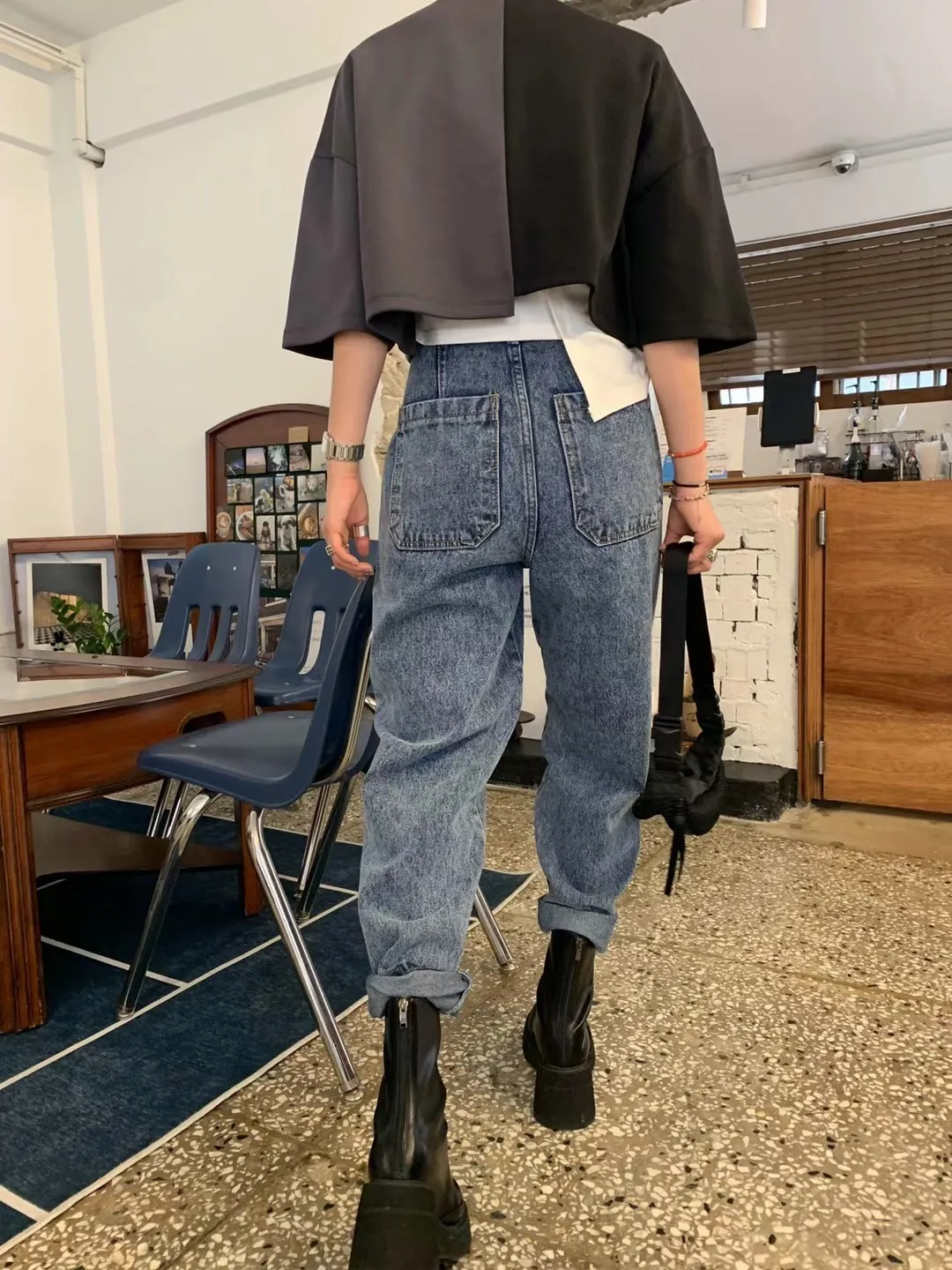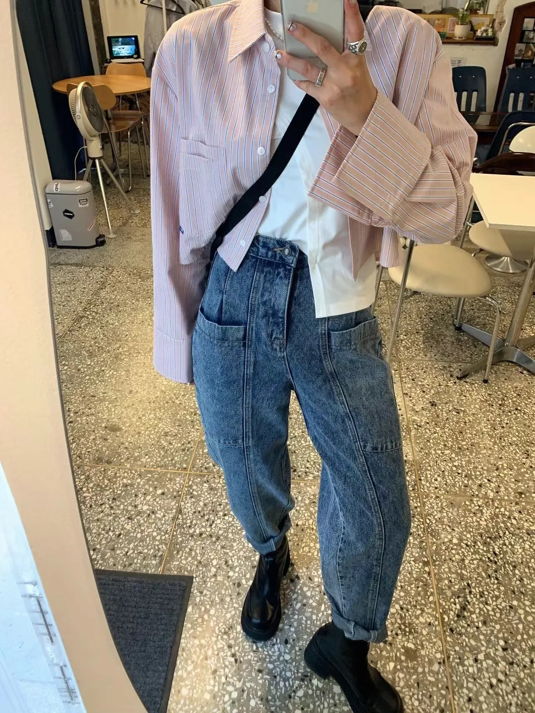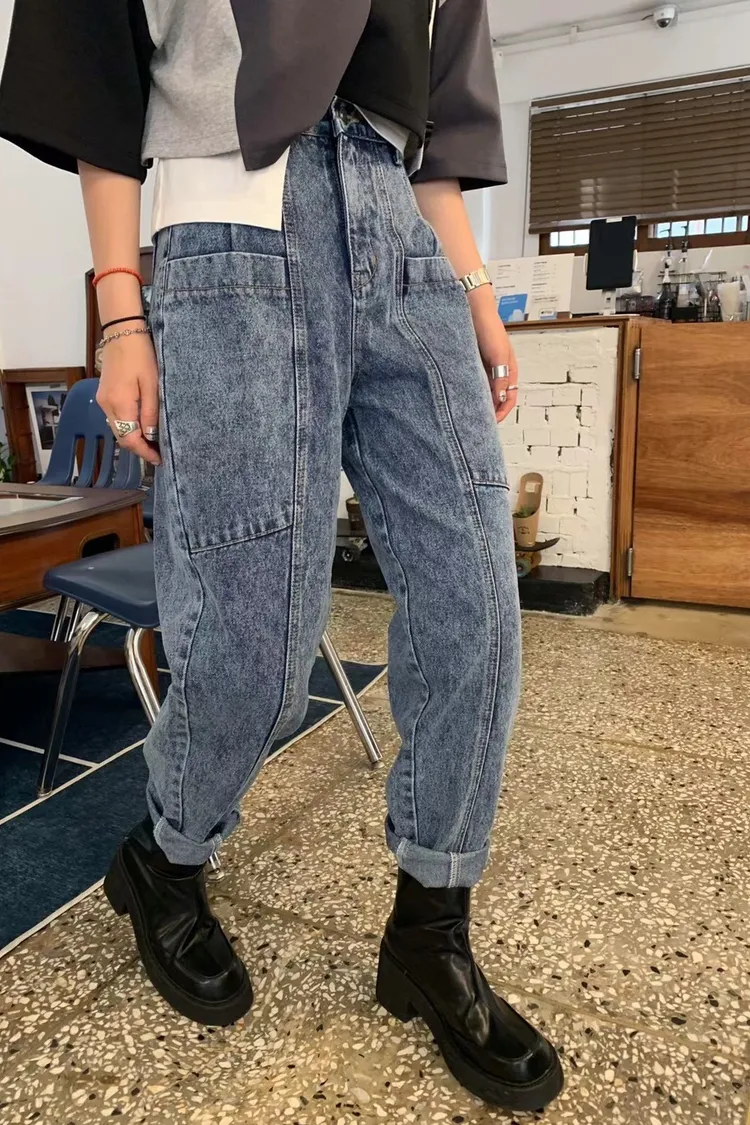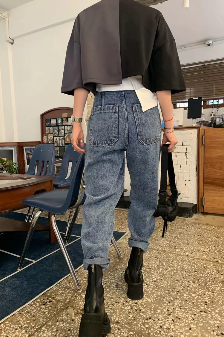 CS436復古雪花灰高腰車線牛仔長褲 線上價$1230 官網價$1260