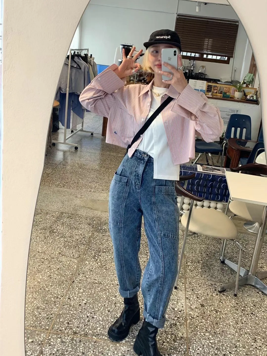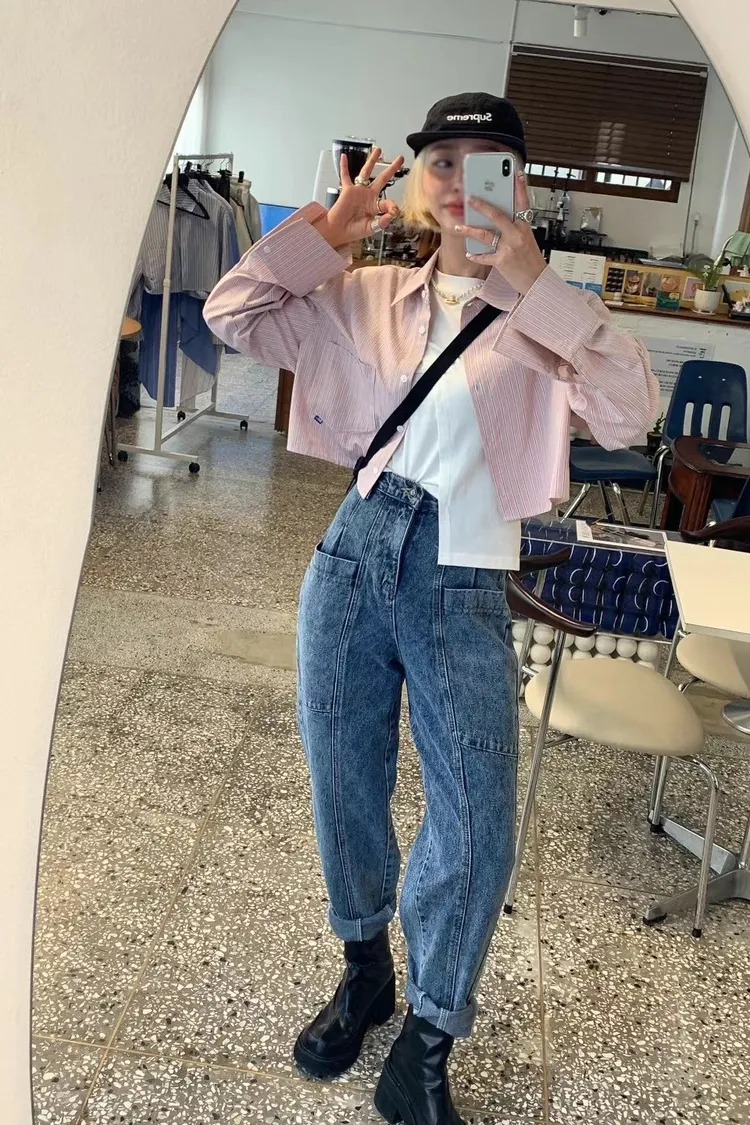 棉100% 高腰款 復古雪花刷色 立體車線 細腰設計 顯腿長比例