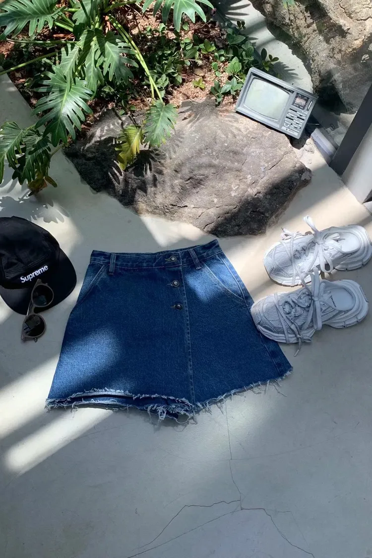 CS440必收藏三釦牛仔褲裙 S M L 線上價$1060 官網價$1090