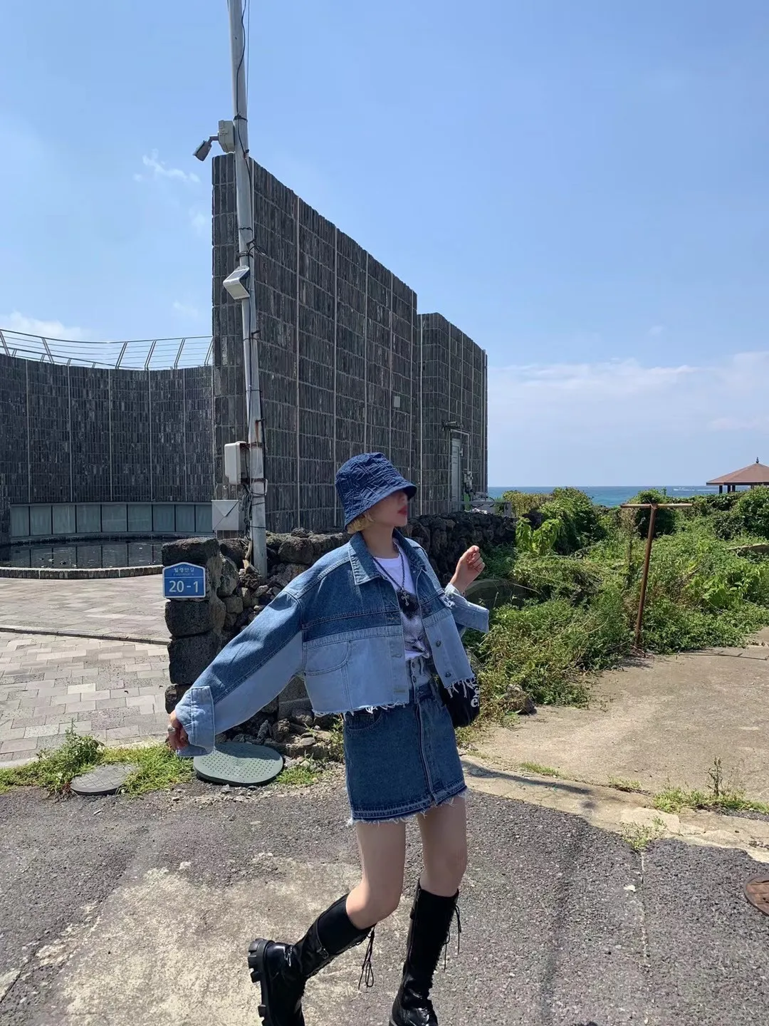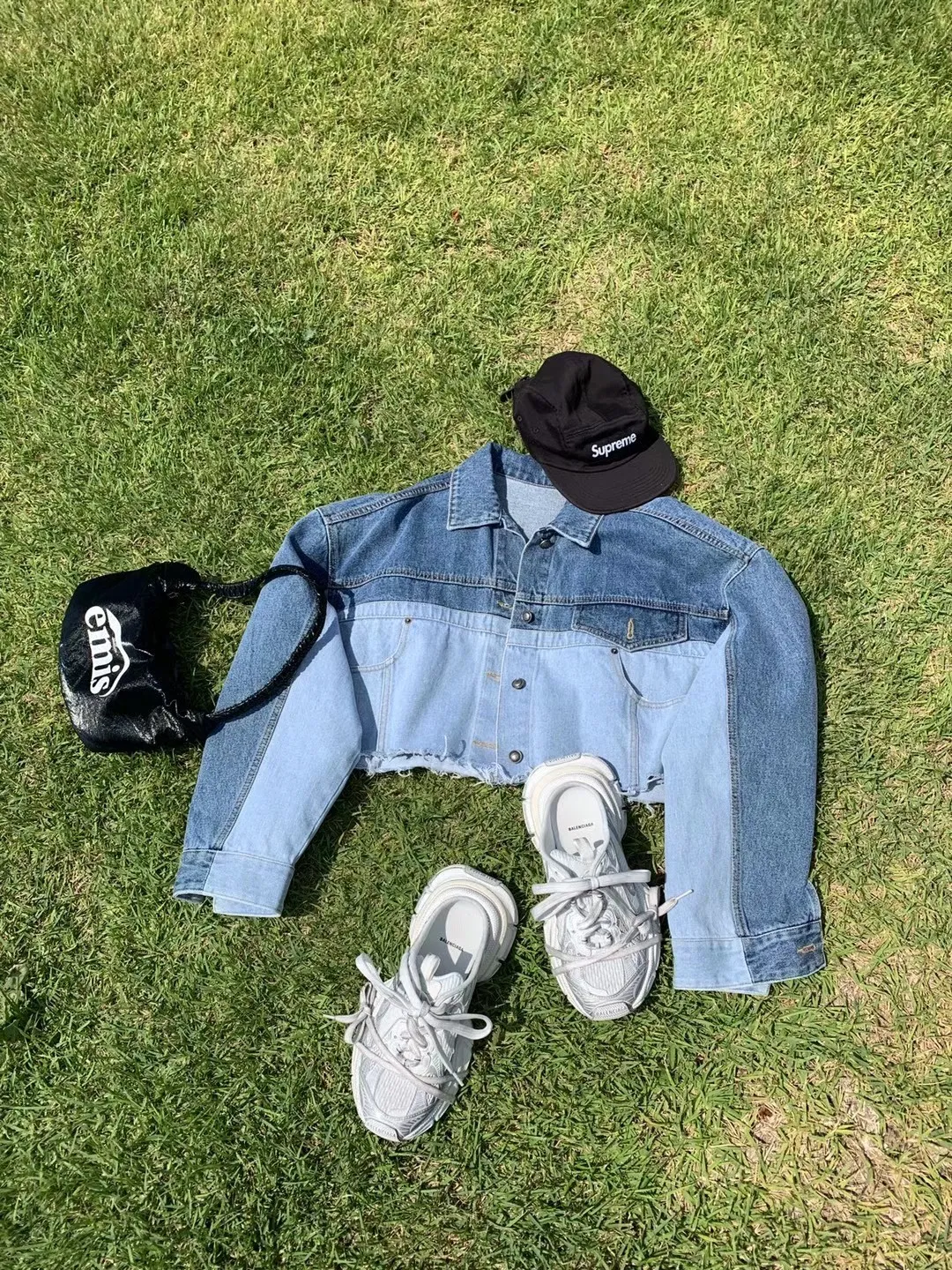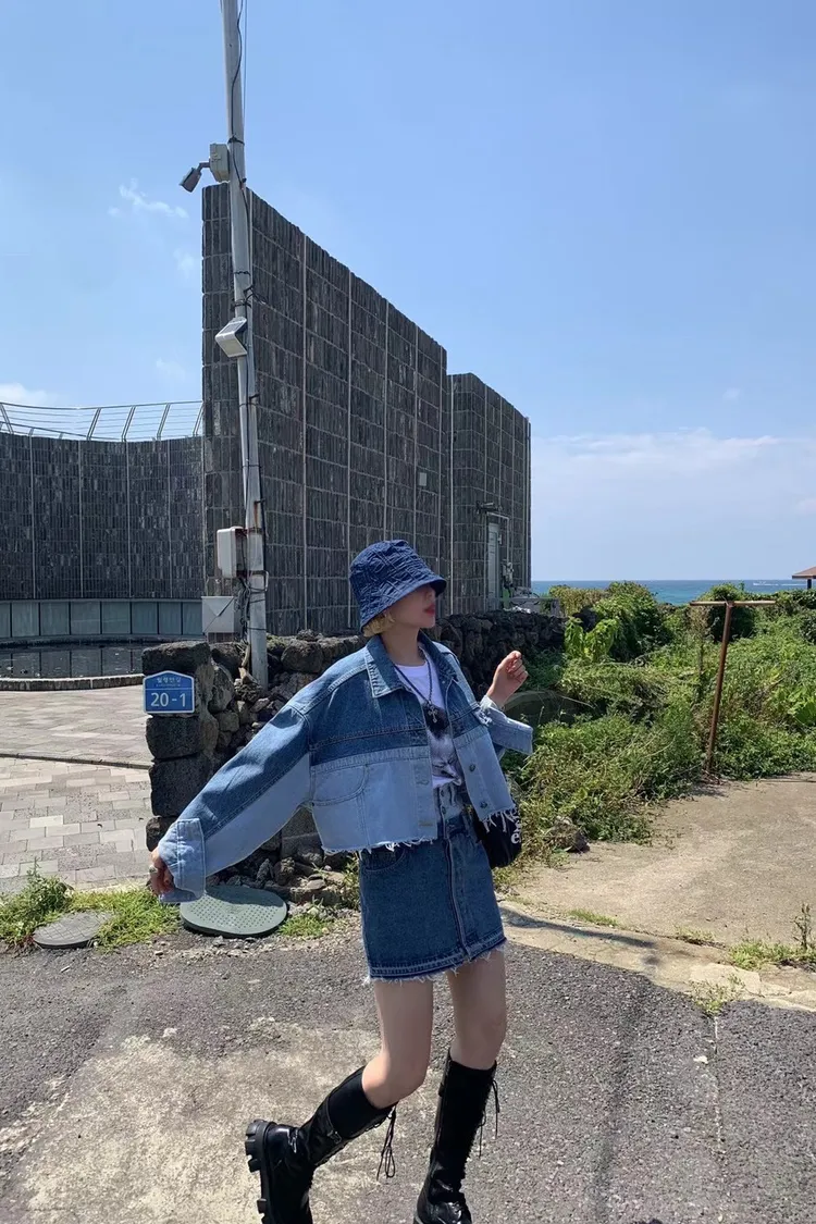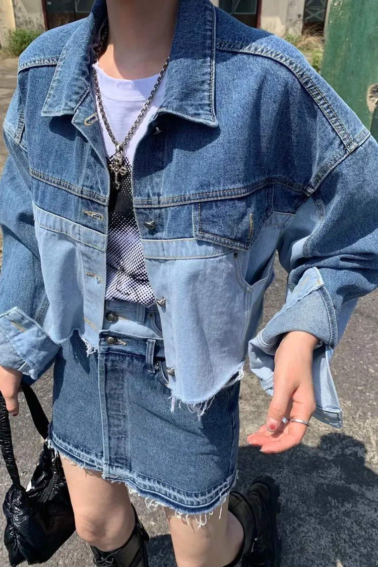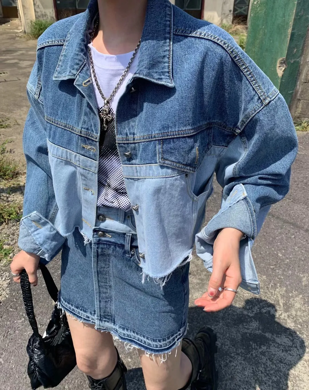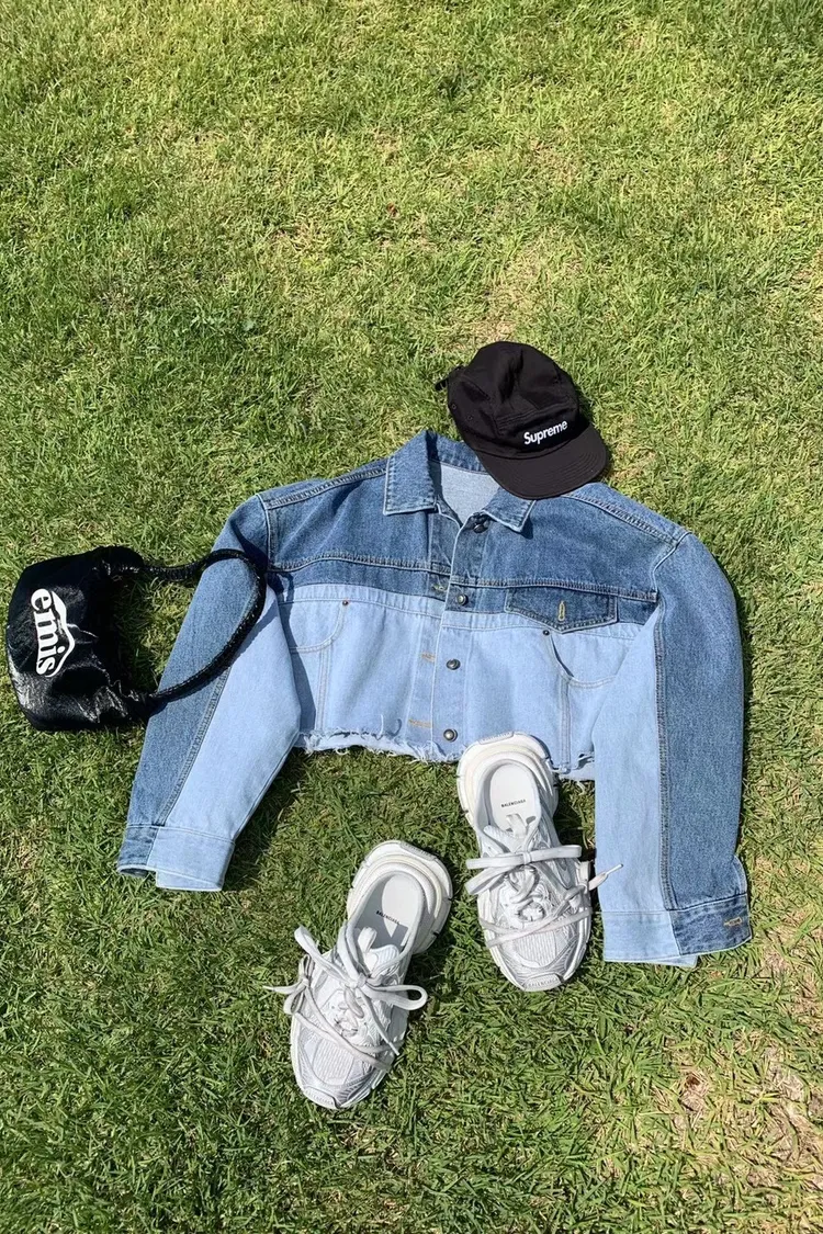 CS445淺藍拼接鬚鬚牛仔短版外套 線上價$1770 官網價$1790