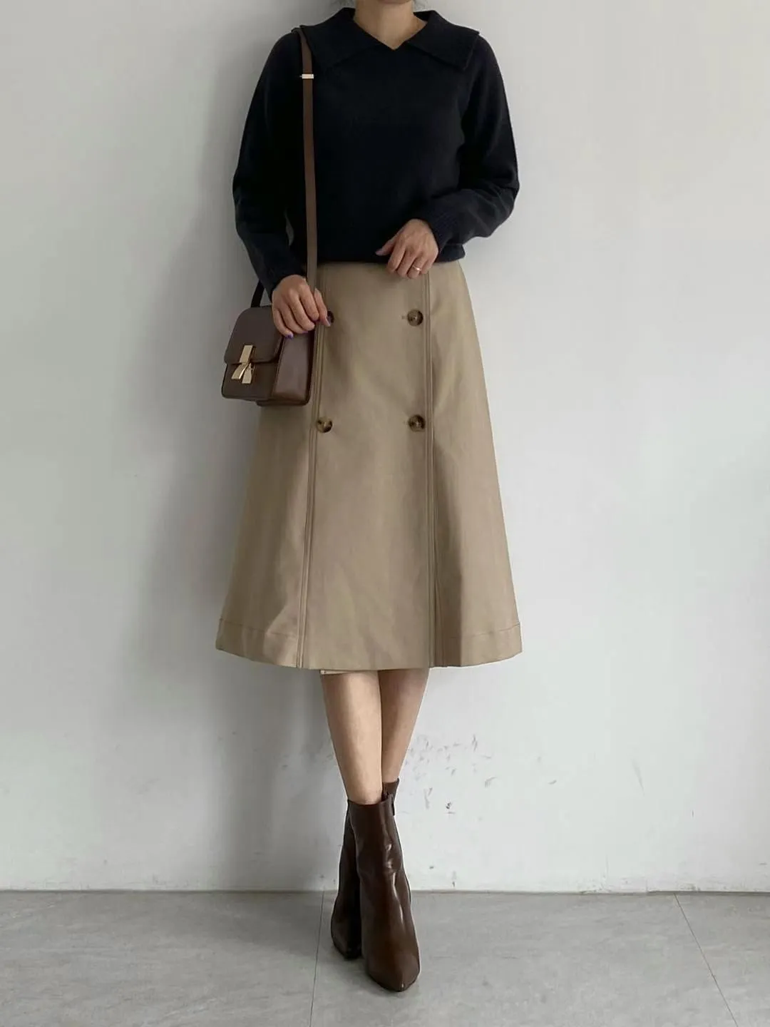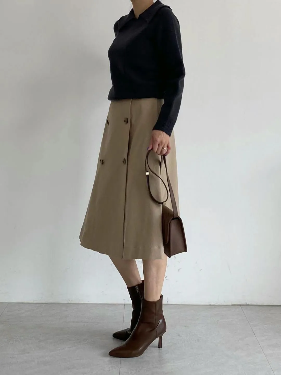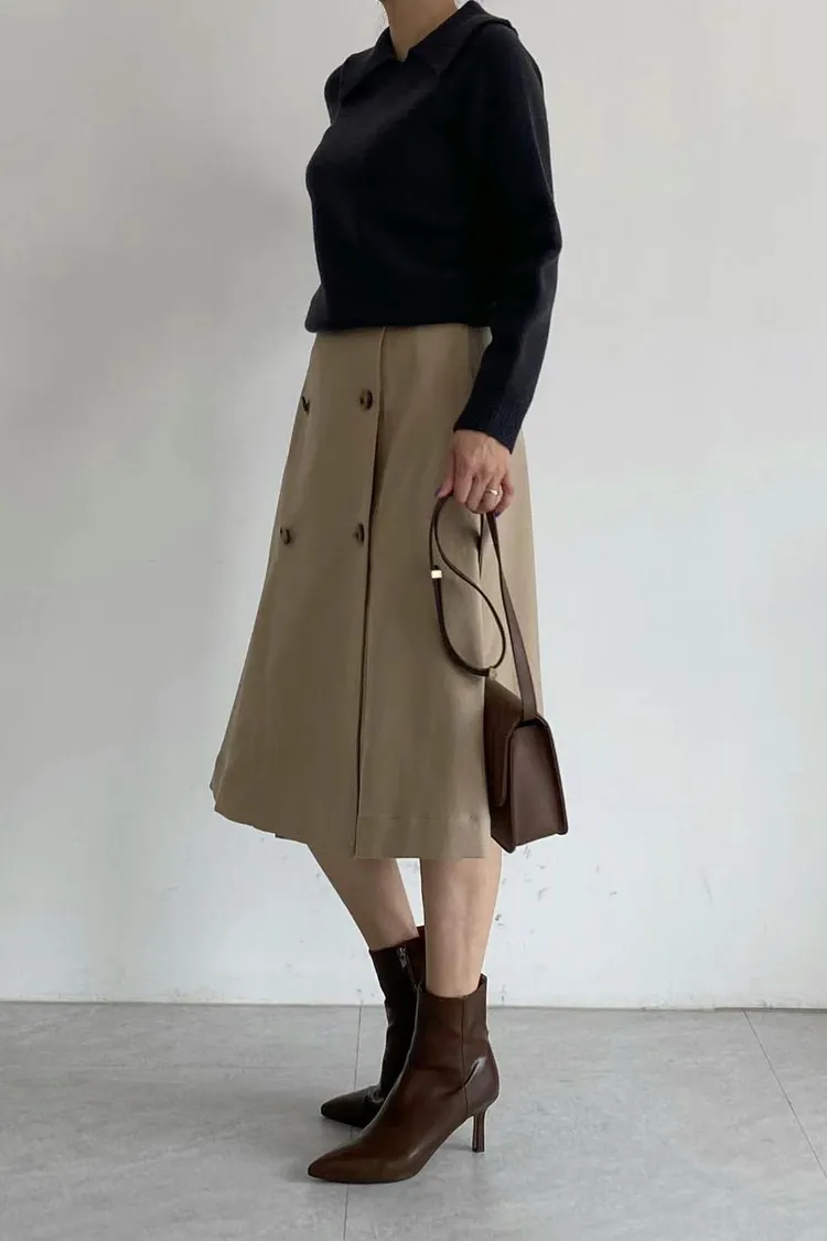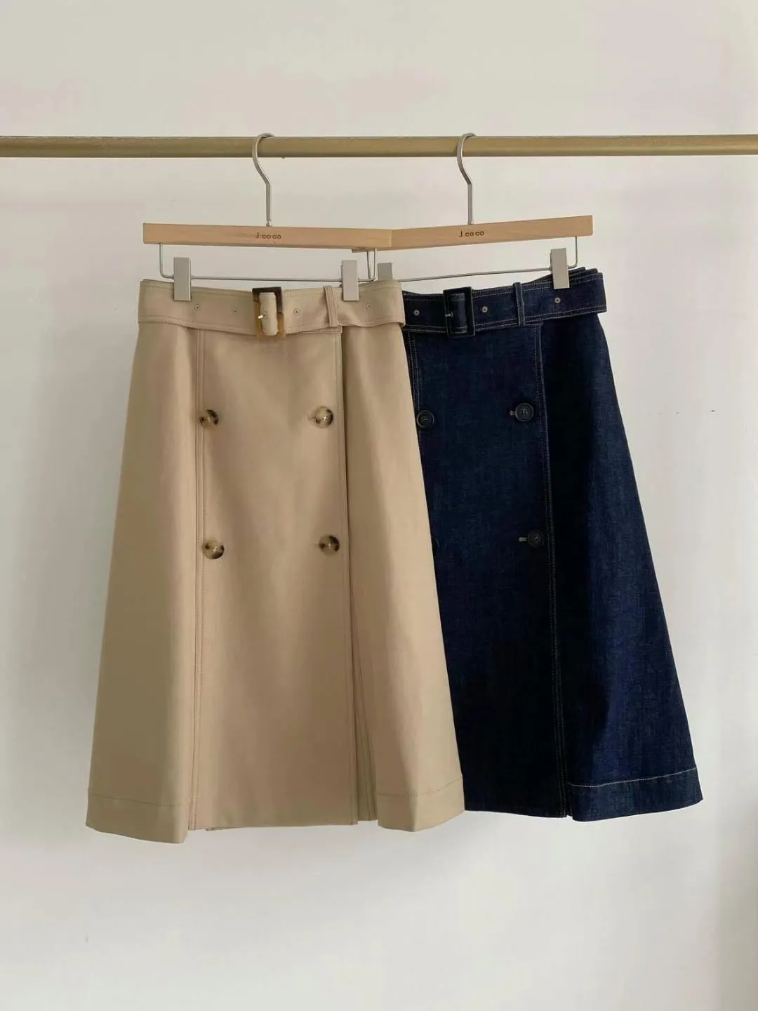 CS457四釦腰綁帶Aline中長裙(附腰帶) 藍 綠 奶茶 S M 線上價$3020 官網價$3050