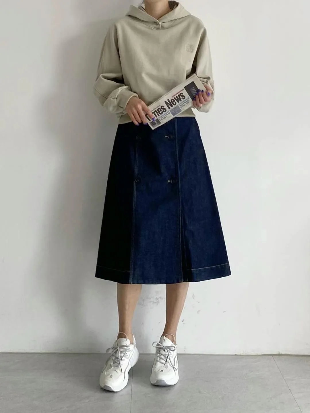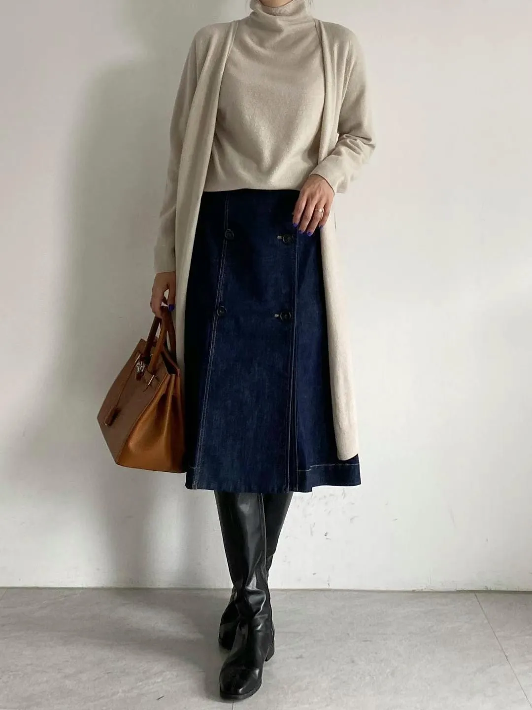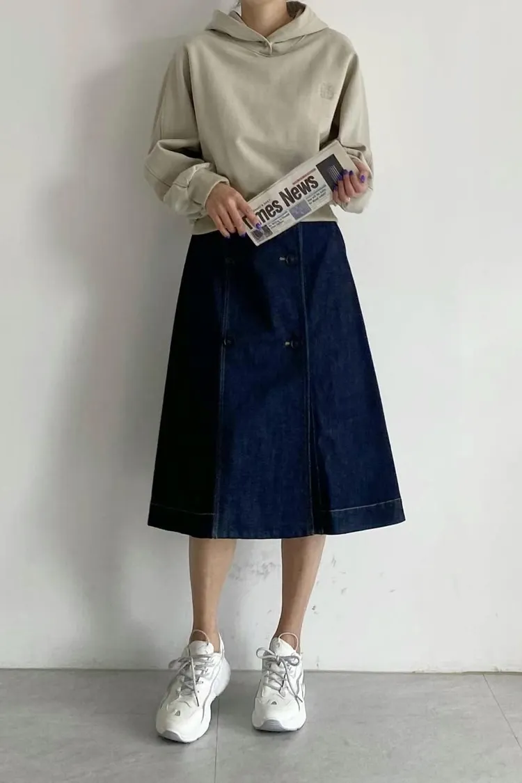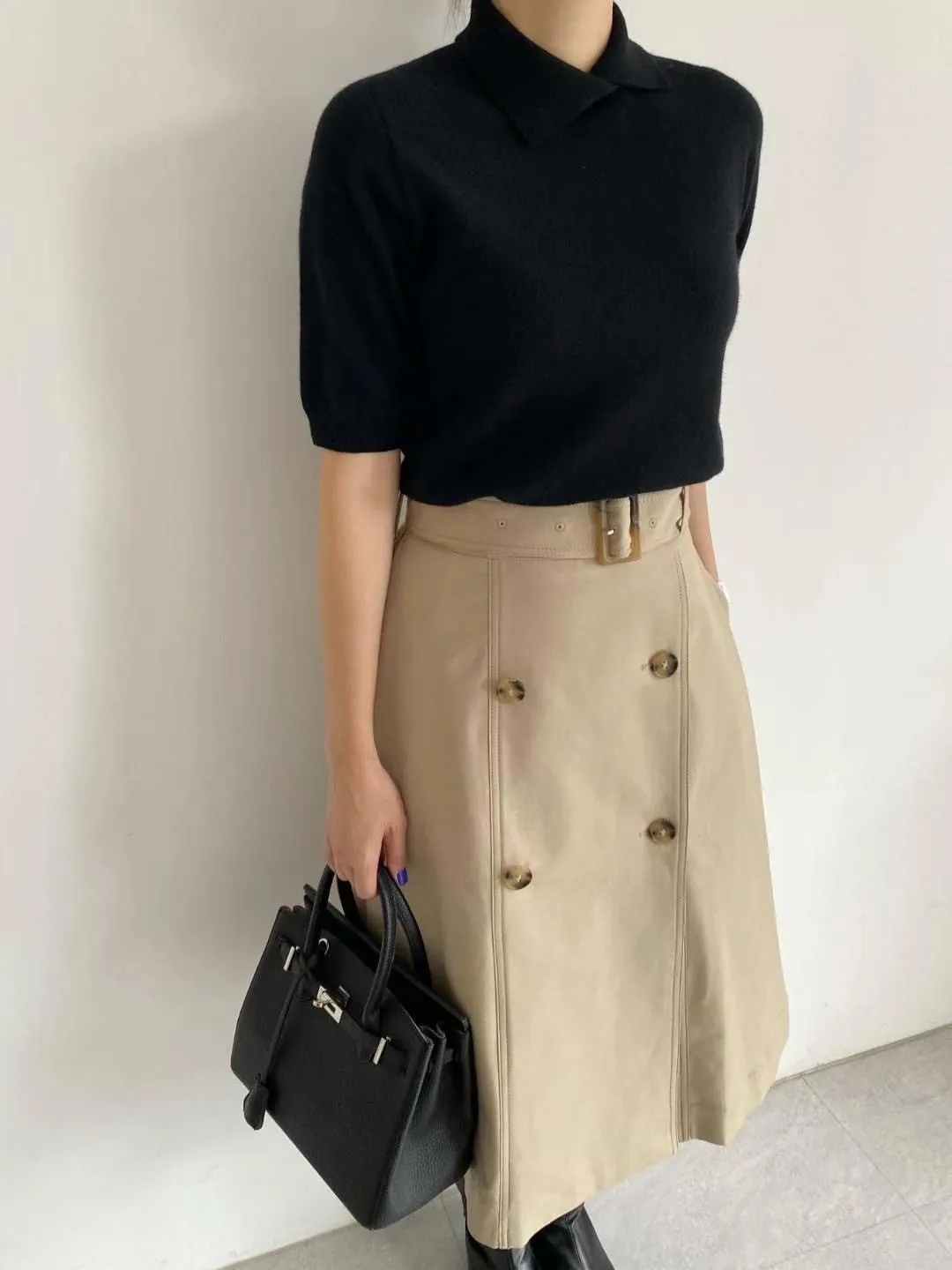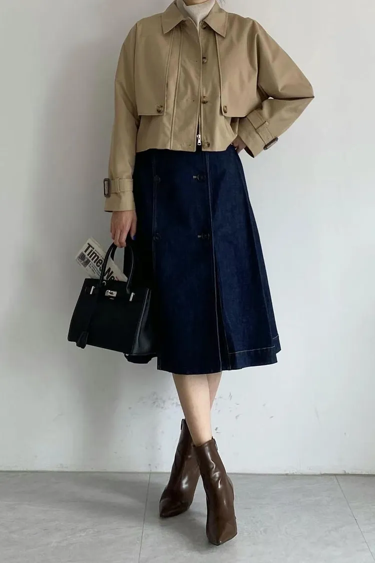 CS457四釦腰綁帶Aline中長裙(附腰帶) 藍 綠 奶茶 S M 線上價$3020 官網價$3050