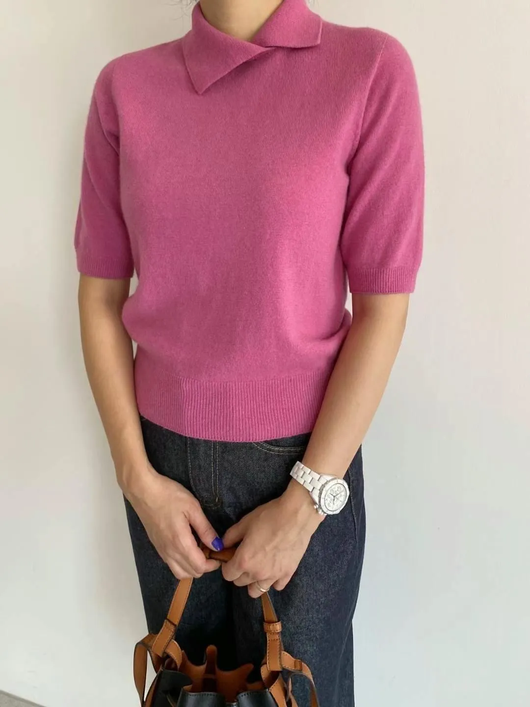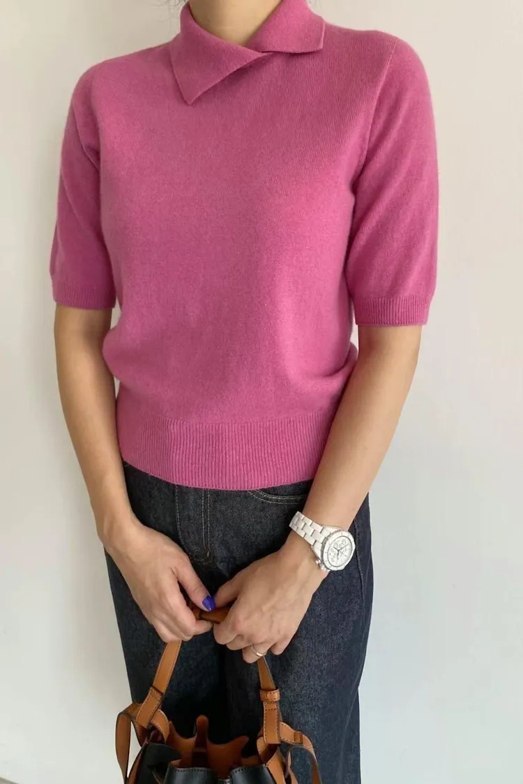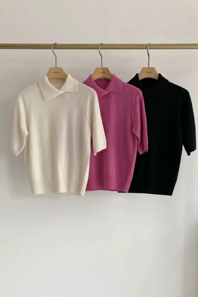 CS475側領設計羊毛100%溫柔針織衫 米 粉 黑 線上價$1850 官網價$1880
