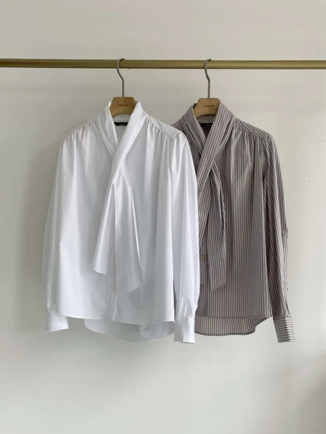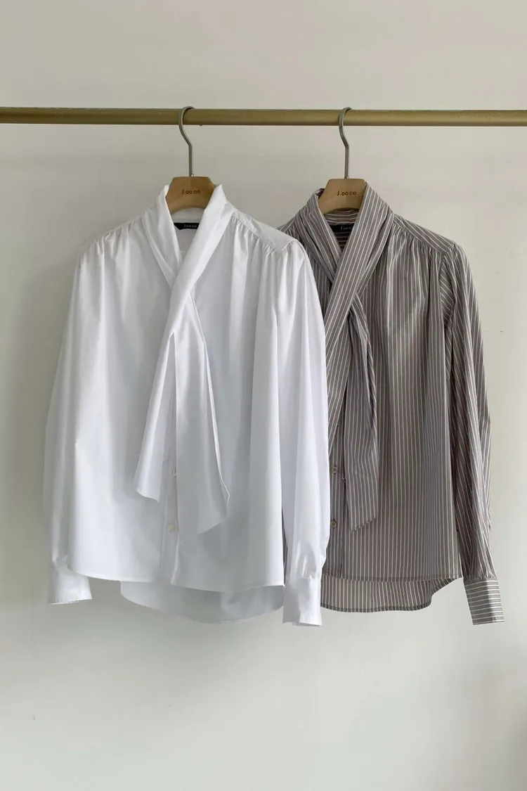 CS478特價高級Jcoco胸綁帶長袖襯衫 白 奶茶 $1300
