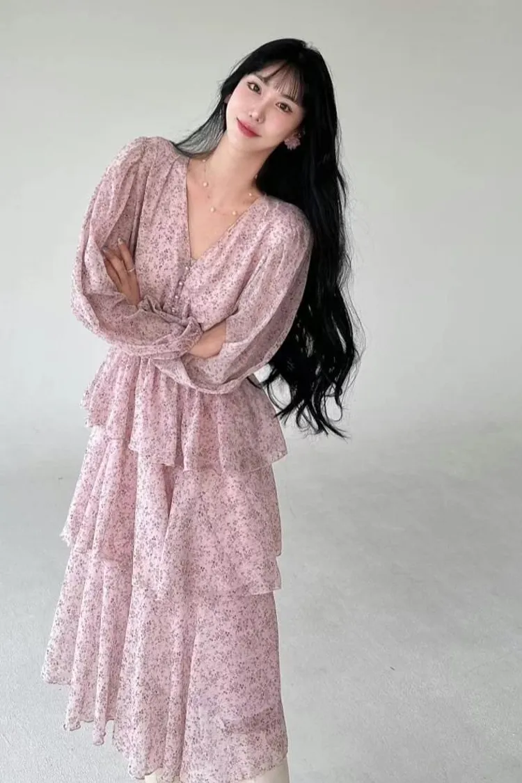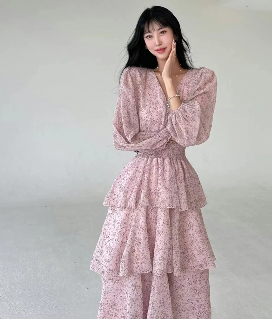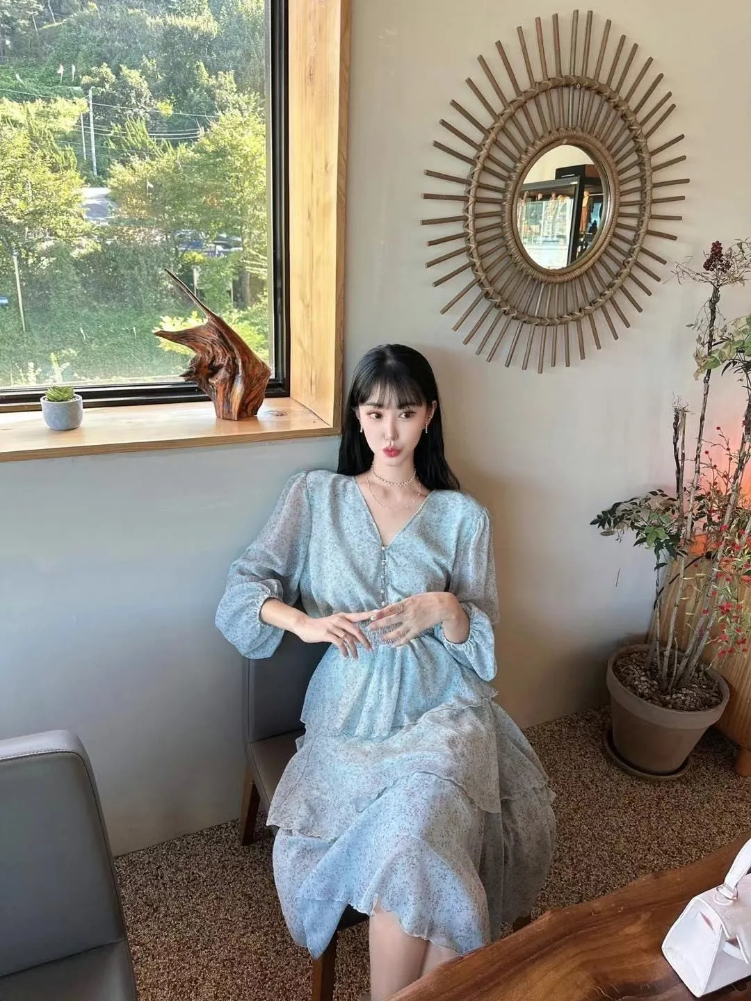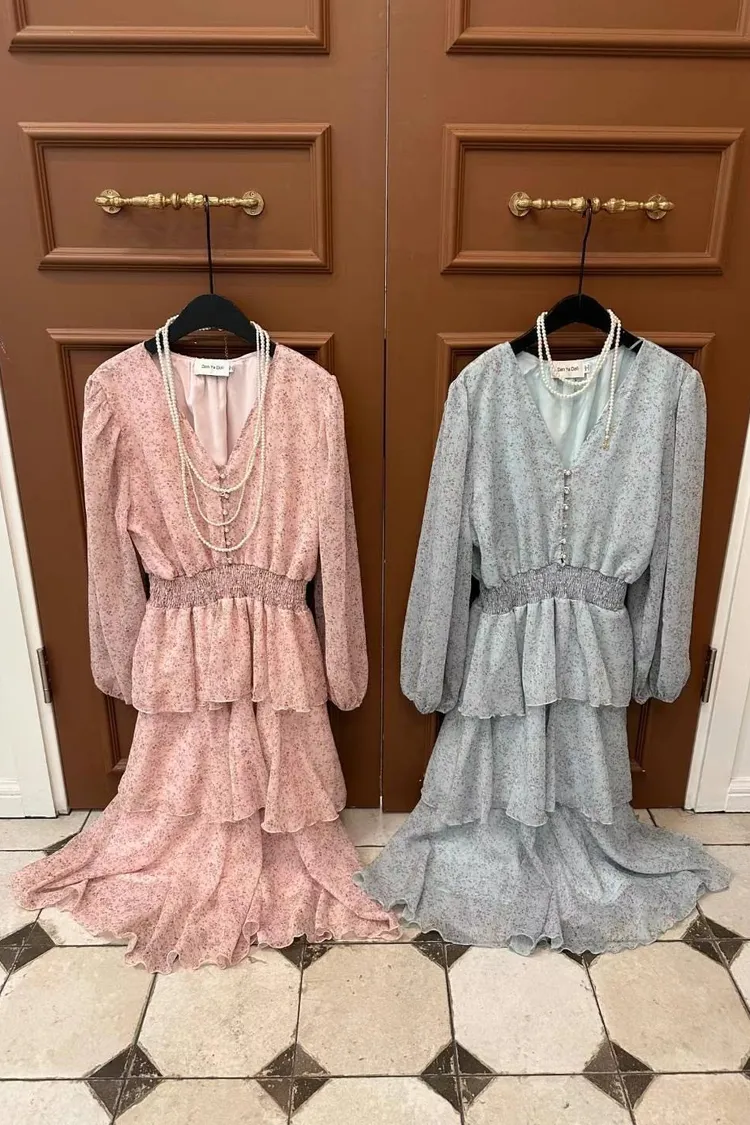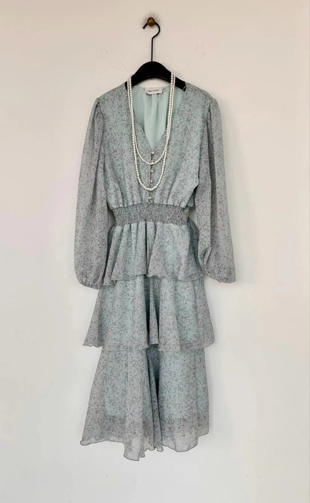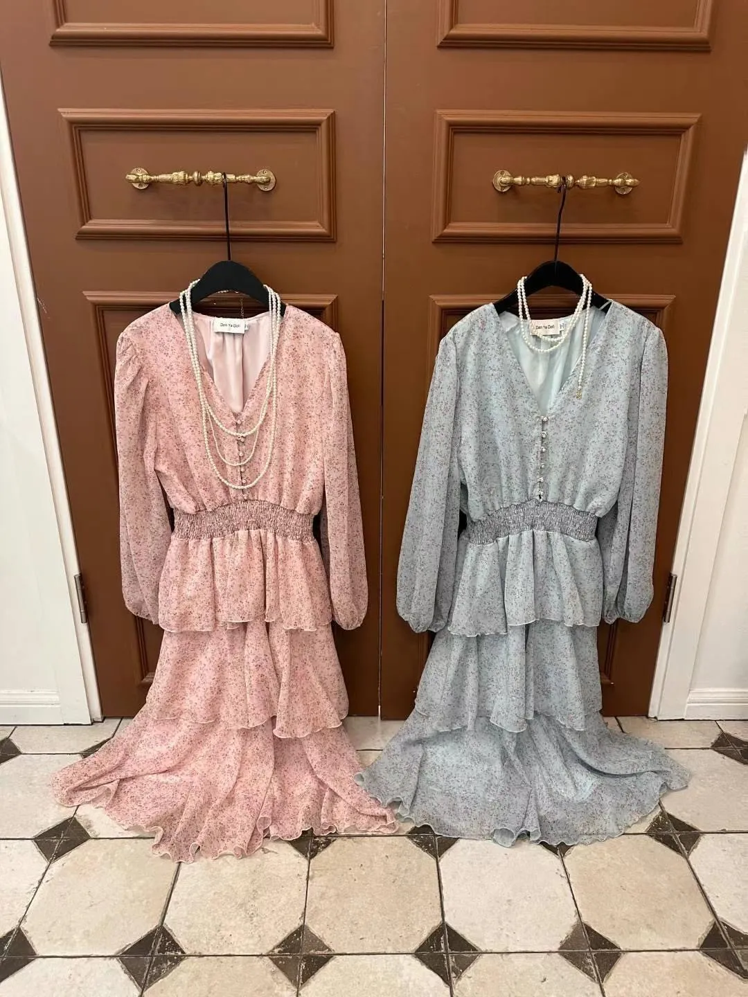 CS493質感V領簡約多層次蛋糕下擺洋裝 藍 粉 線上價$1790 官網價$1820