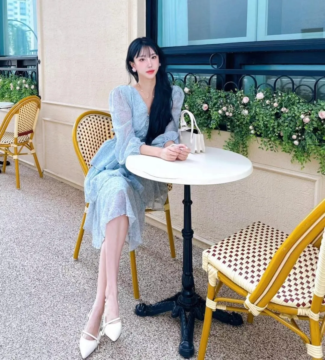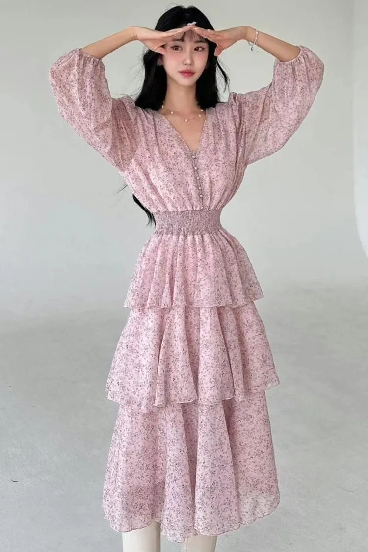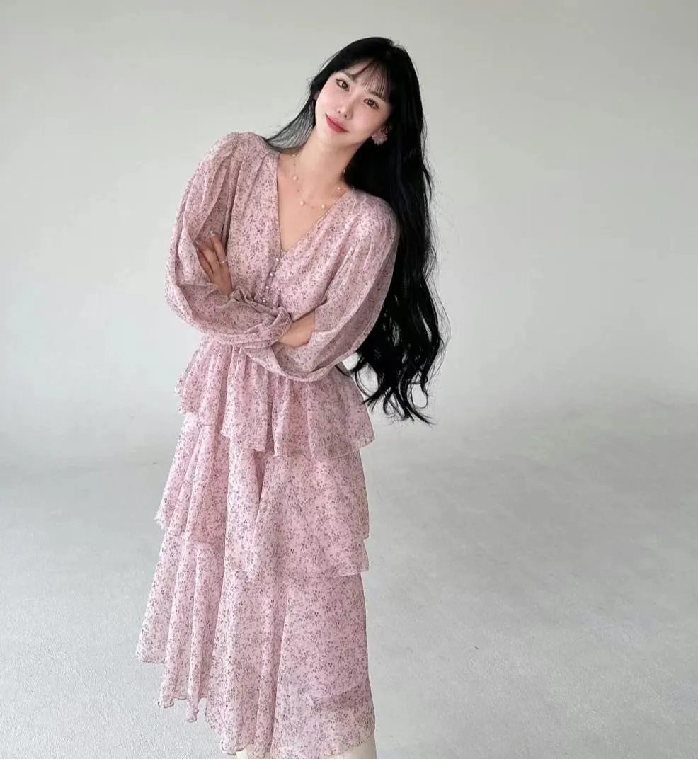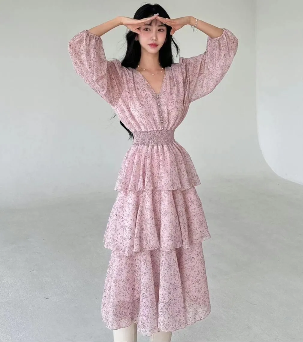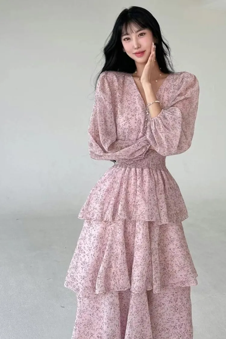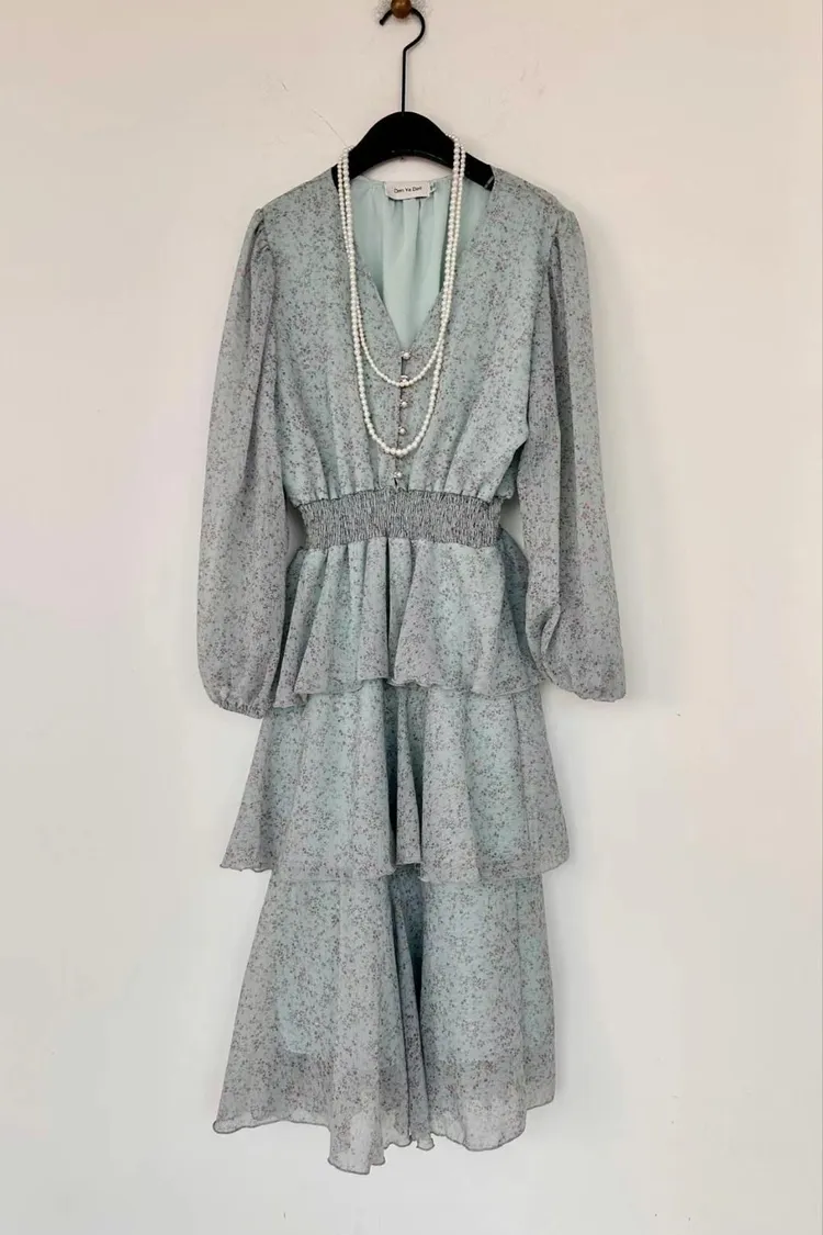 CS493質感V領簡約多層次蛋糕下擺洋裝 藍 粉 線上價$1790 官網價$1820