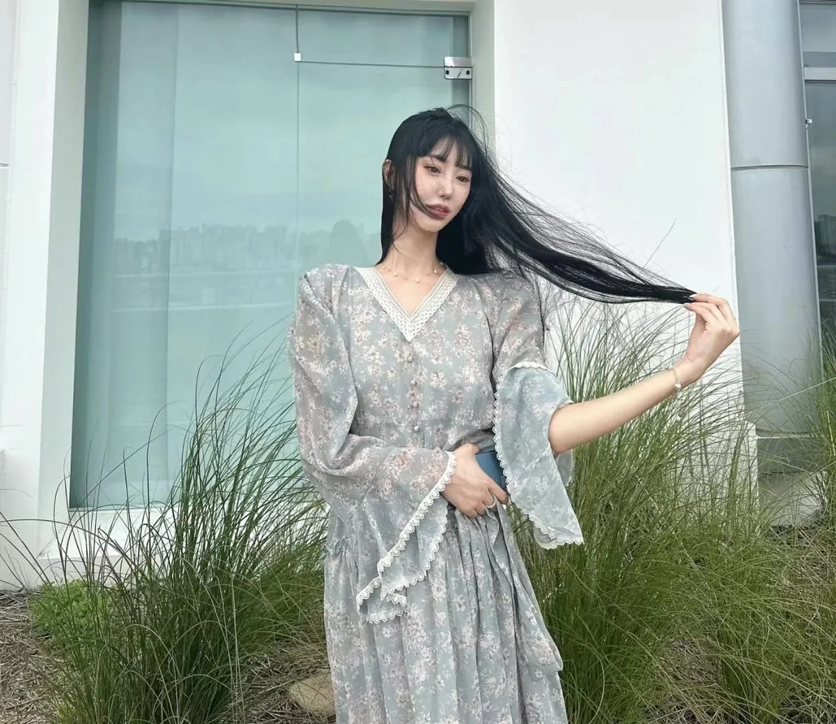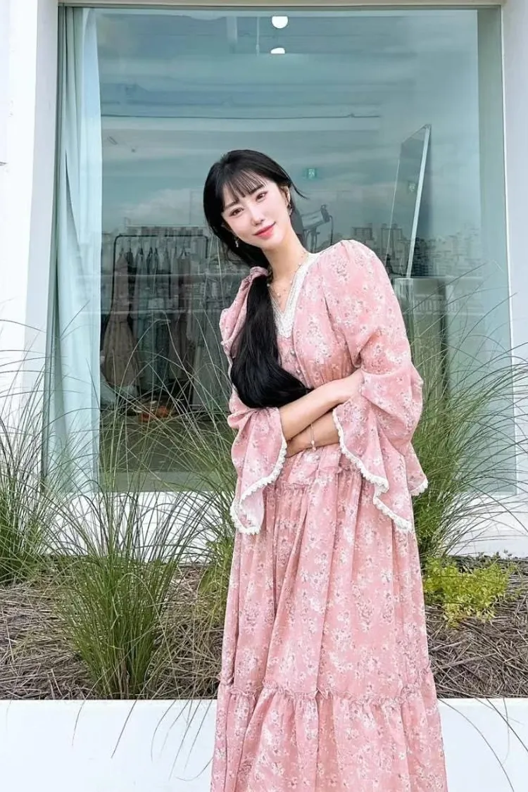 雪紡 極美古典布蕾絲手袖 粉色是乾燥玫瑰粉 推薦收藏款