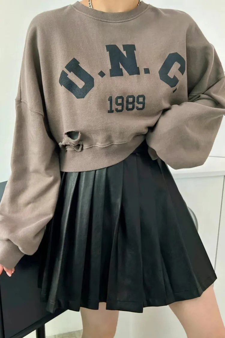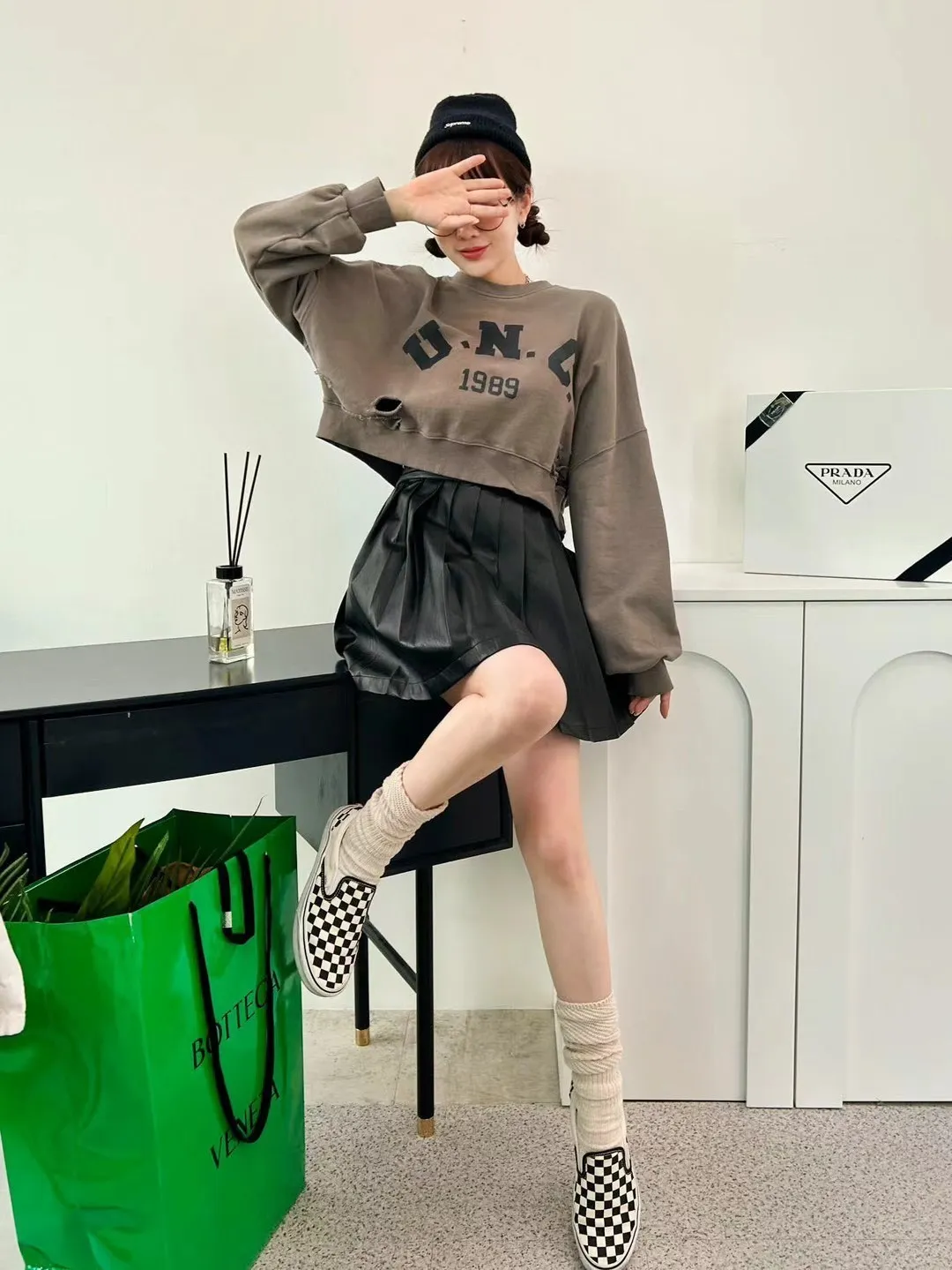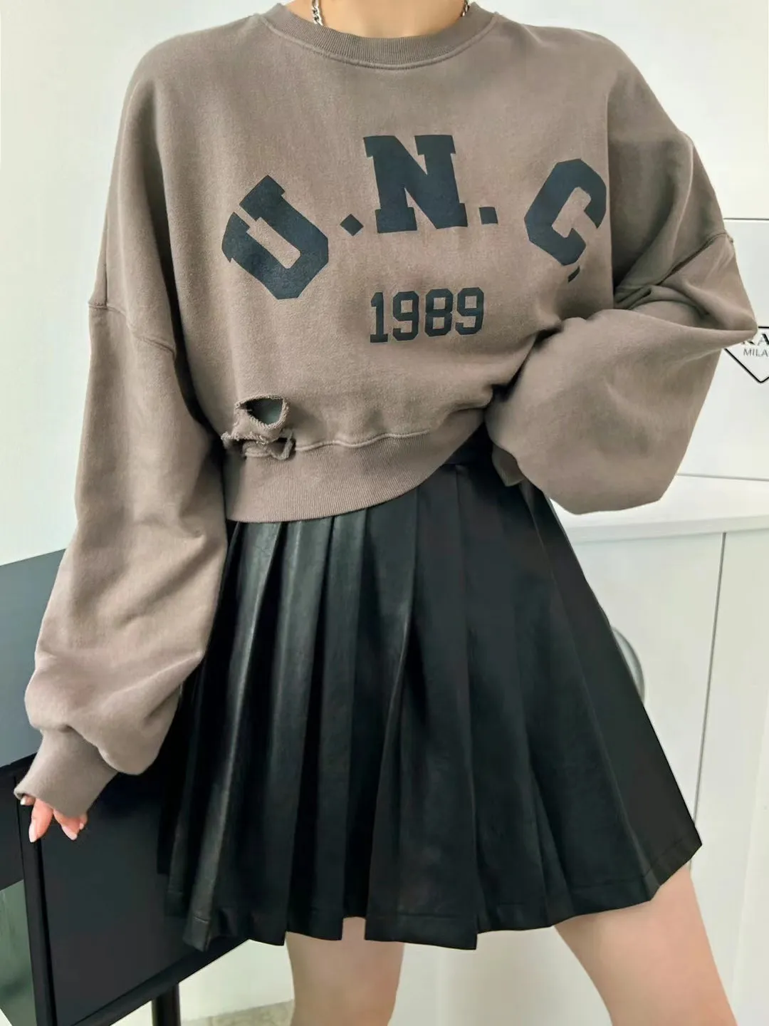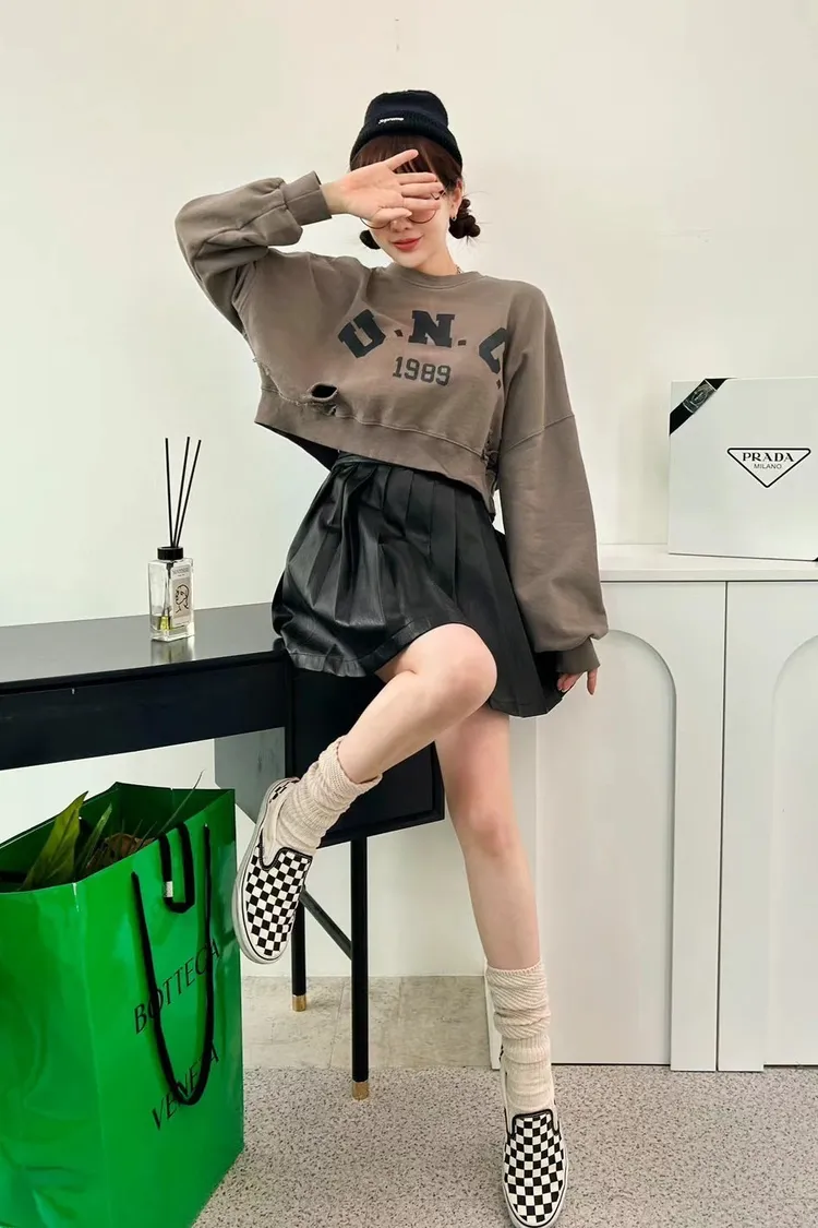 棉 落肩款 短版好比例 抓破藝術設計 下擺袖口鬆緊