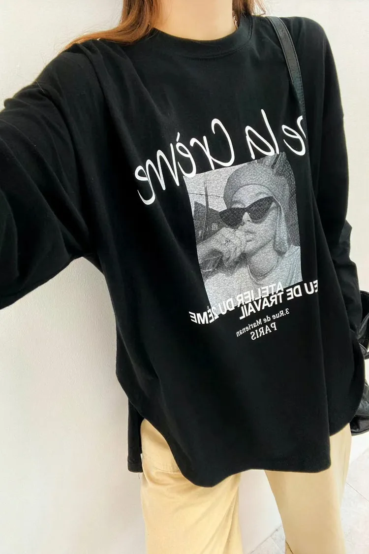 CS516薄款墨鏡女孩Dela長袖Tshirt 白 灰 黑 線上價$299 官網價$319