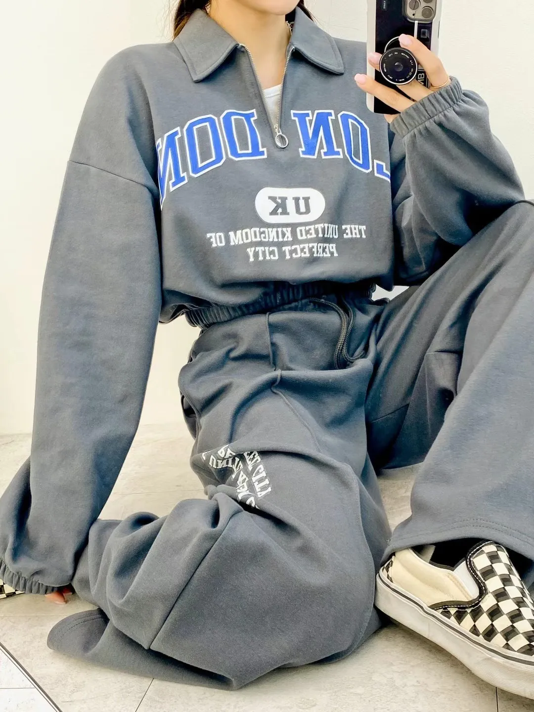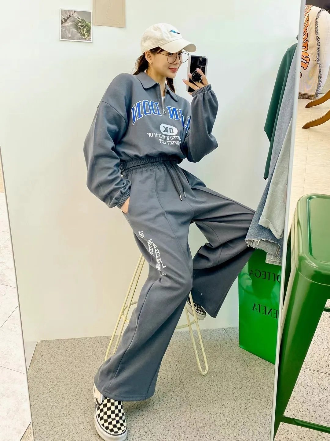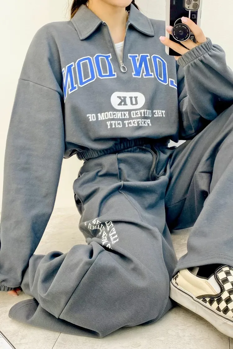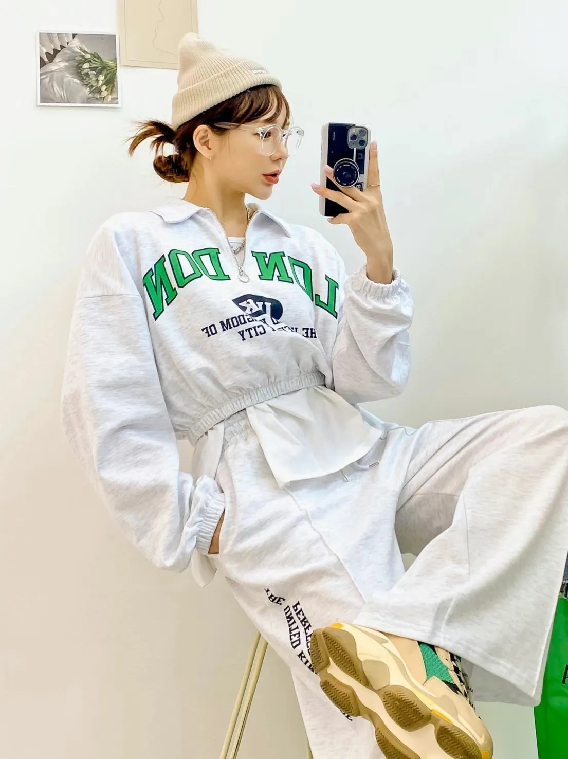 棉 莫代爾觸感 柔軟親膚 手袖鬆緊 拉鍊領 上衣腰縮 有口袋 寬鬆長褲
