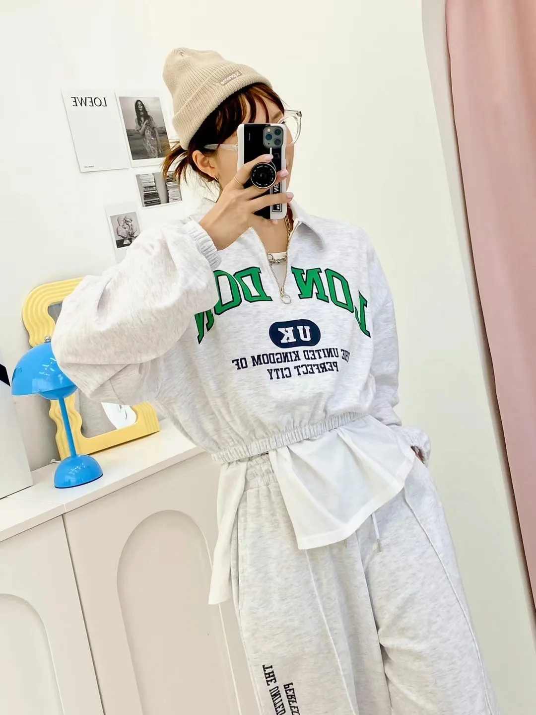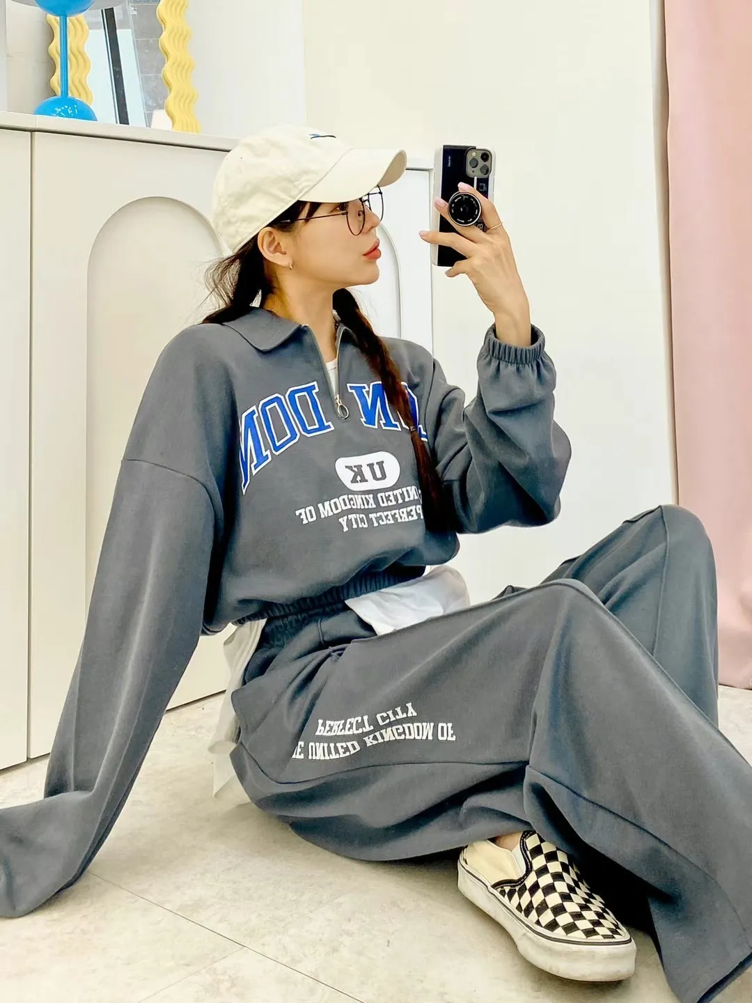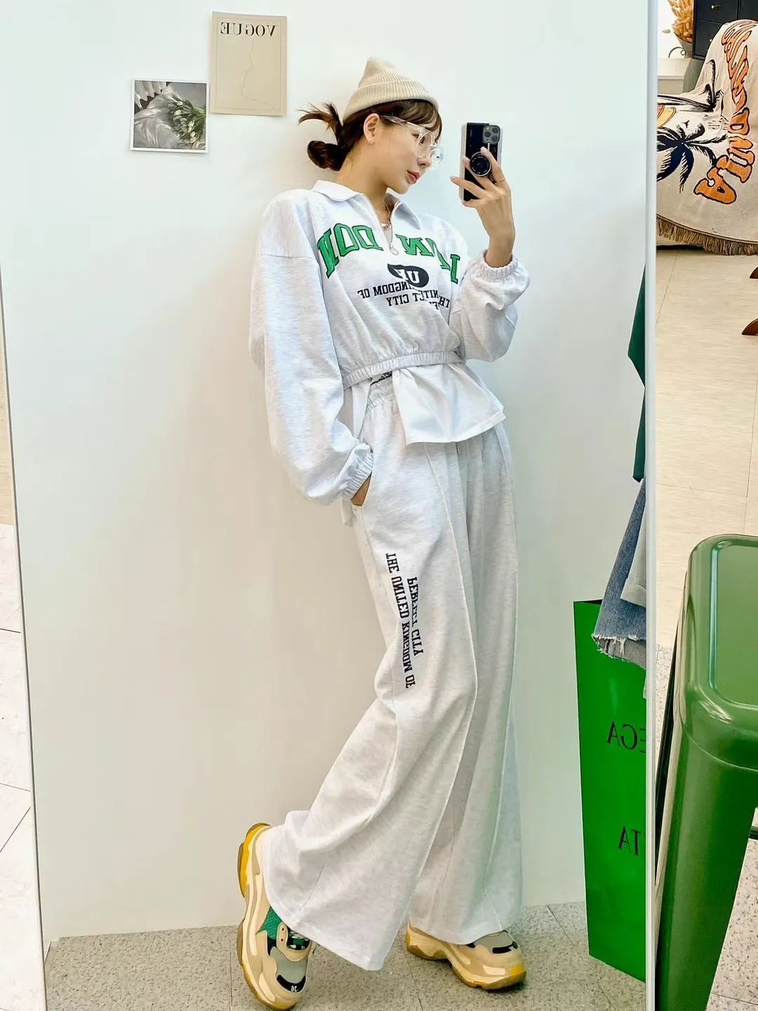 棉 莫代爾觸感 柔軟親膚 手袖鬆緊 拉鍊領 上衣腰縮 有口袋 寬鬆長褲
