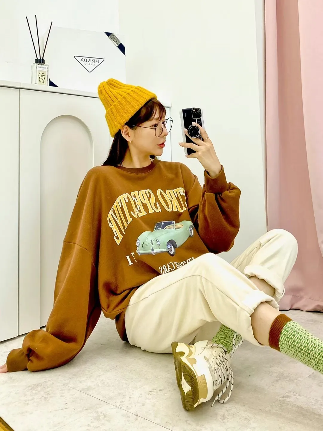 CS521許願款復古老爺車大學T 灰 黃 咖 線上價$460 官網價$480