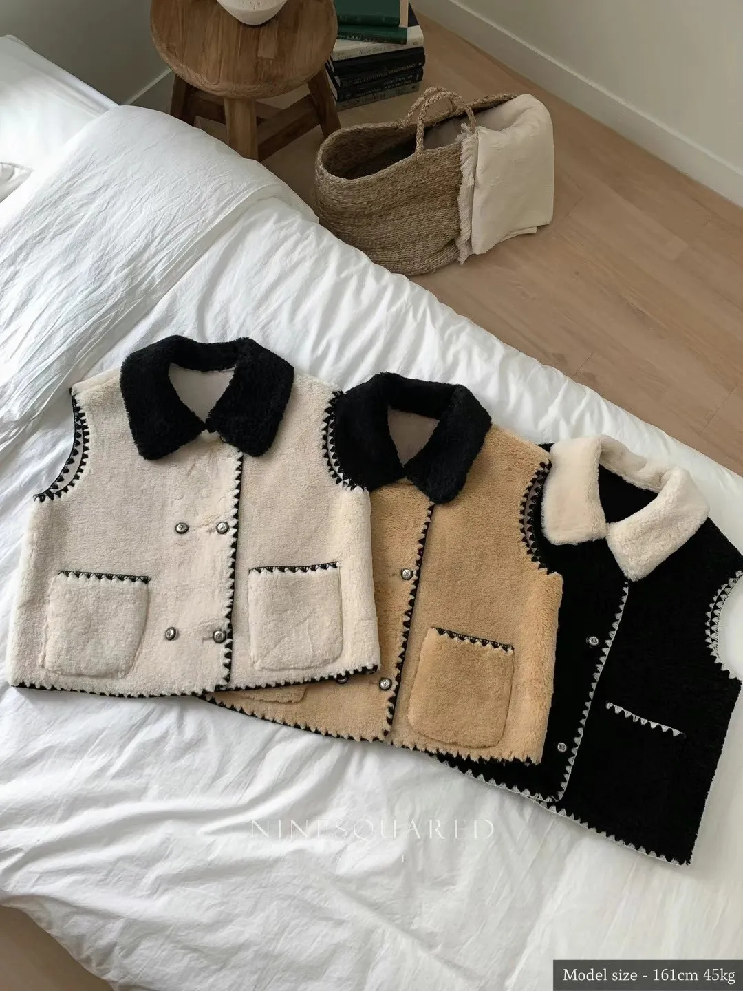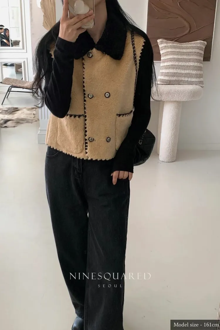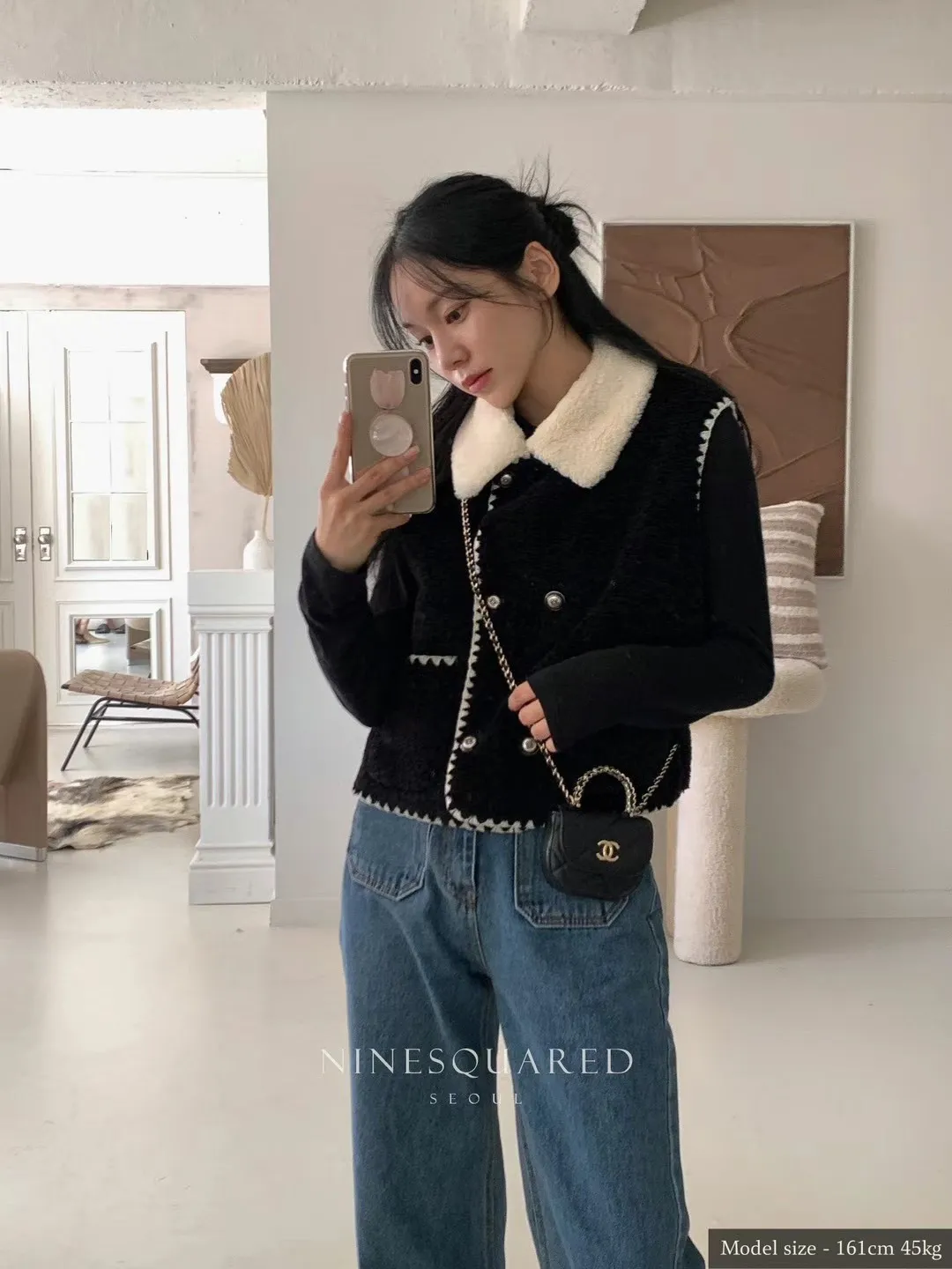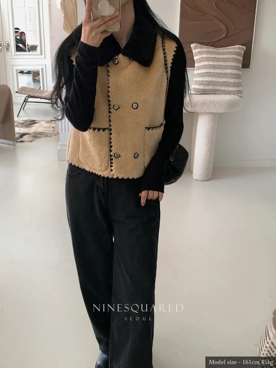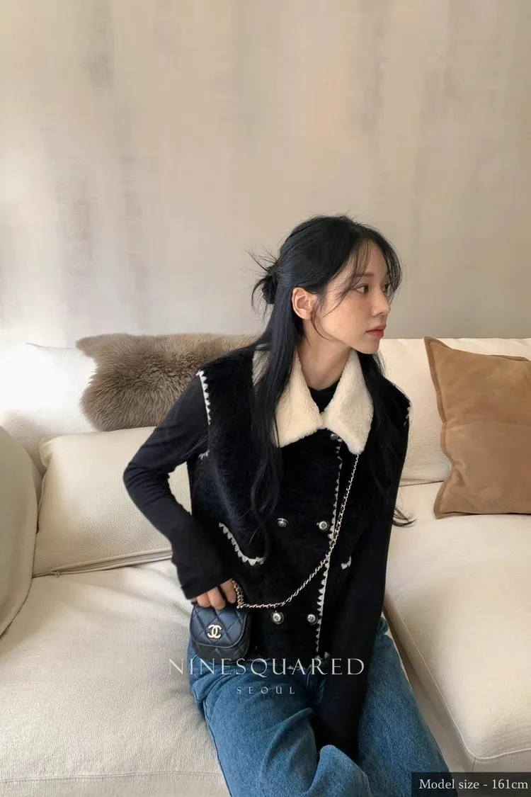 CS532質感跳色翻領Q軟雙排釦小背心 白 黑 奶茶 線上價$2360 官網價$2390