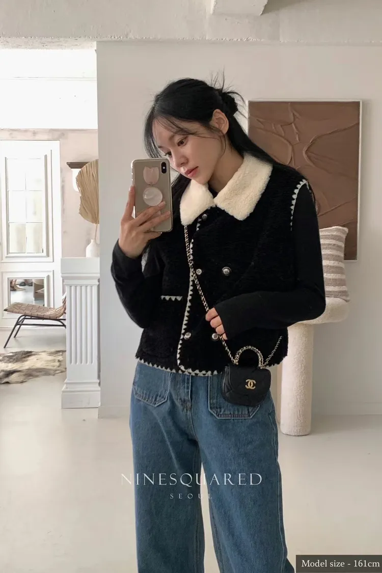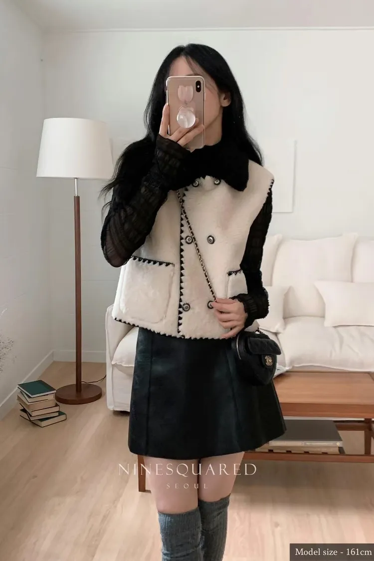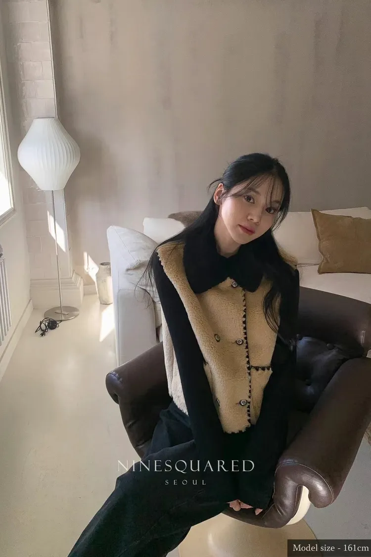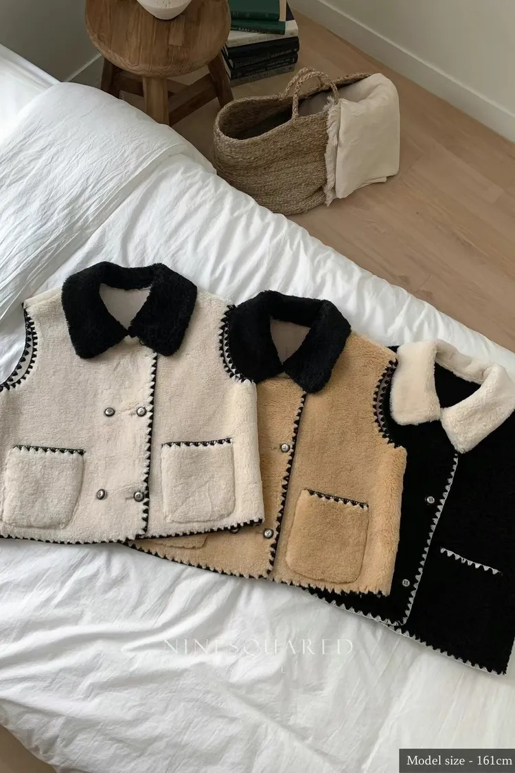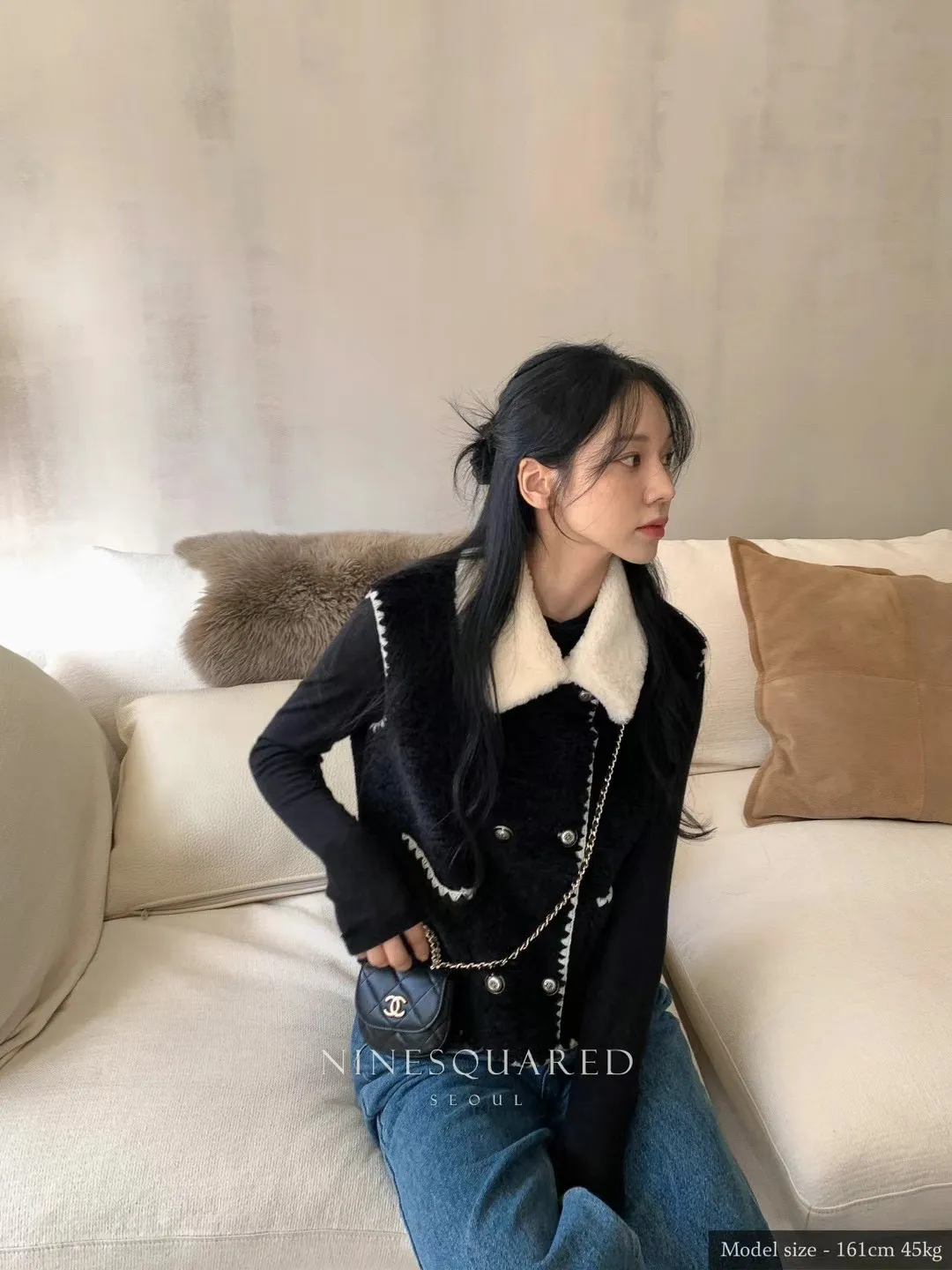 CS532質感跳色翻領Q軟雙排釦小背心 白 黑 奶茶 線上價$2360 官網價$2390