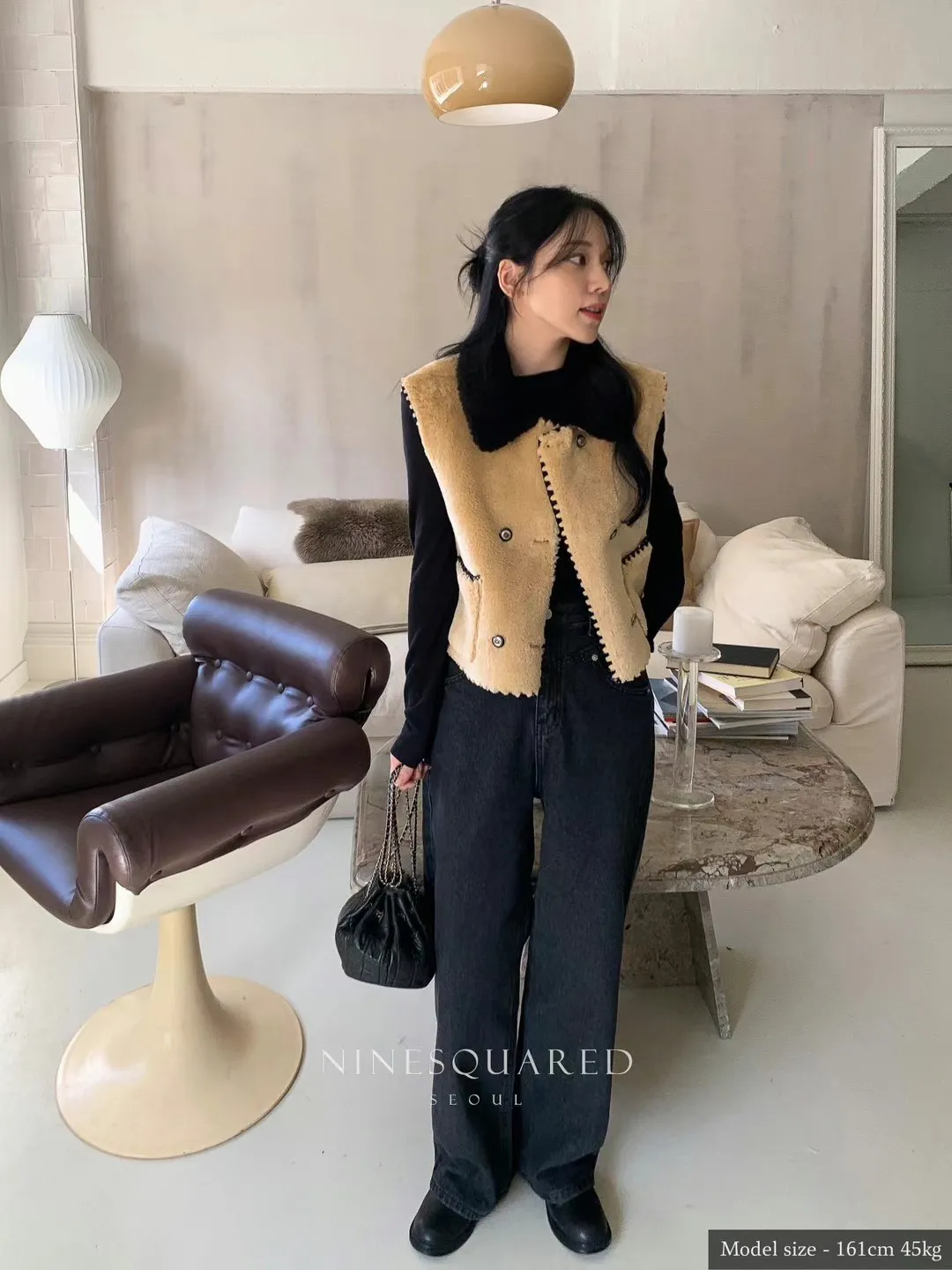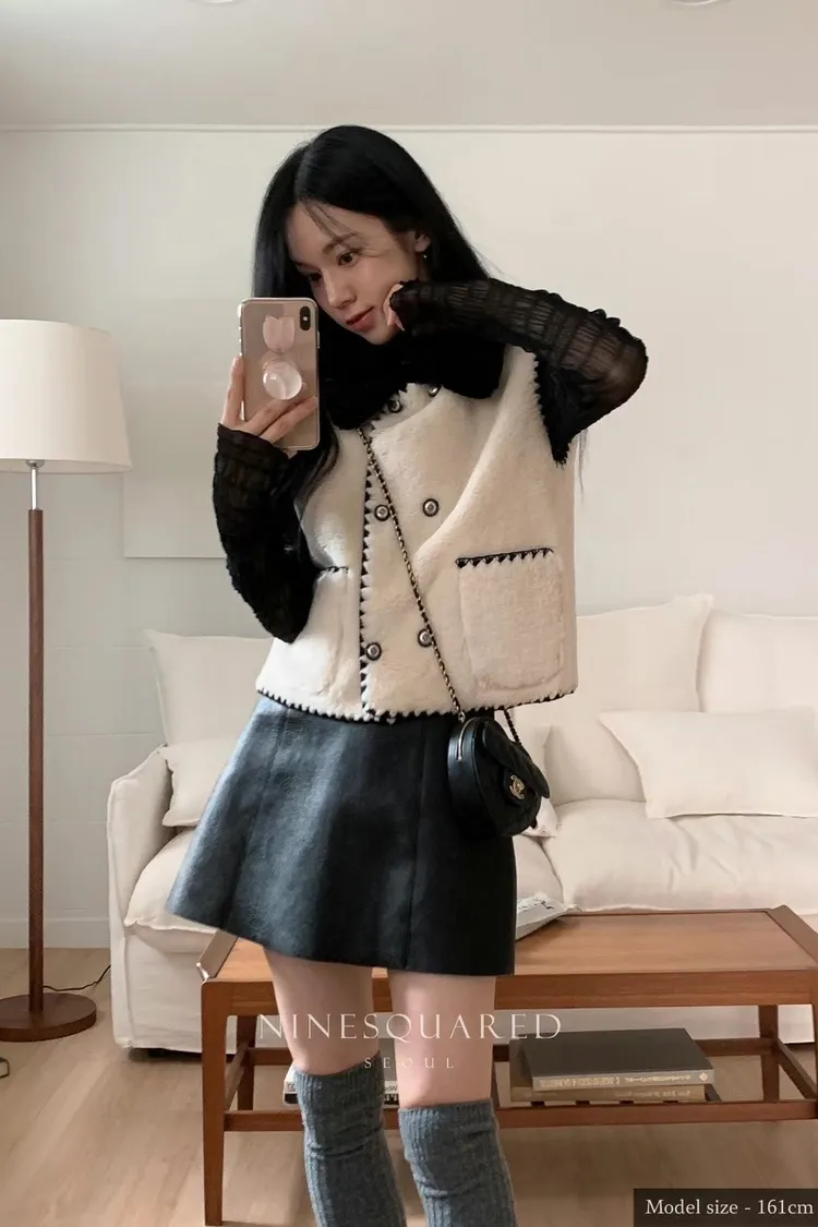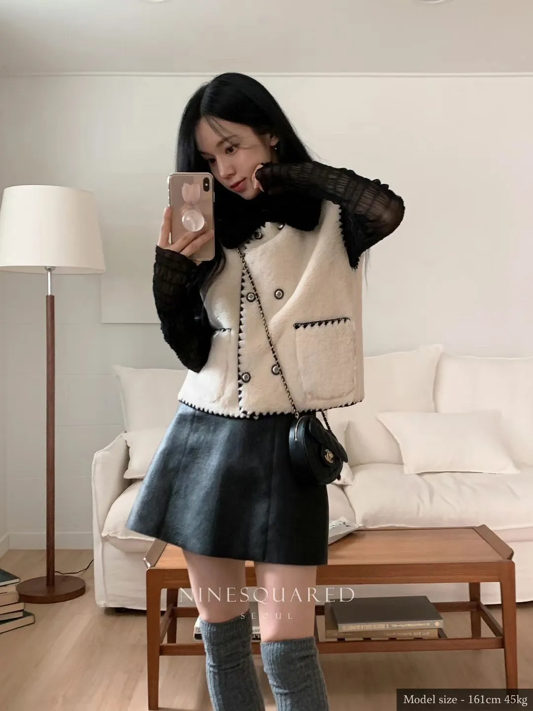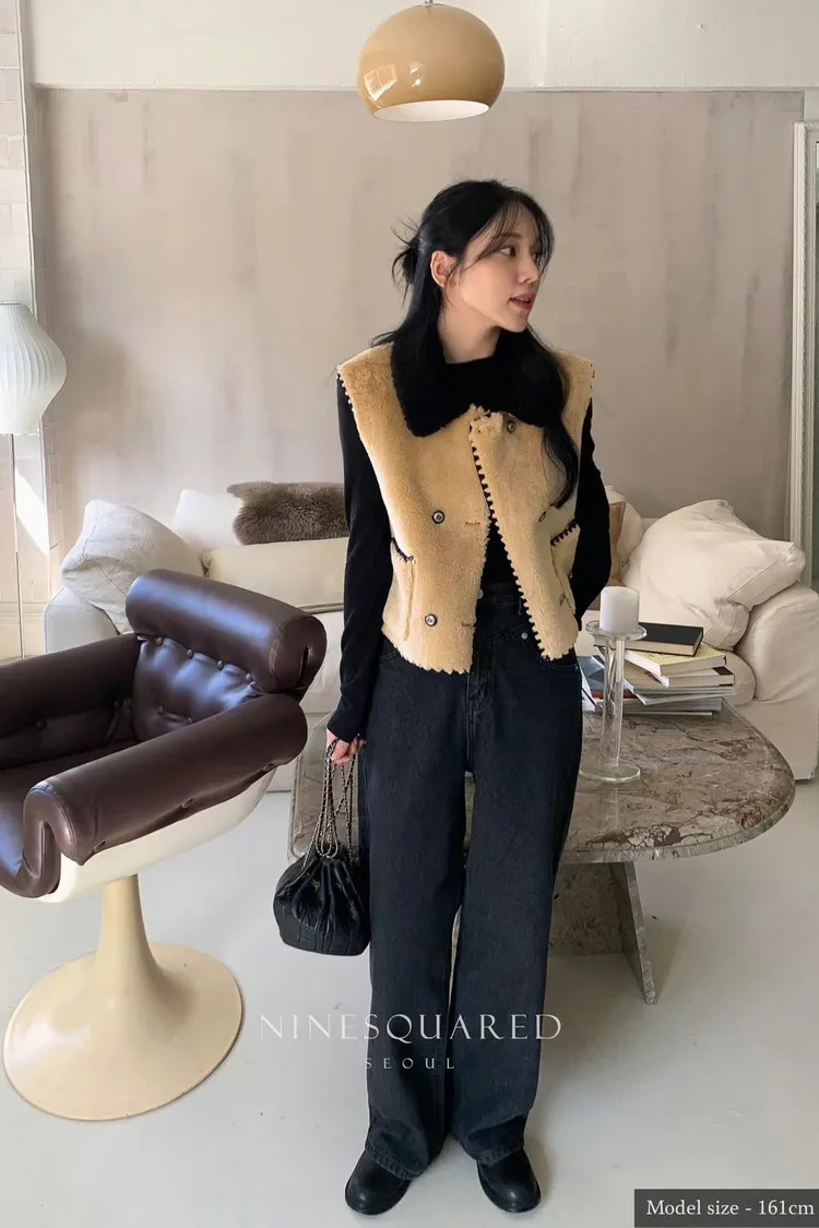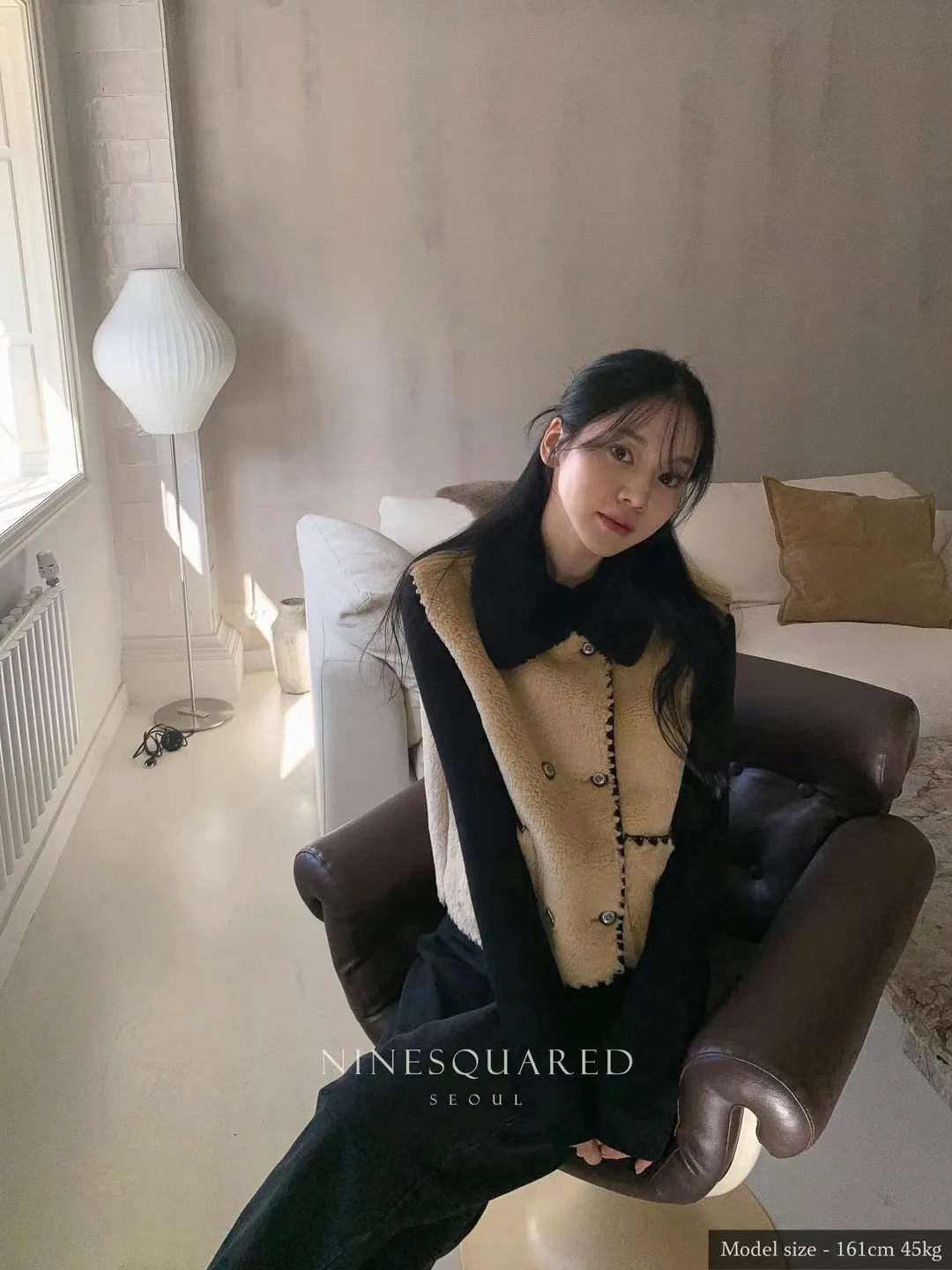 CS532質感跳色翻領Q軟雙排釦小背心 白 黑 奶茶 線上價$2360 官網價$2390