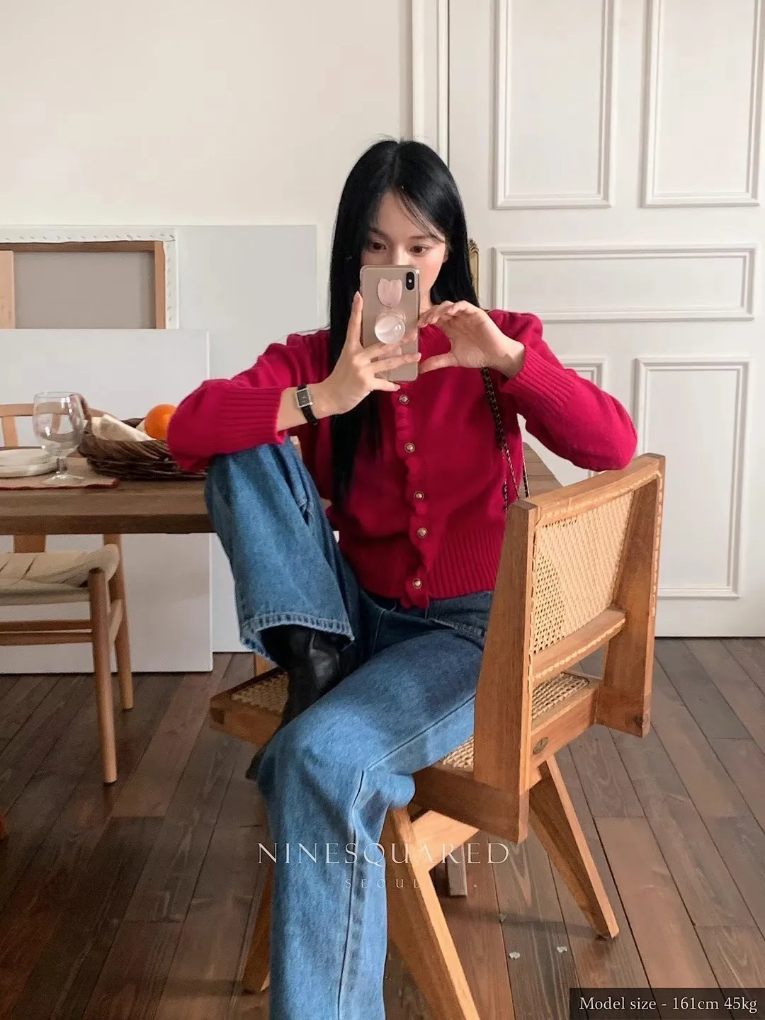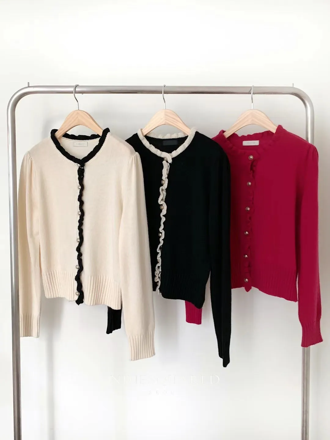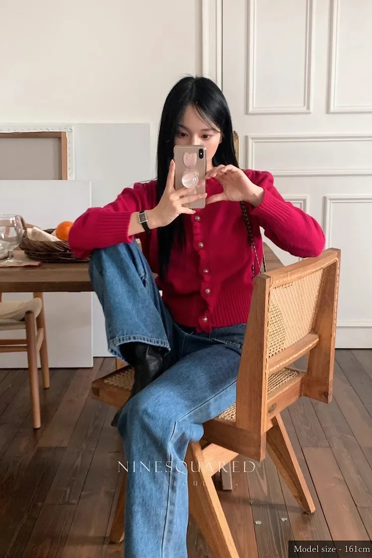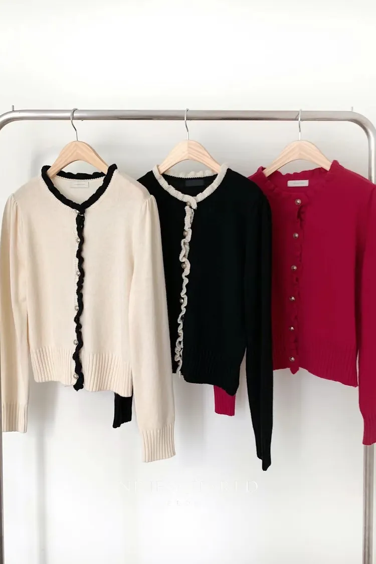 CS542質感彎曲滾邊設計金釦針織外套 黑 桃紅 線上價$1560 官網價$1590