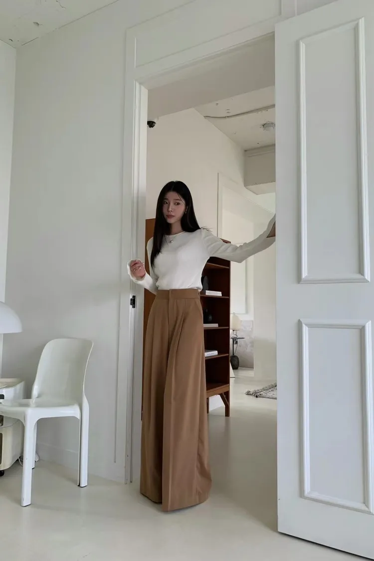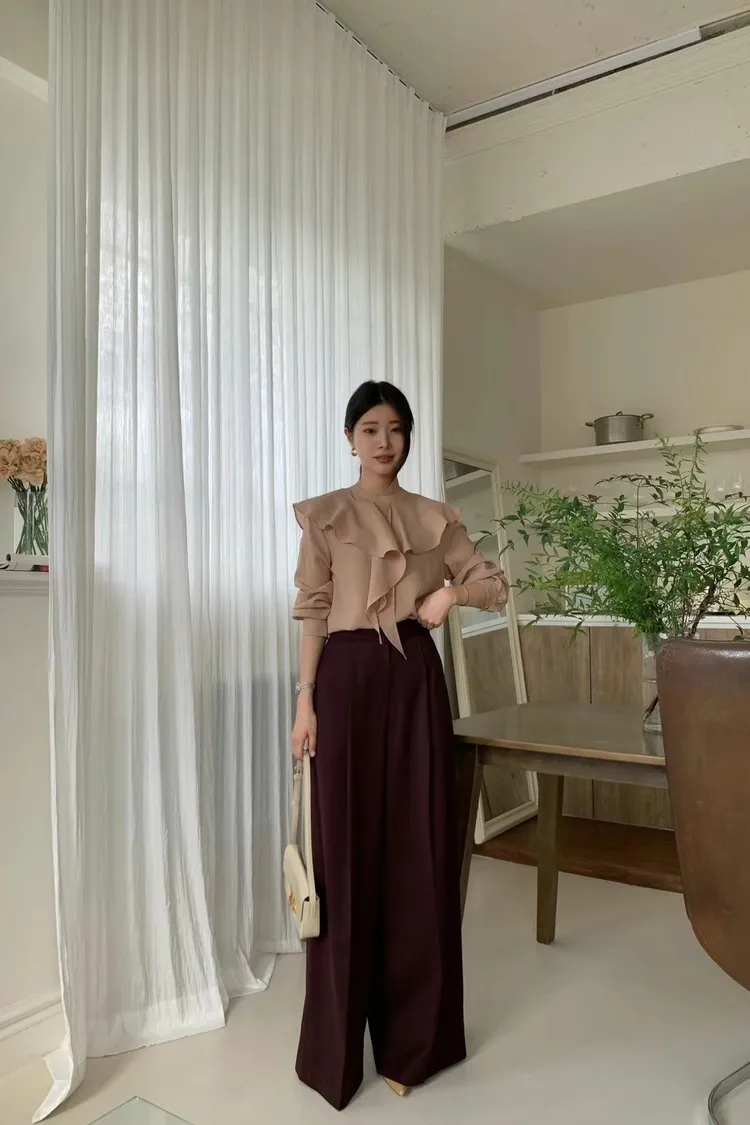 CS556藏釦立體寬長褲 奶茶 酒紅 黑 S M 線上價$1420 官網價$1450
