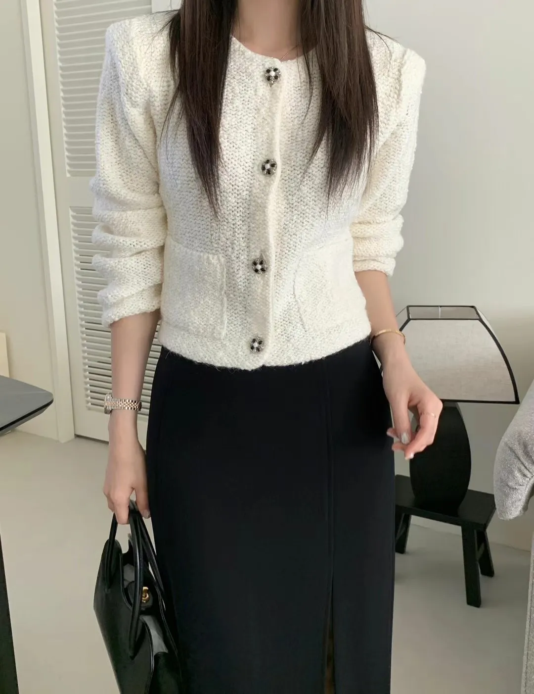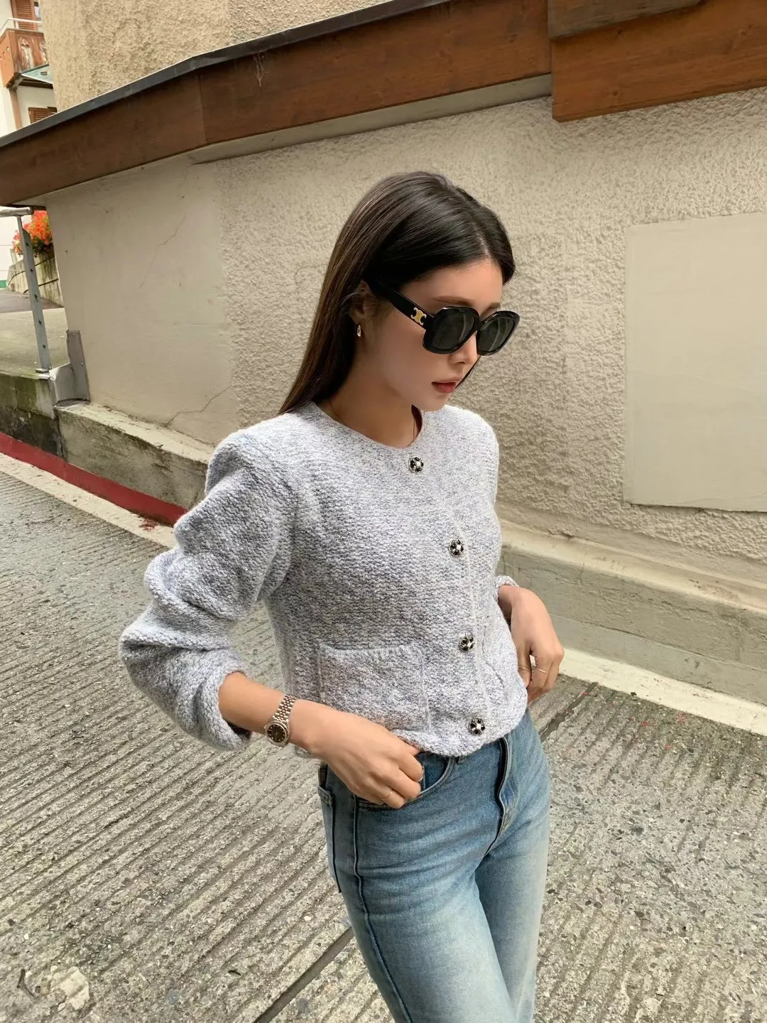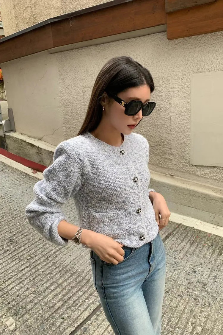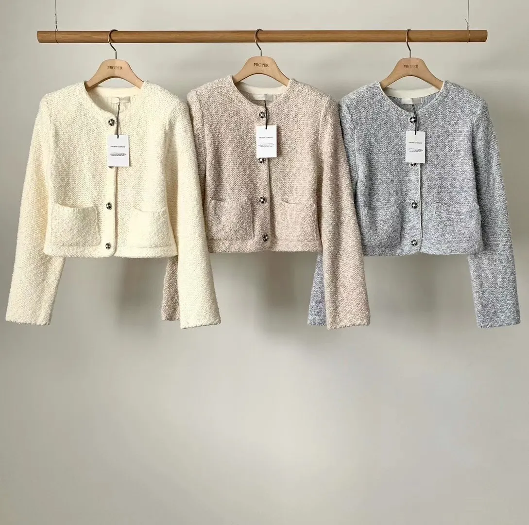 棉+壓克力 Q軟觸感 經典粗鉤織 立體美釦 可拆式墊肩 穿到M號