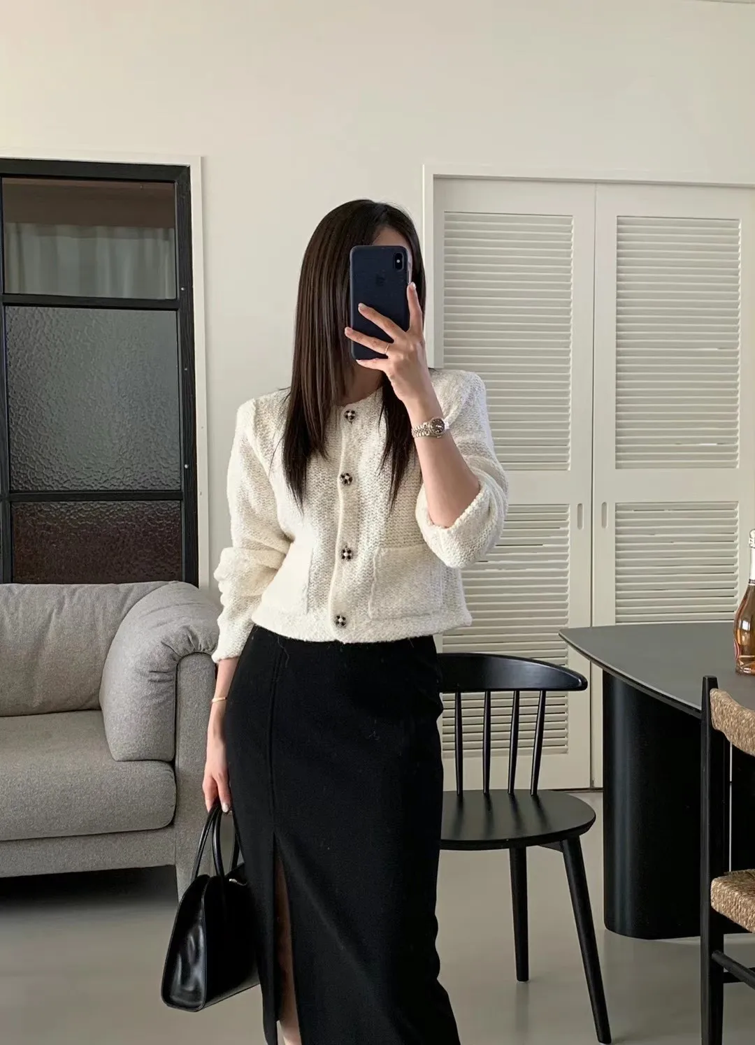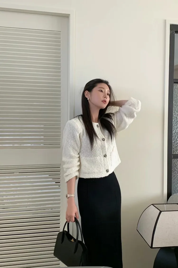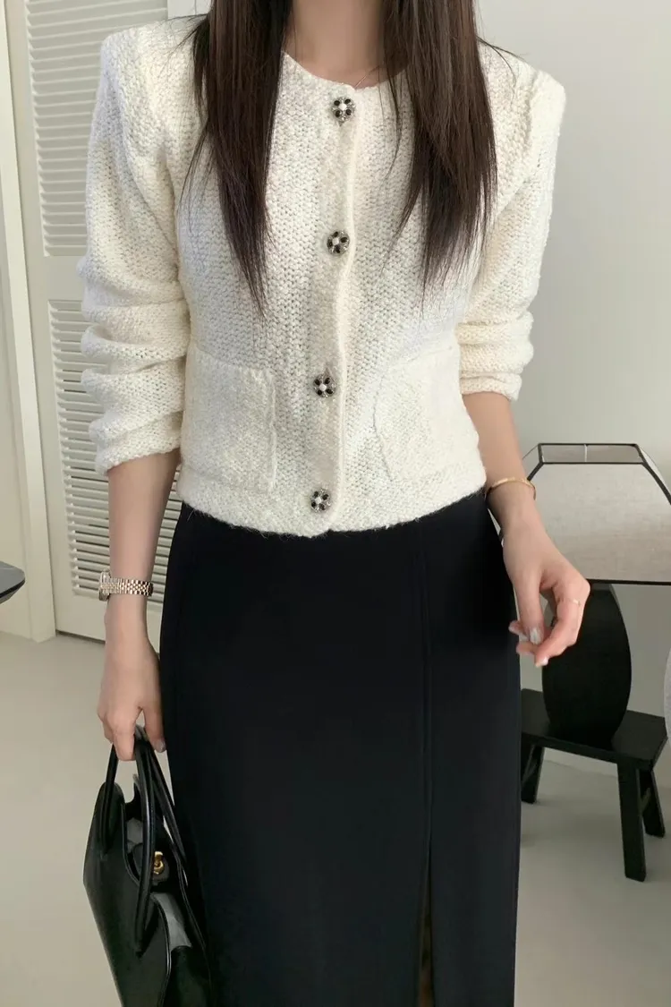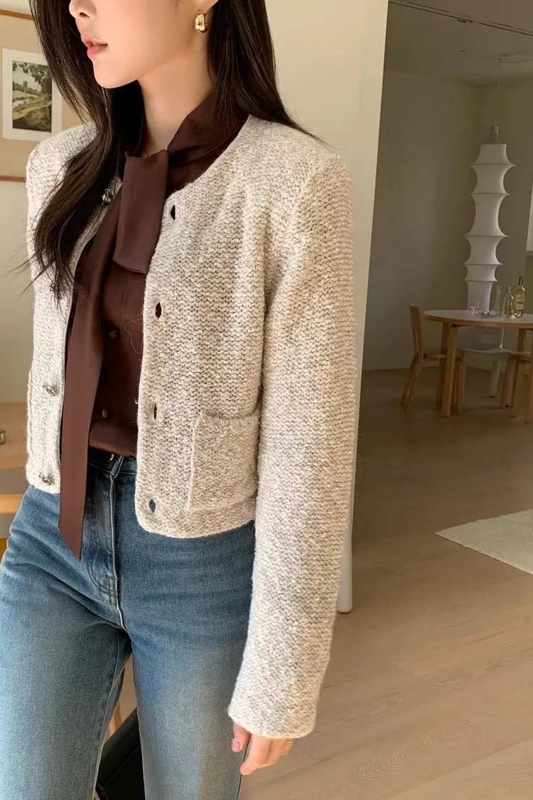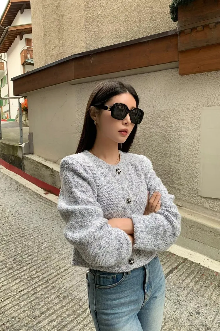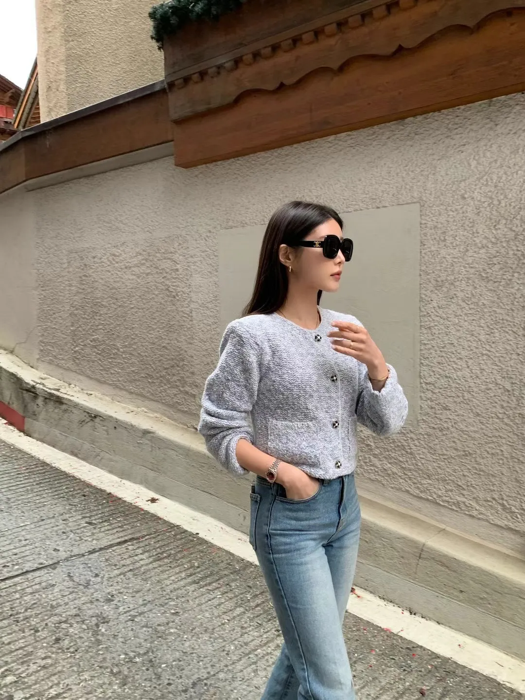 棉+壓克力 Q軟觸感 經典粗鉤織 立體美釦 可拆式墊肩 穿到M號