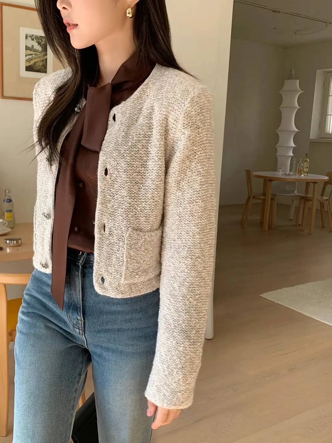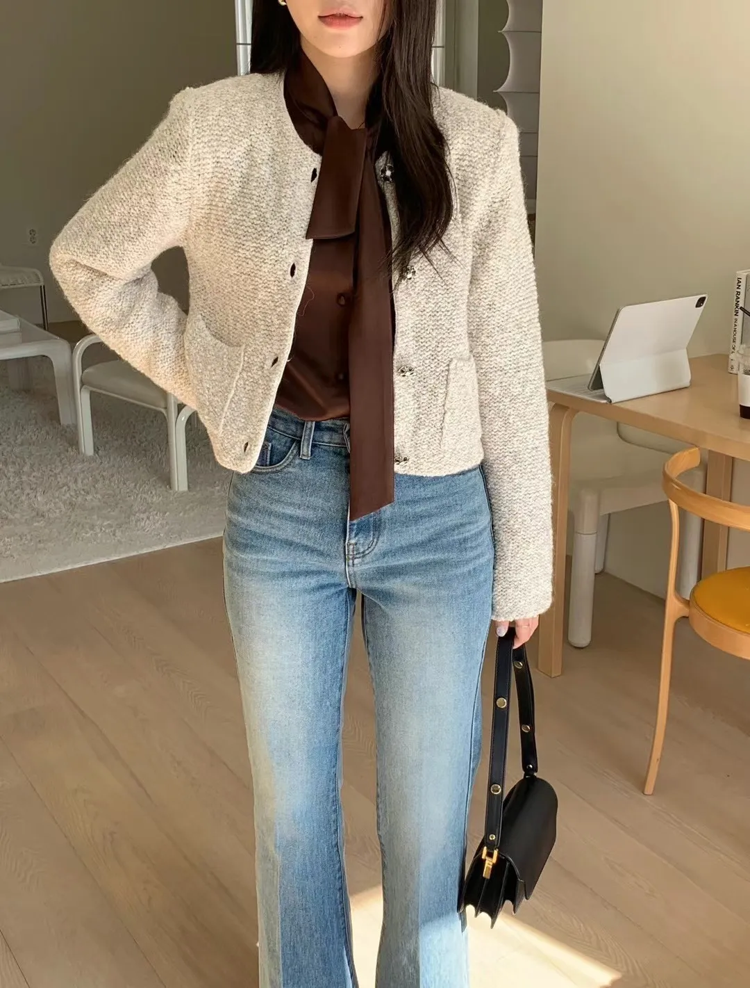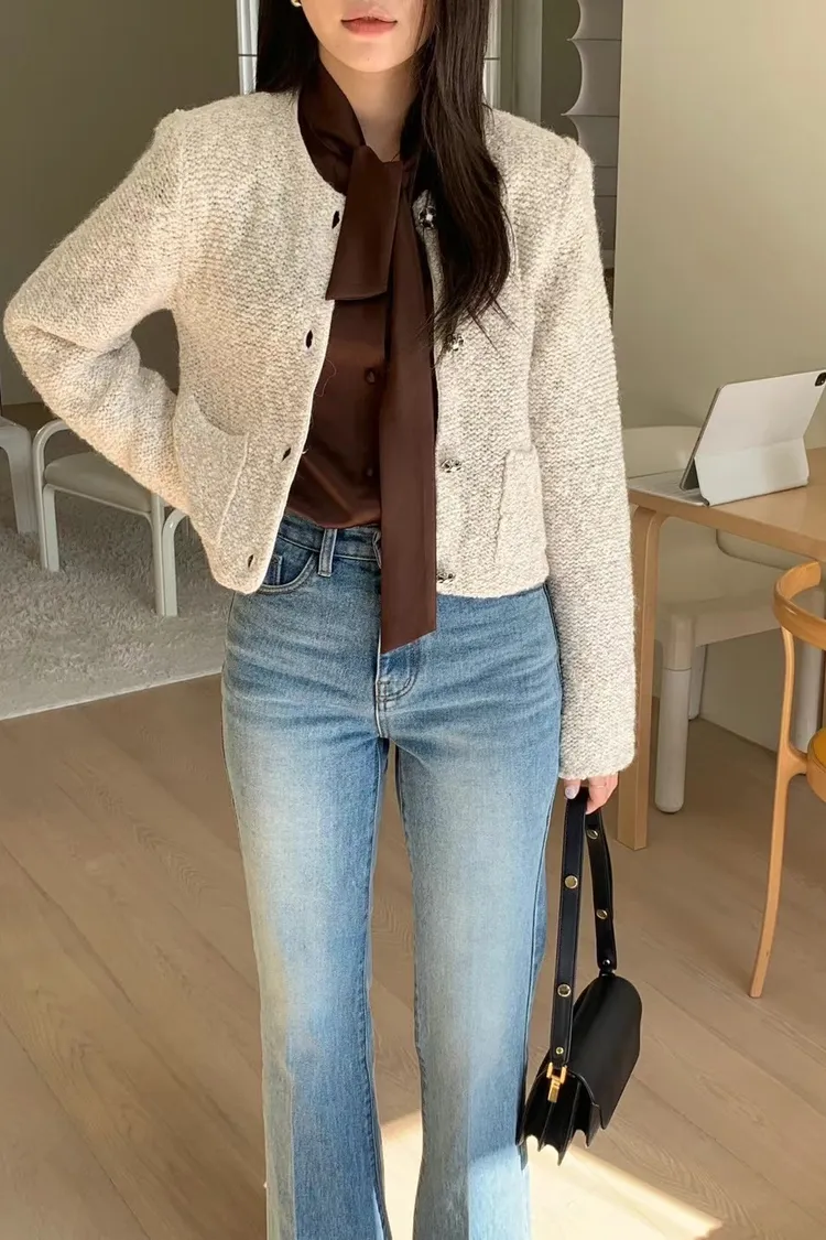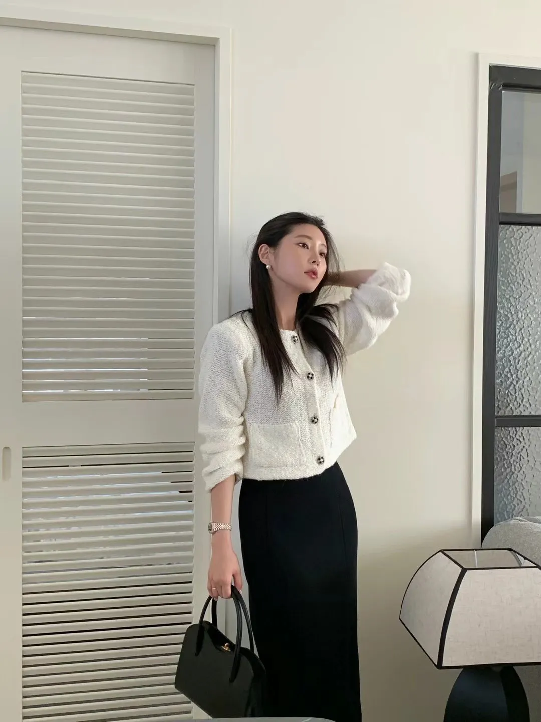 棉+壓克力 Q軟觸感 經典粗鉤織 立體美釦 可拆式墊肩 穿到M號