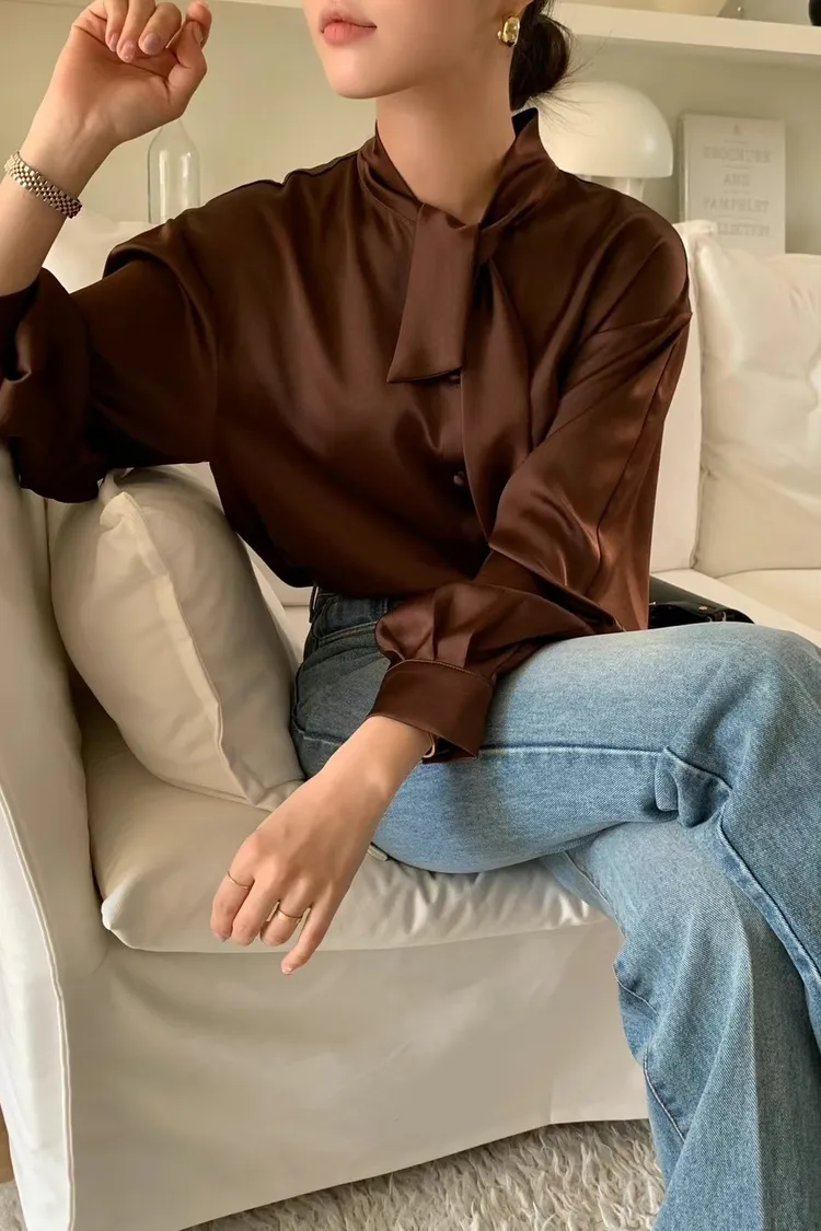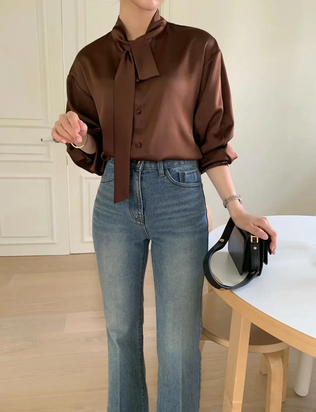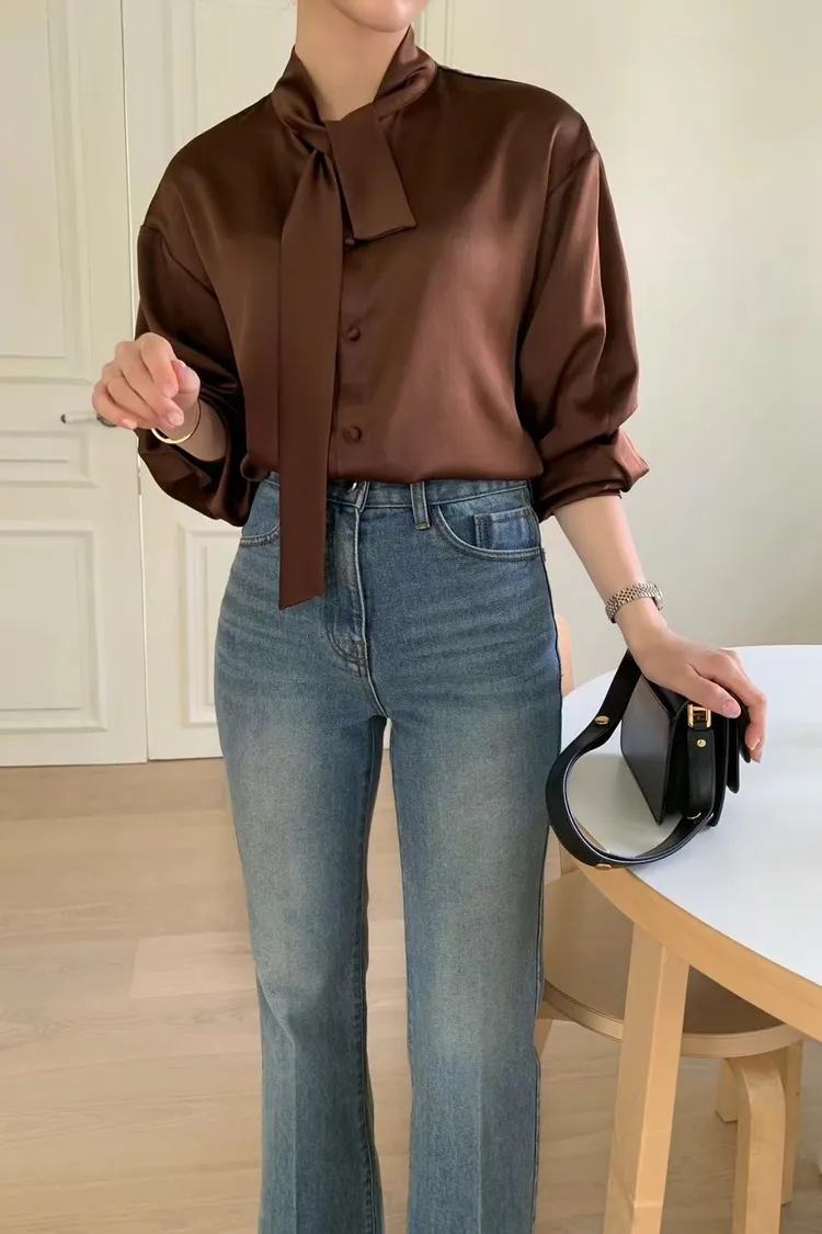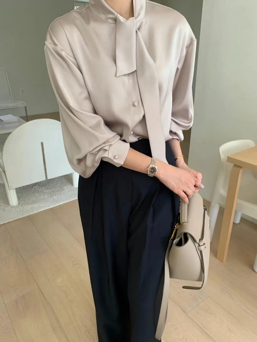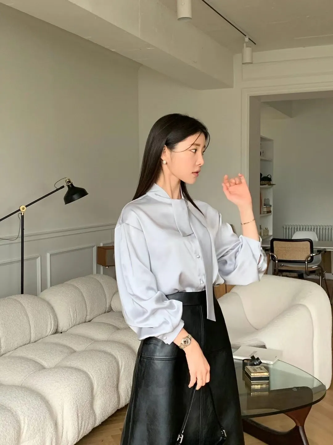 聚酯 冰涼絲滑 光澤緞面 滑順親膚 胸寬友善 入秋厚度 布包釦 袖口有釦