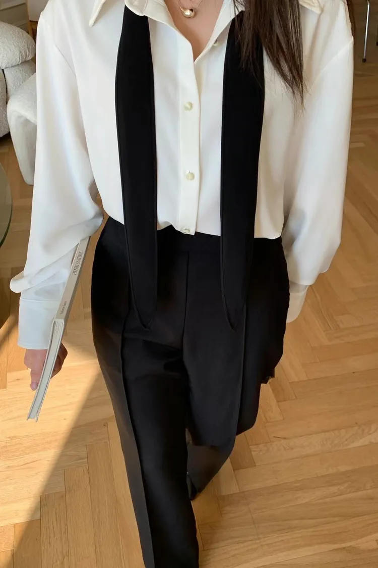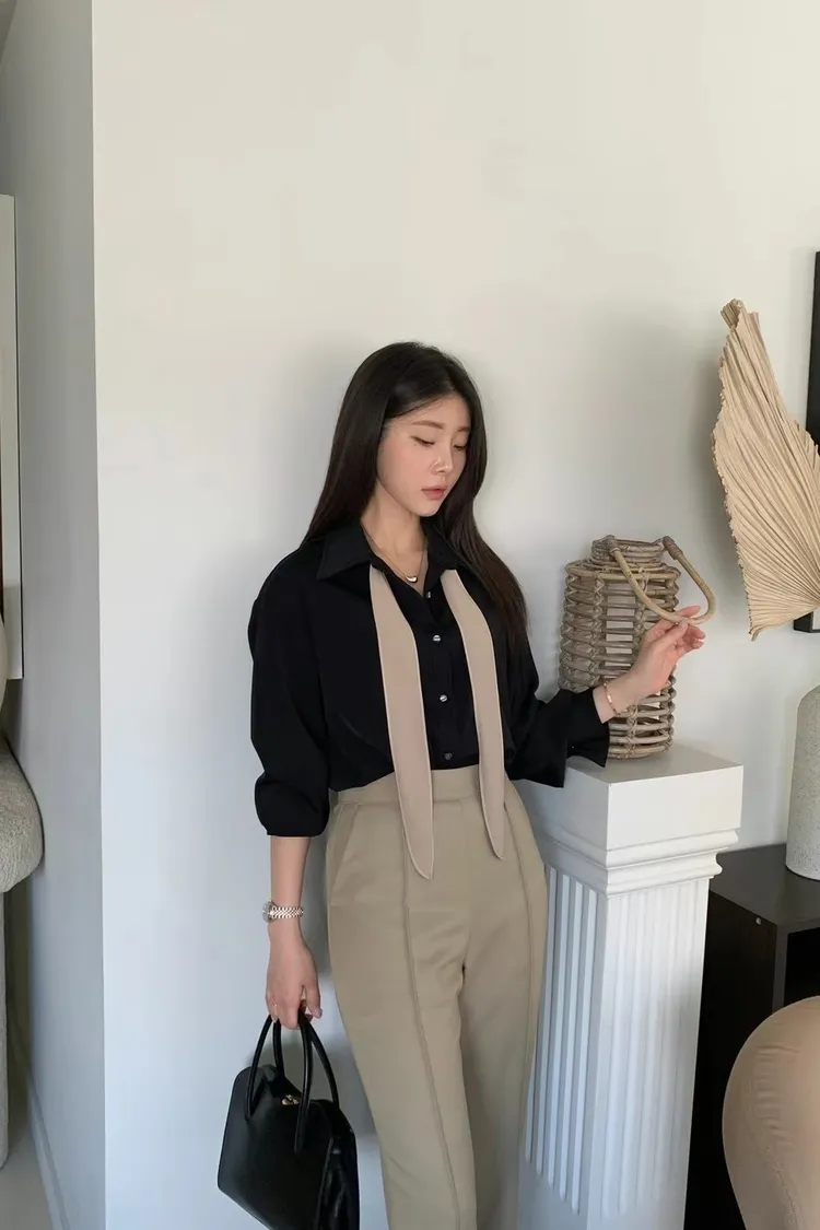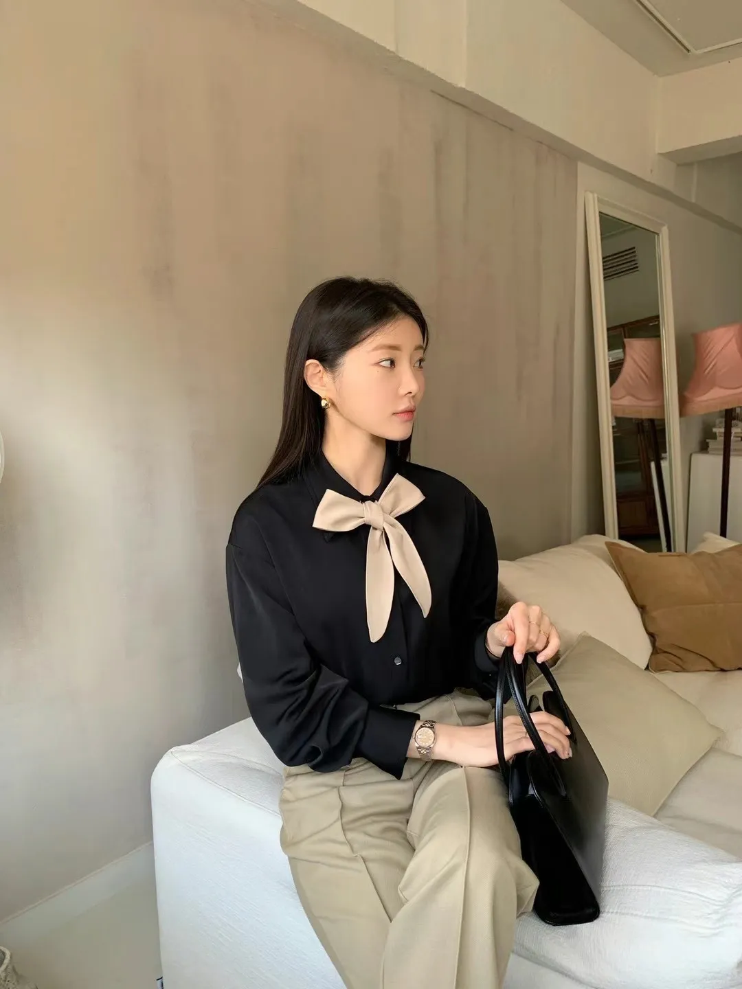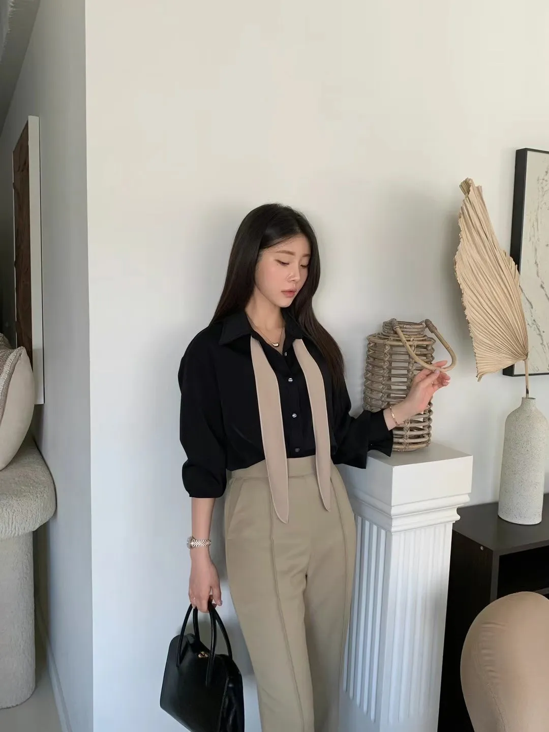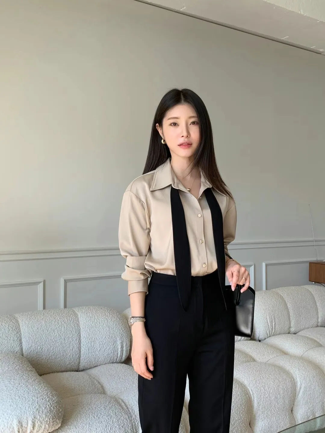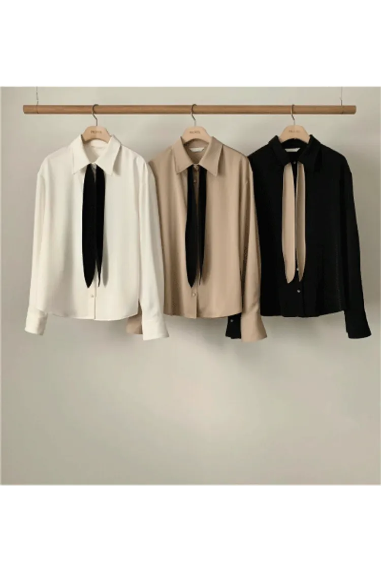 CS569雪紡高級珠光感胸綁帶襯衫 白 黑 奶茶 線上價$1390 官網價$1420