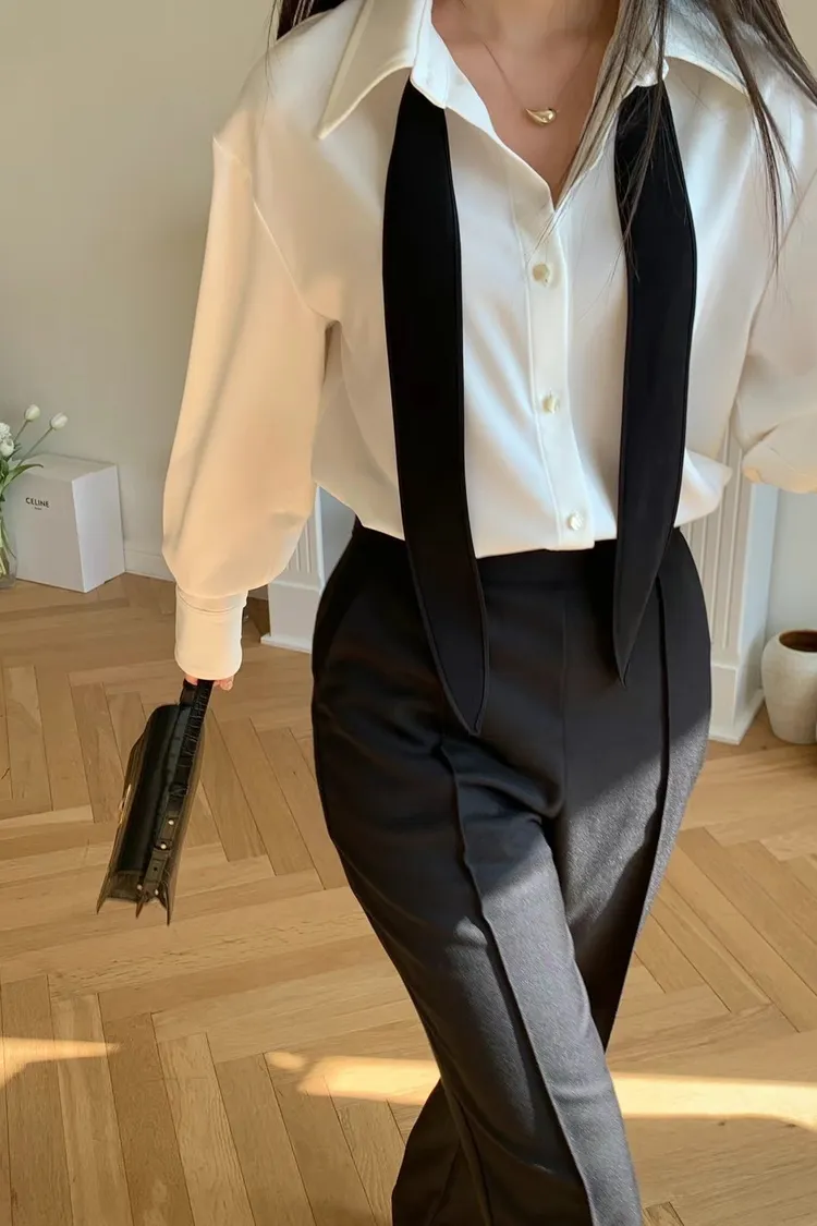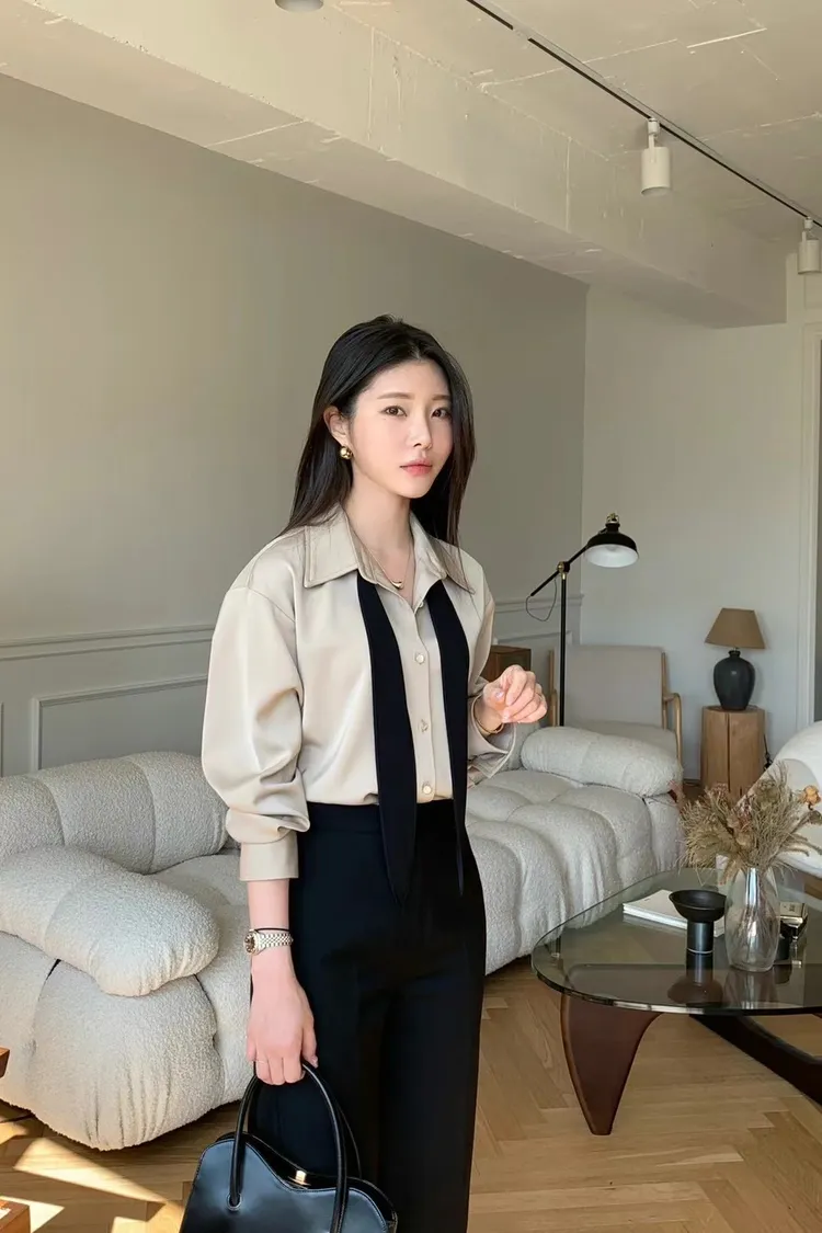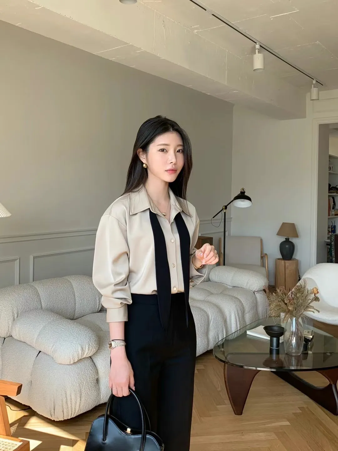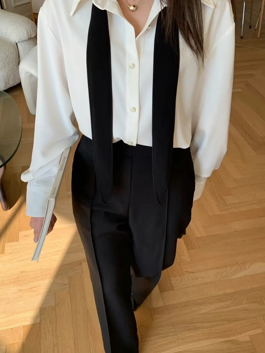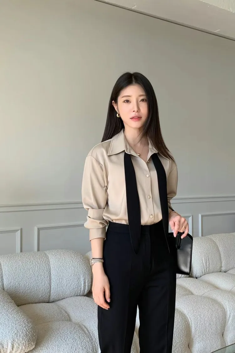 CS569雪紡高級珠光感胸綁帶襯衫 白 黑 奶茶 線上價$1390 官網價$1420