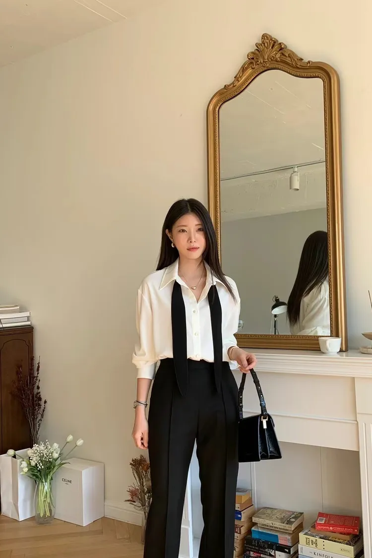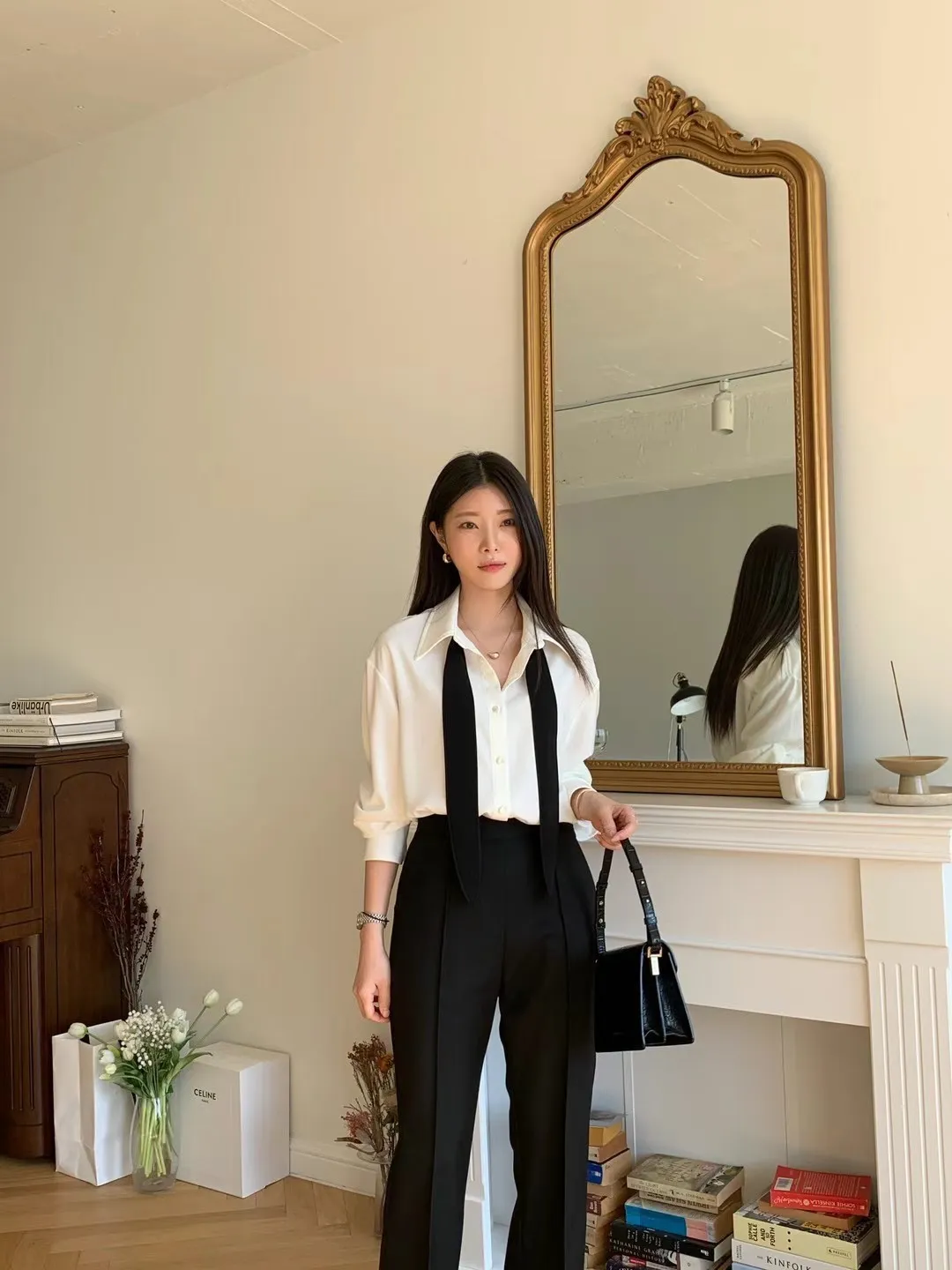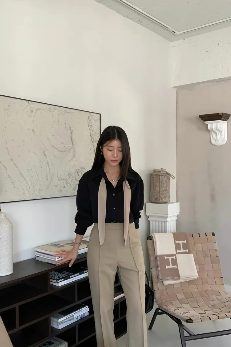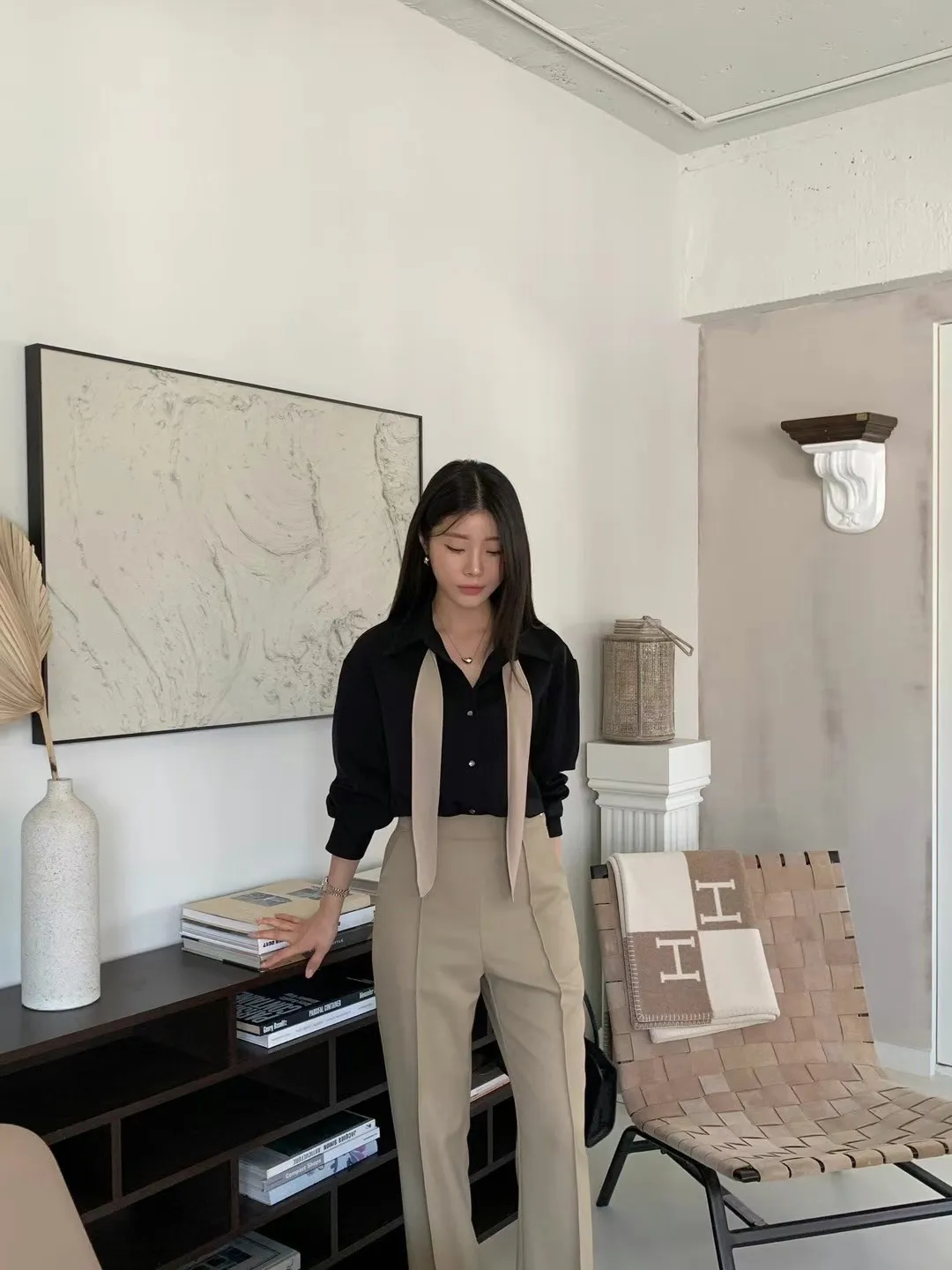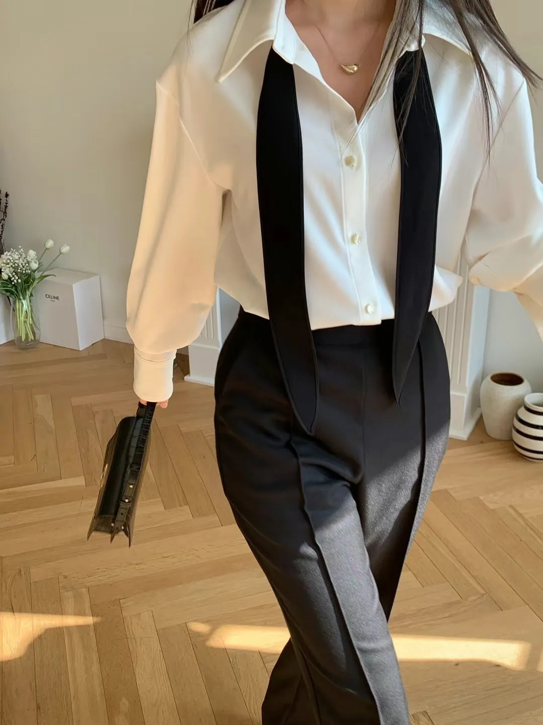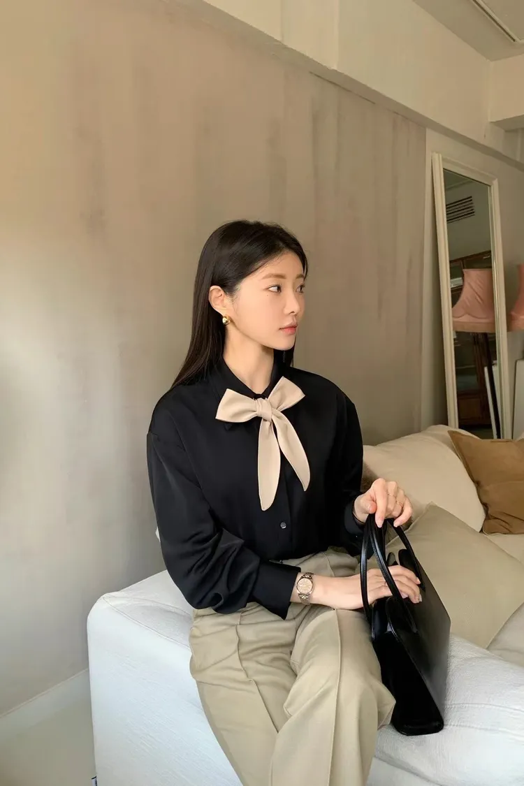 CS569雪紡高級珠光感胸綁帶襯衫 白 黑 奶茶 線上價$1390 官網價$1420