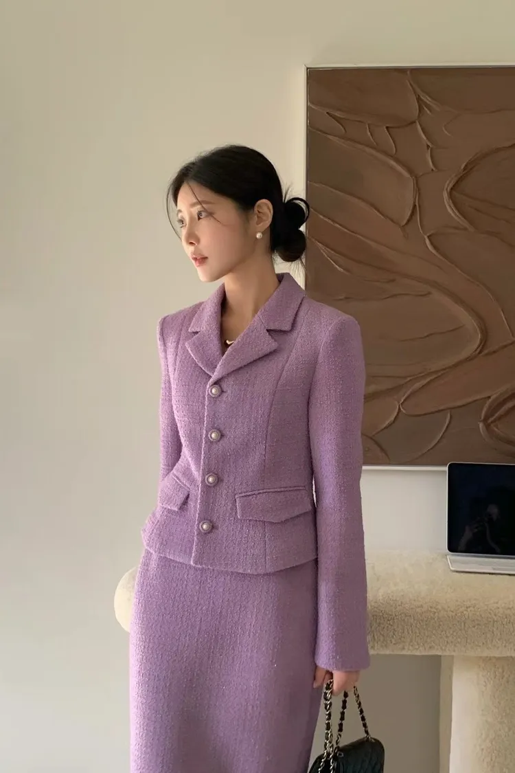 CS571套裝的羊毛西裝外套 紫 奶茶 線上價$2890 官網價$2920
