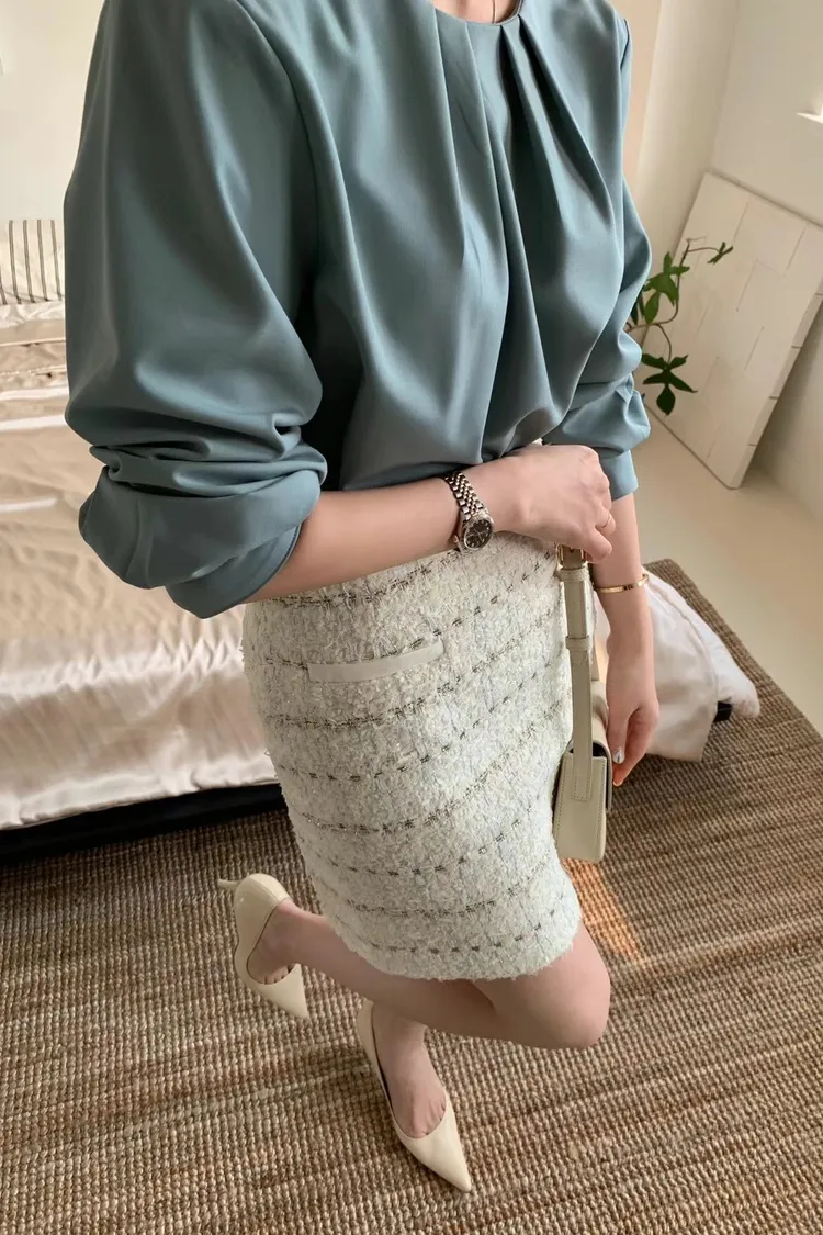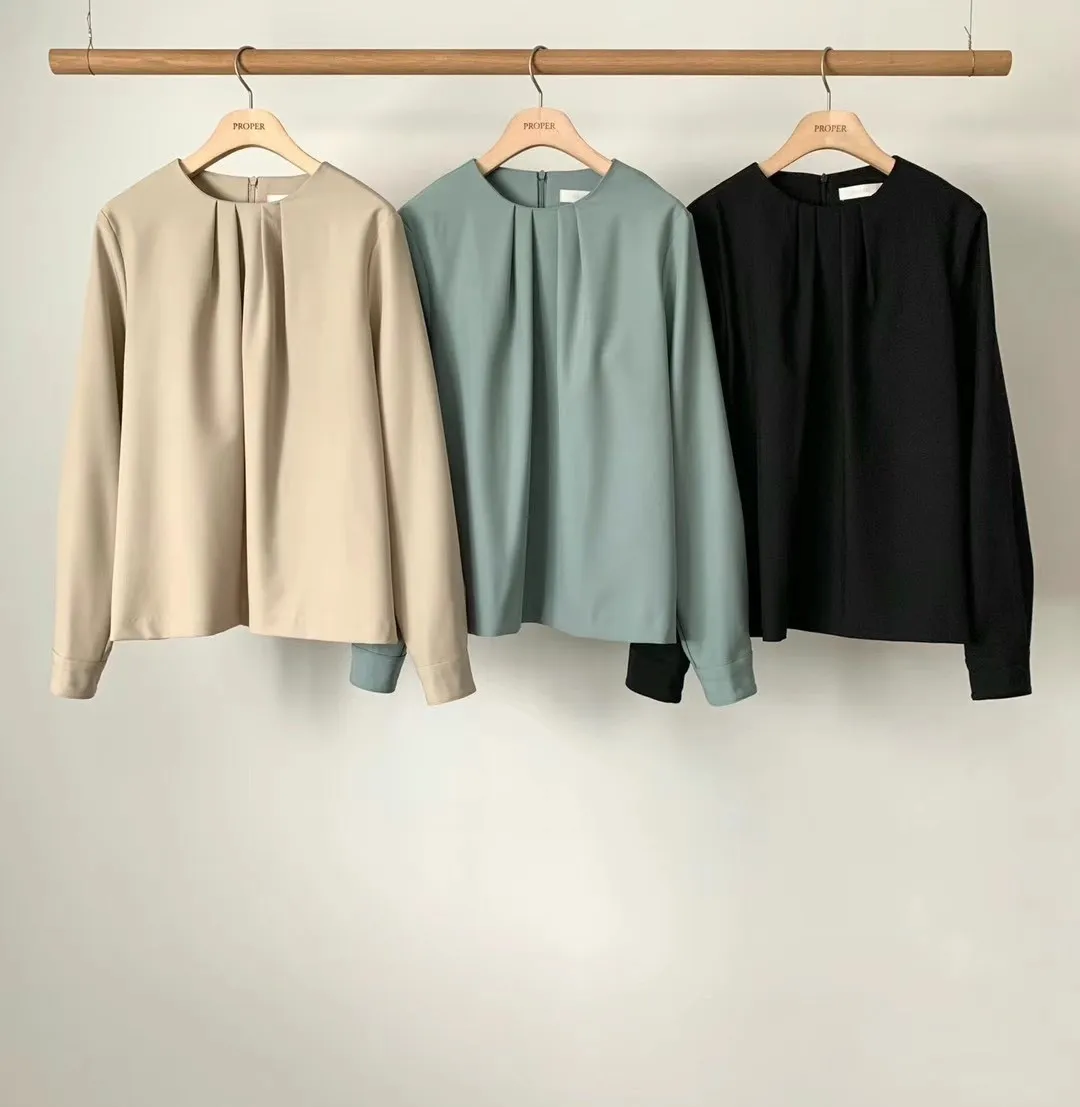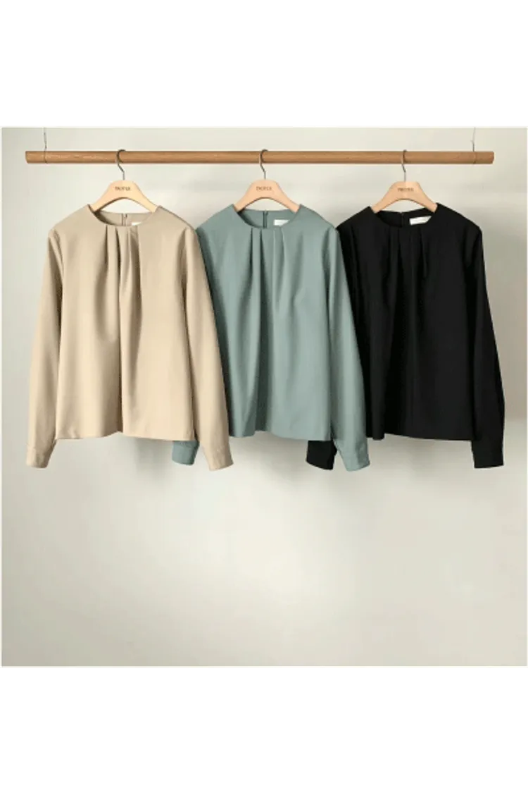 CS578許願款氣質圓領胸抓皺美衣 奶茶 綠 黑 線上價$1290 官網價$1320