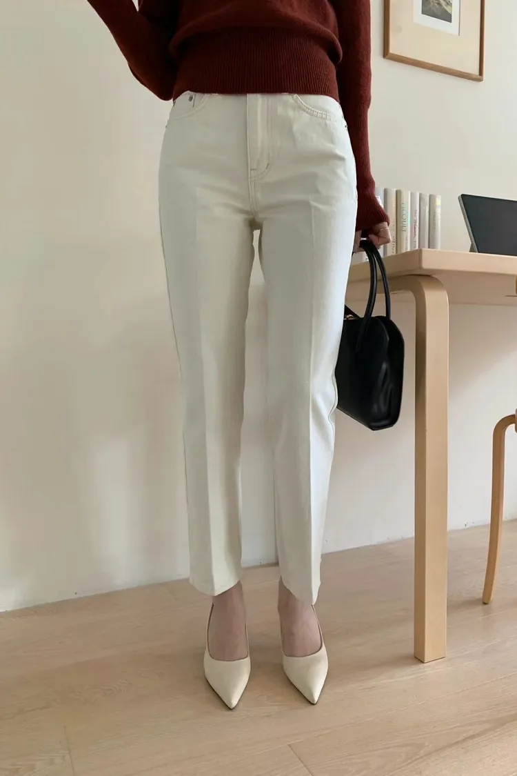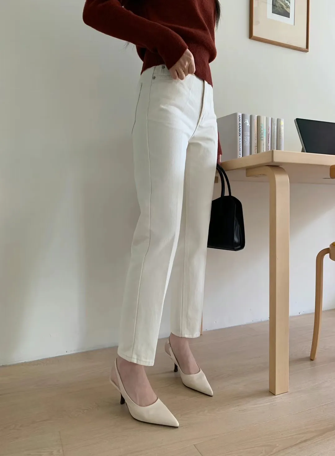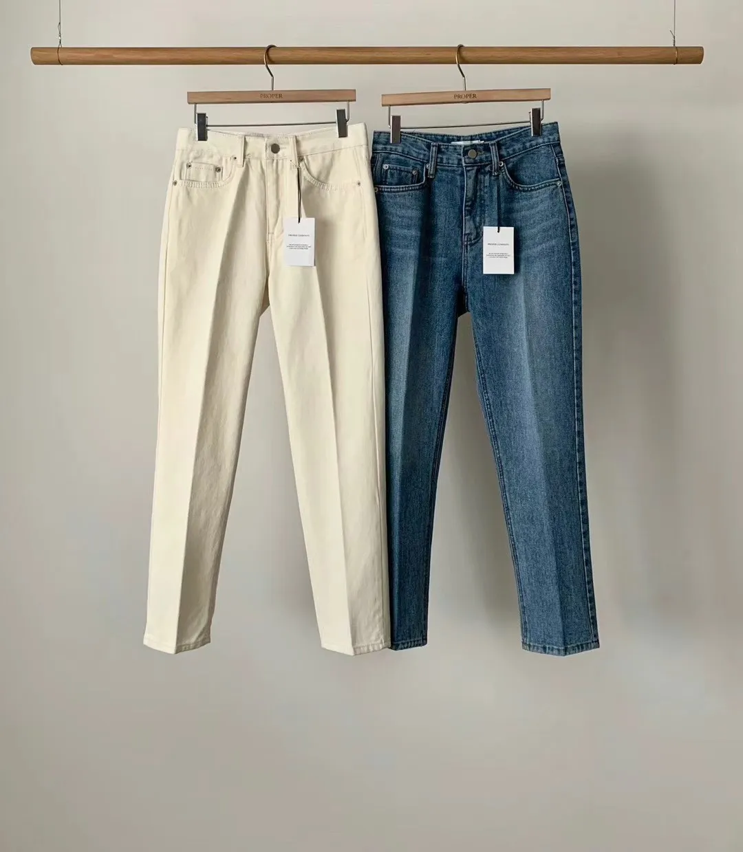CS579直腿皮革標小個牛仔長褲 白 藍 S M 線上價$1190 官網價$1220