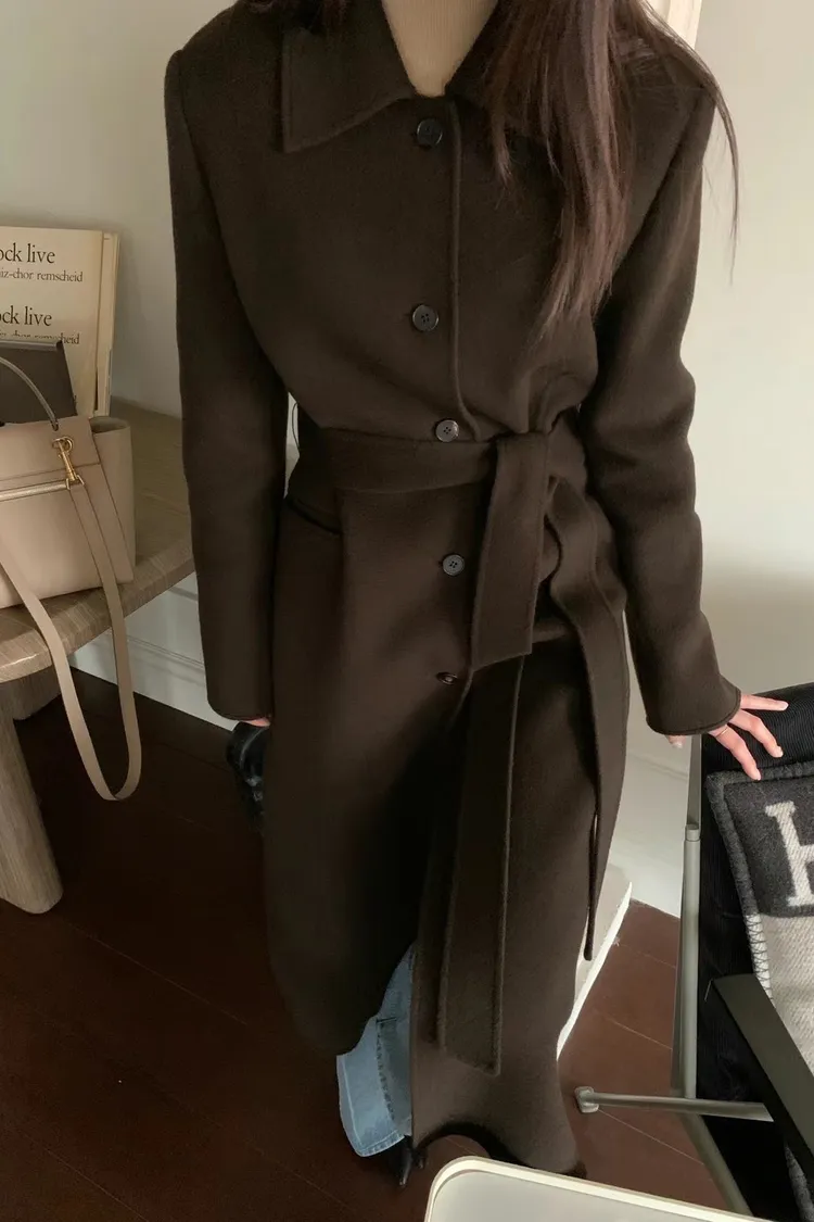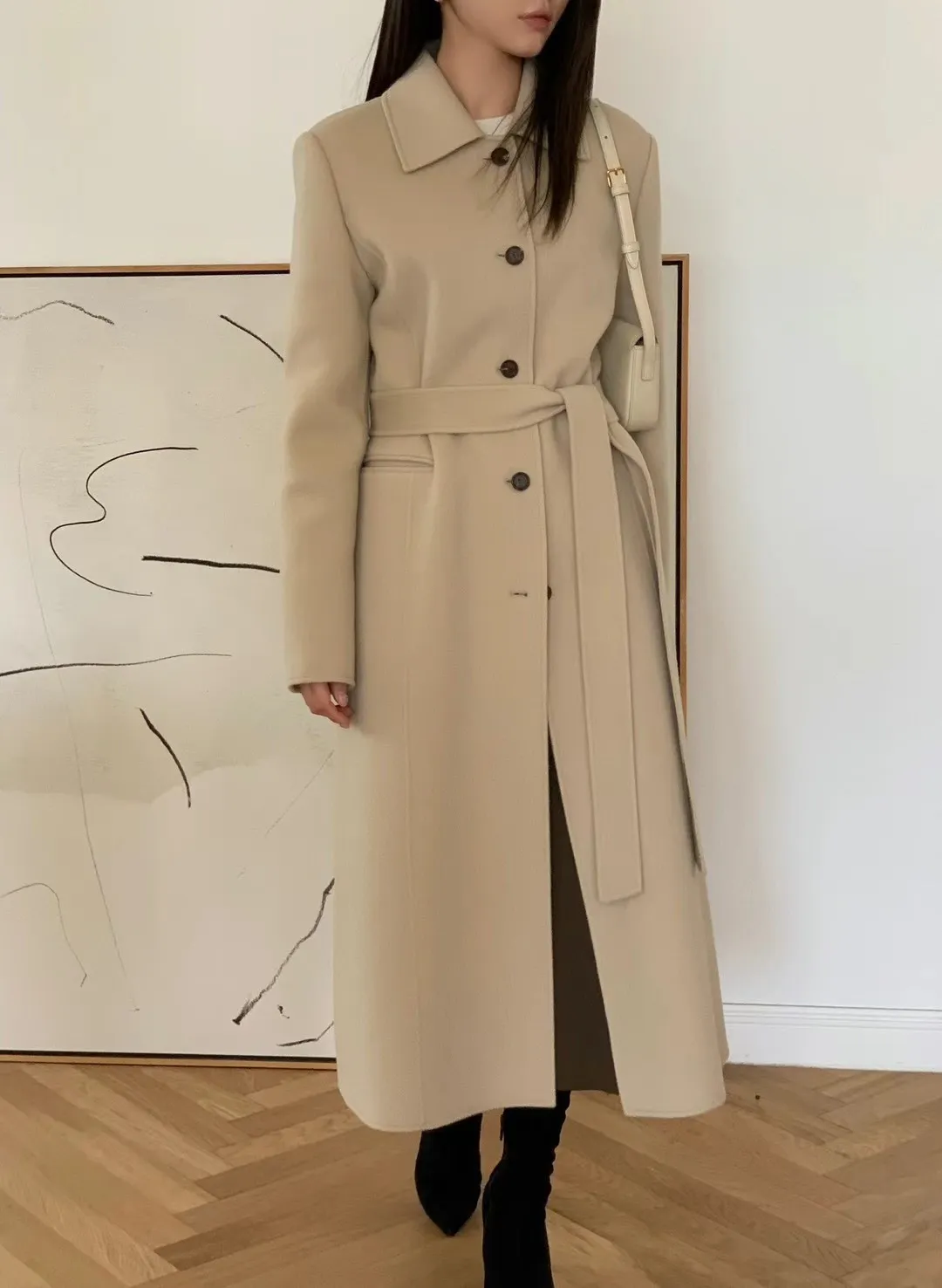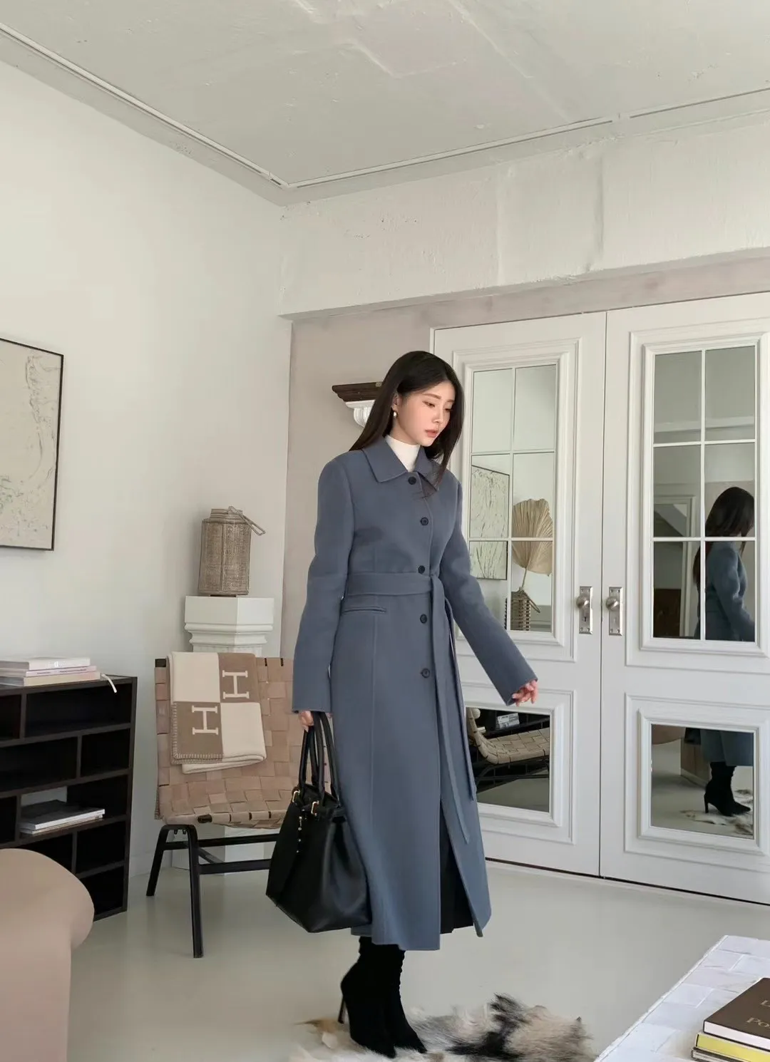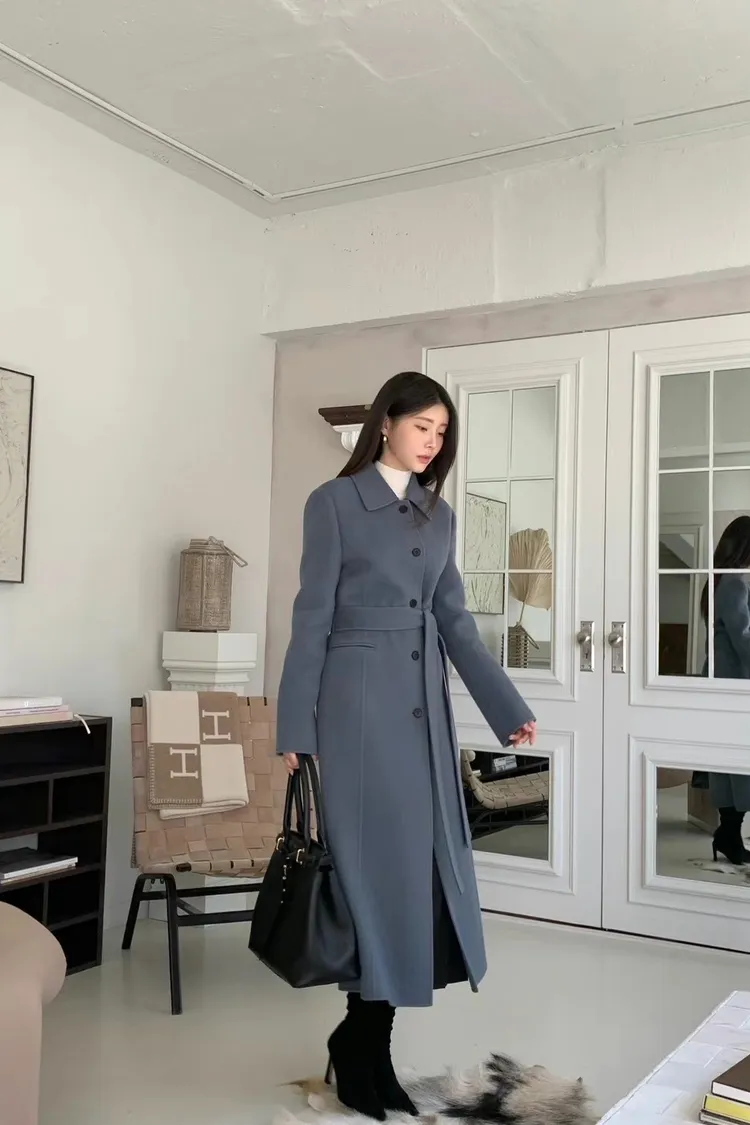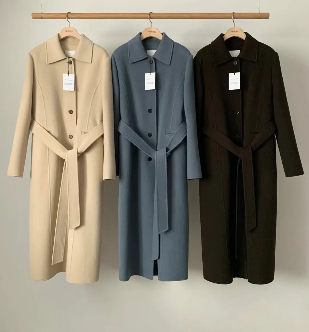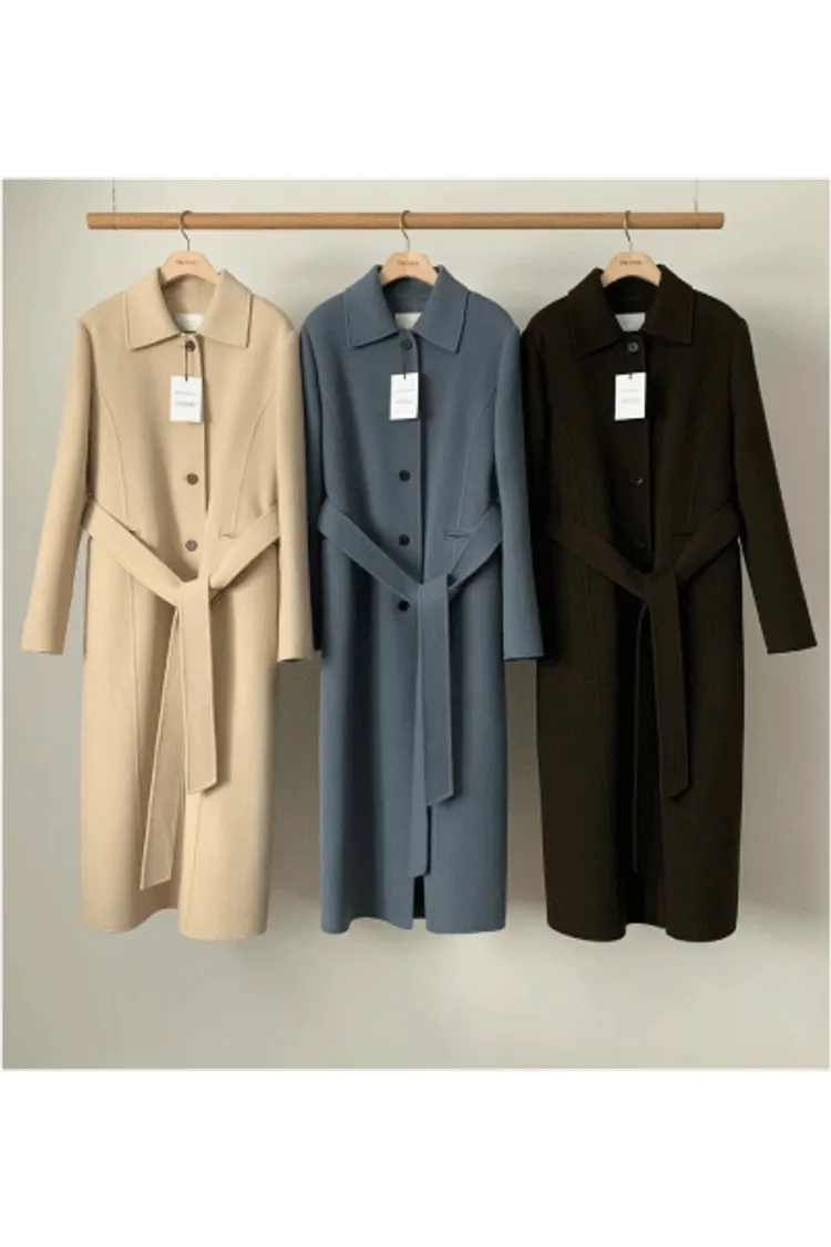 CS582質感手工羊毛長版外套(附綁帶) 米 藍 咖 線上價$5120 官網價$5150