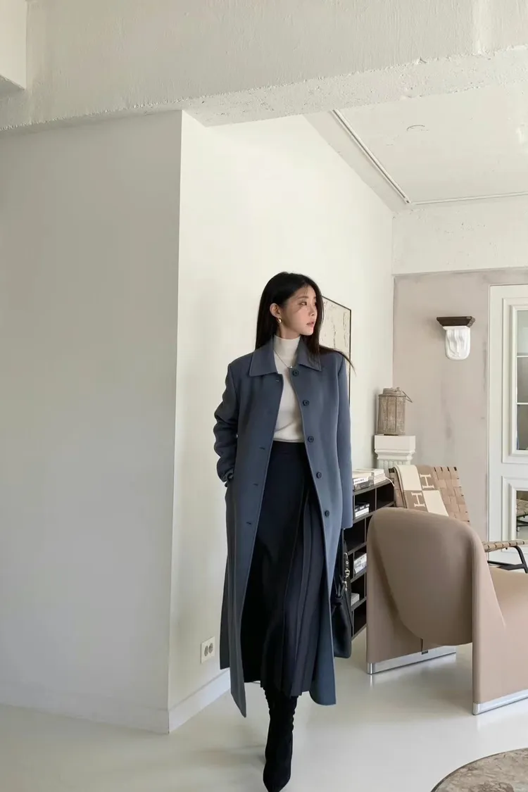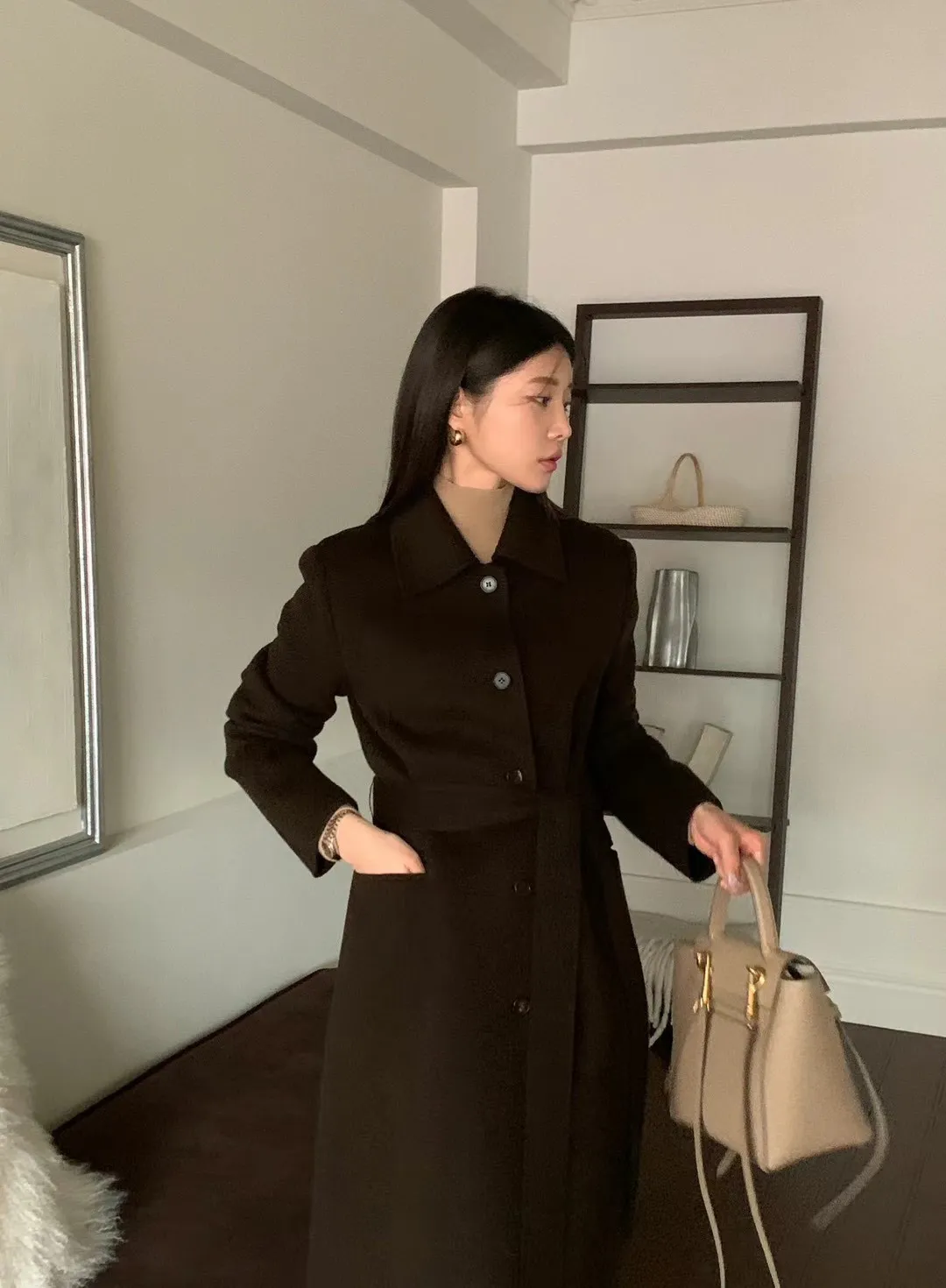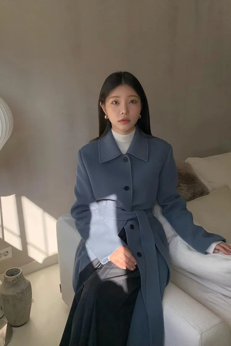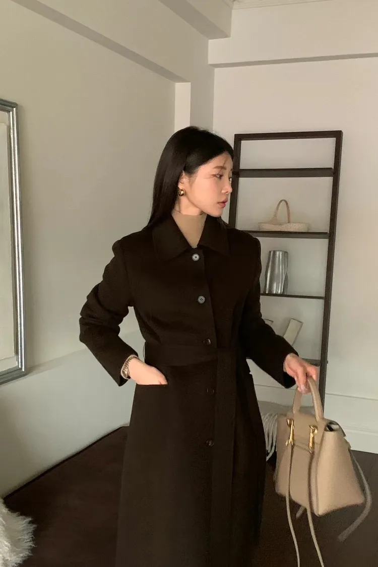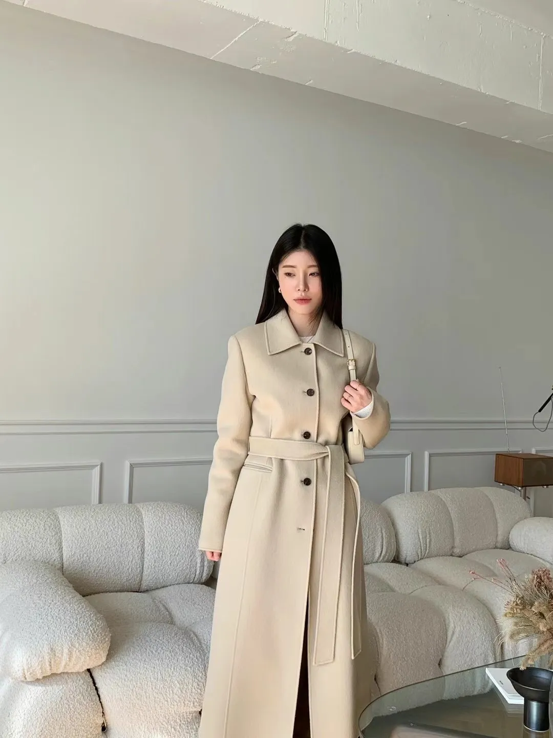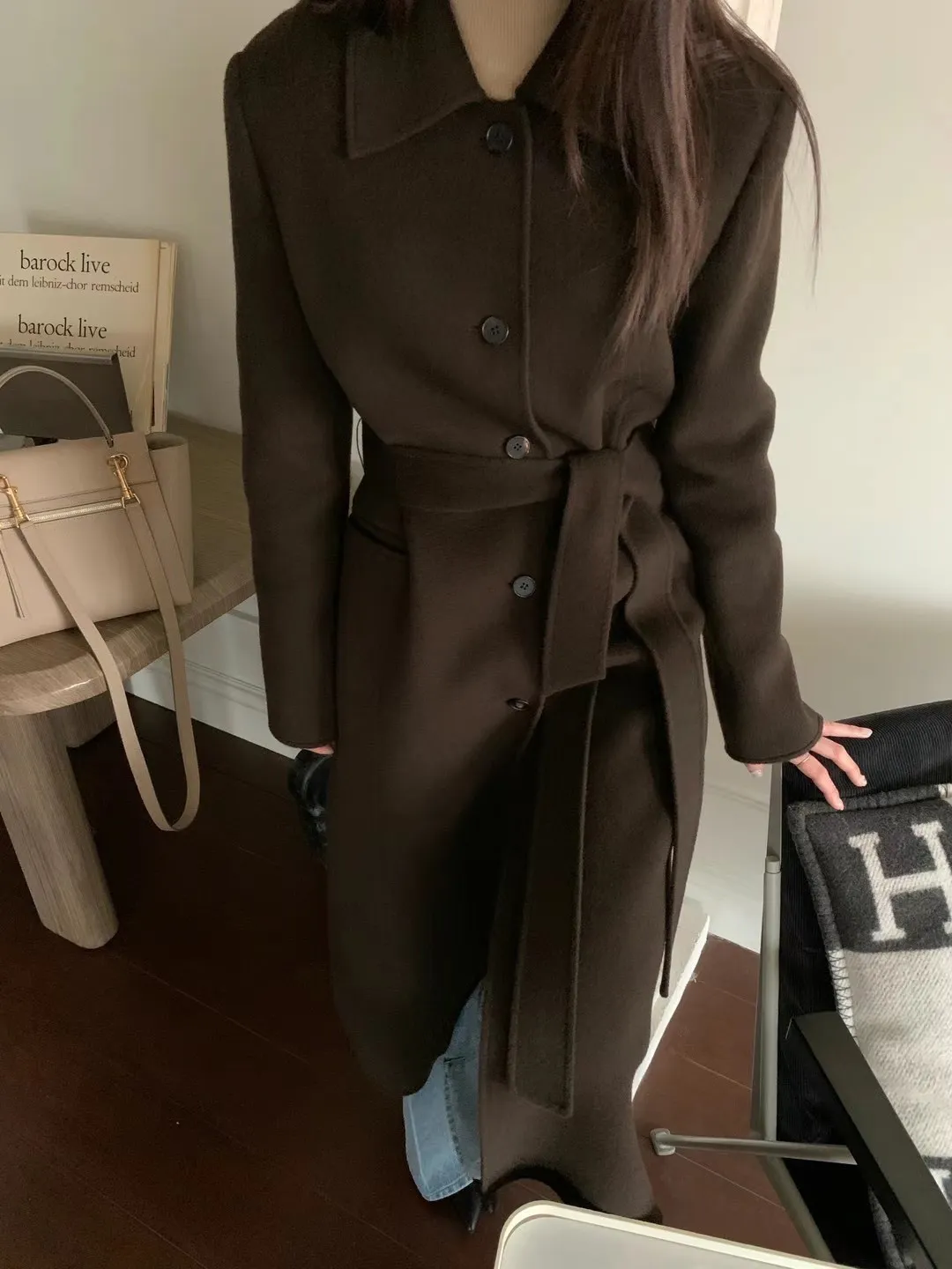 CS582質感手工羊毛長版外套(附綁帶) 米 藍 咖 線上價$5120 官網價$5150