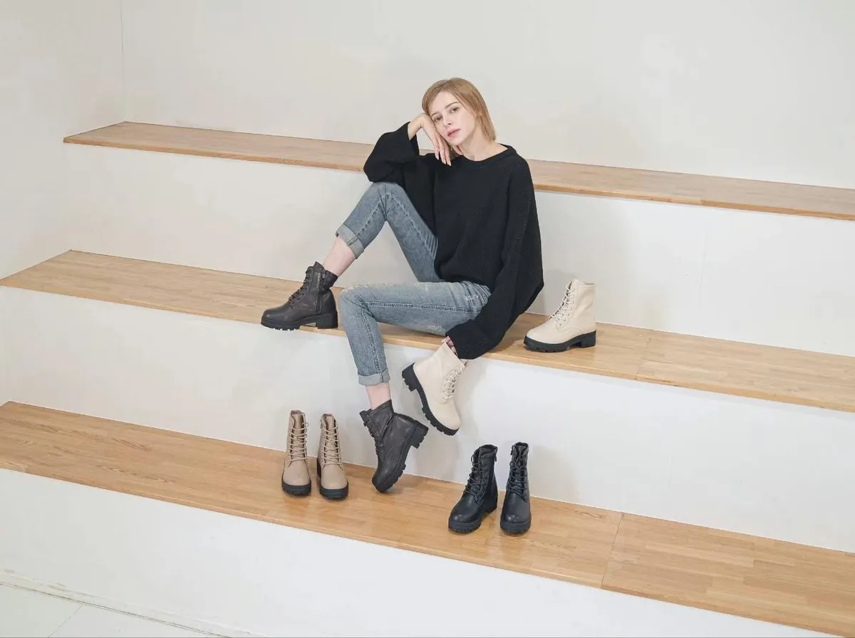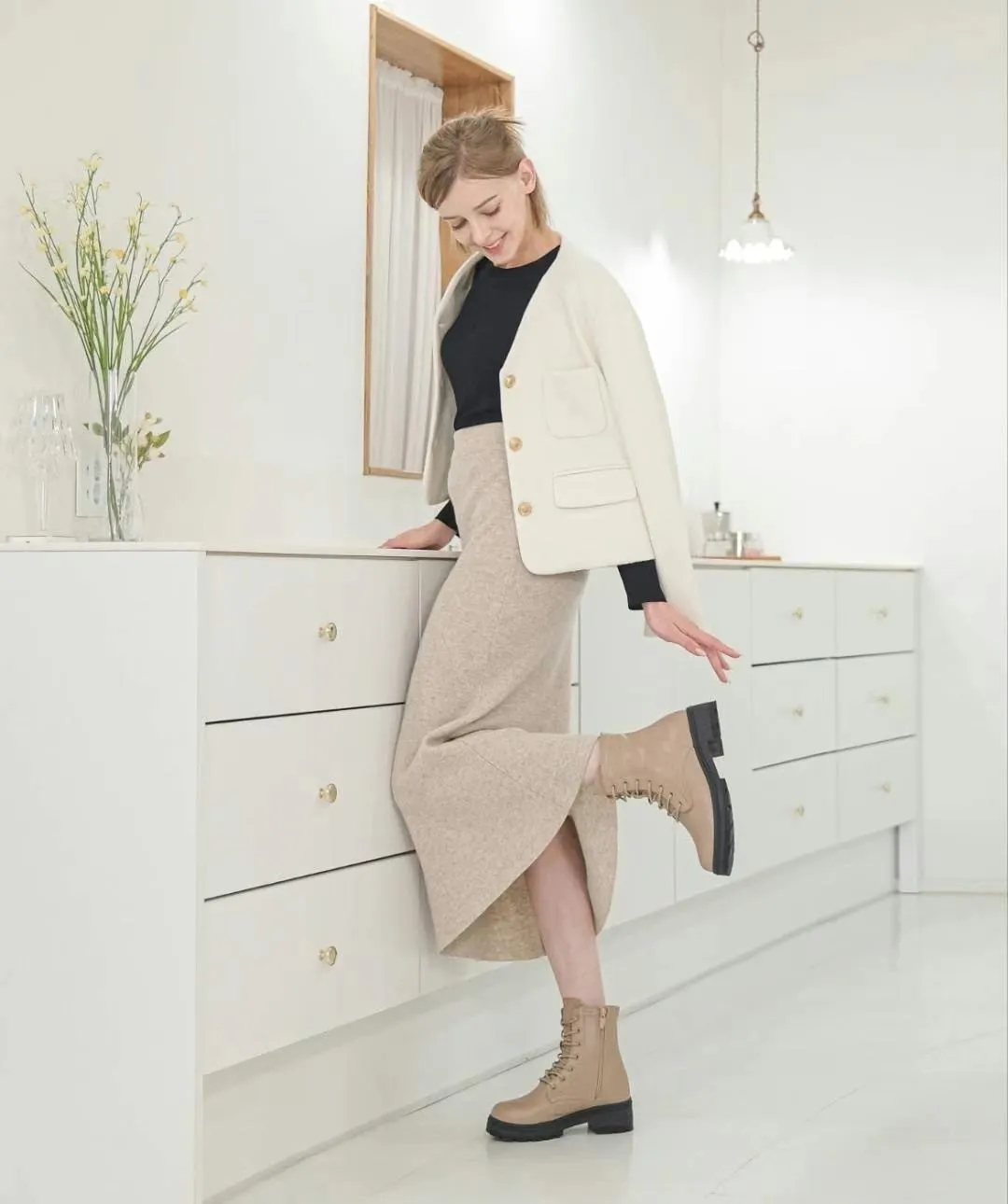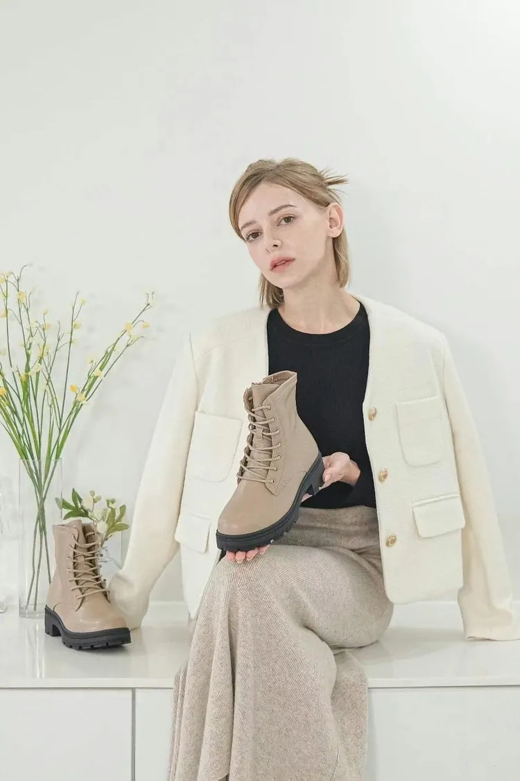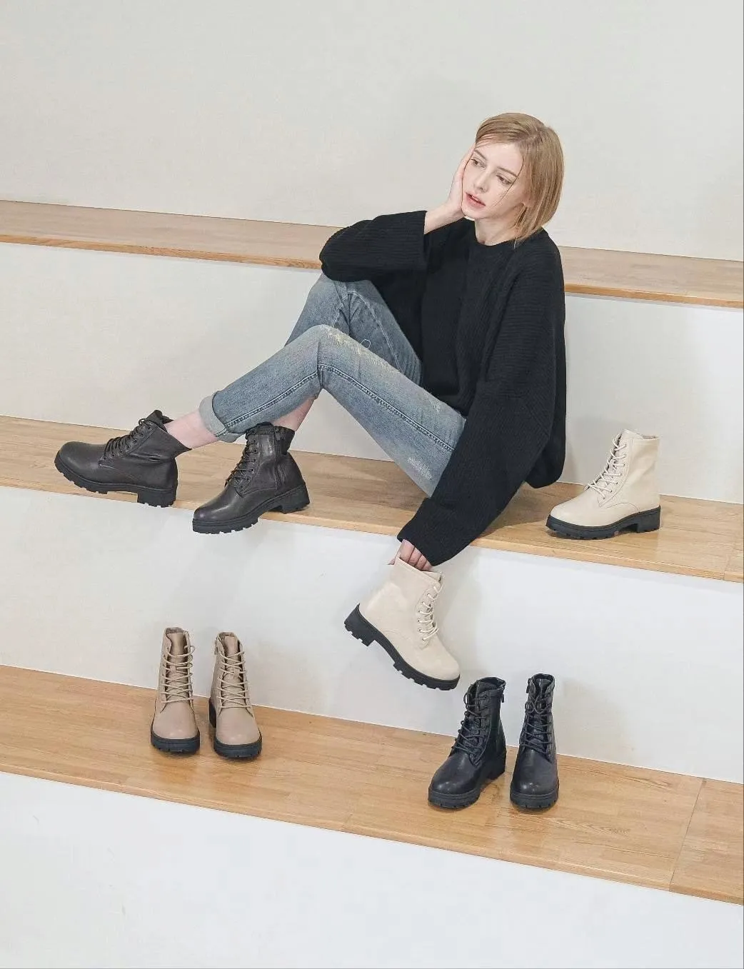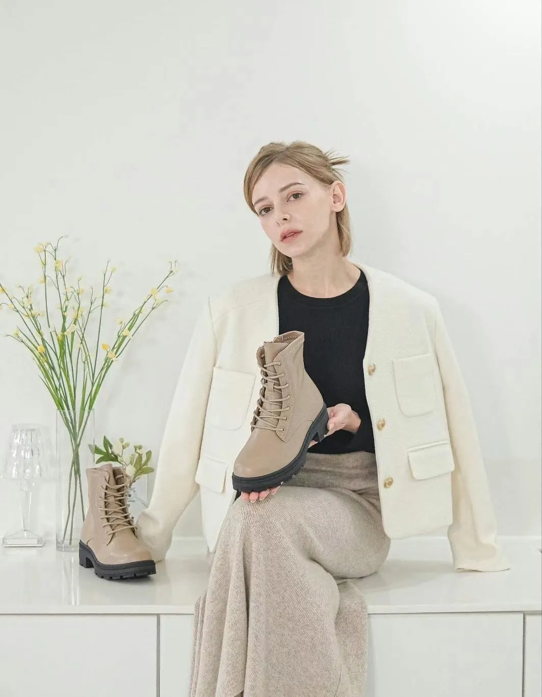 CS588超高CP值側拉鍊綁繩靴 米 奶茶 咖 黑 230-250(有半號) $899