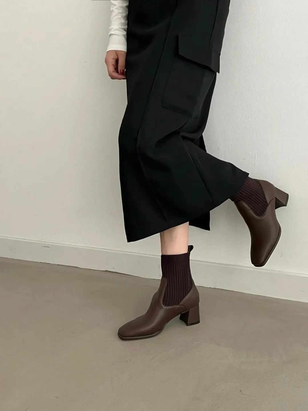 牛皮,輕盈,鞋底很Q,筒高含鞋跟20,跟高5,瘦腳正常拿 寬腳大半號