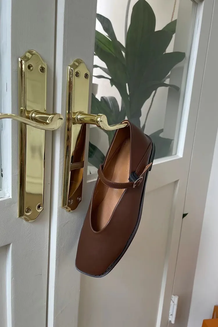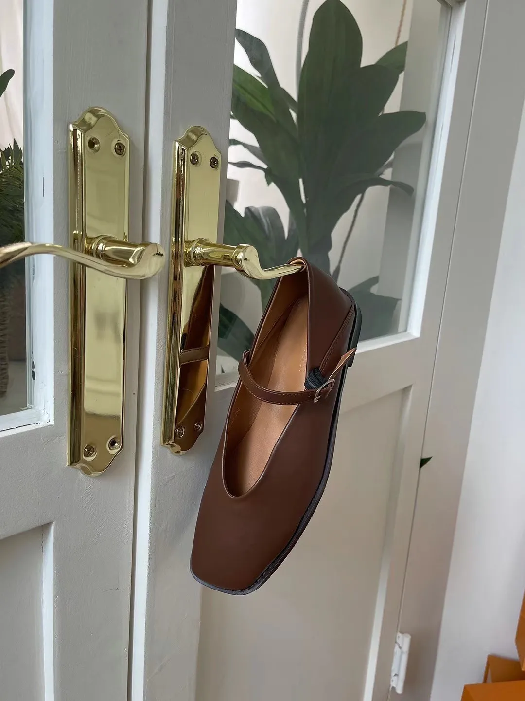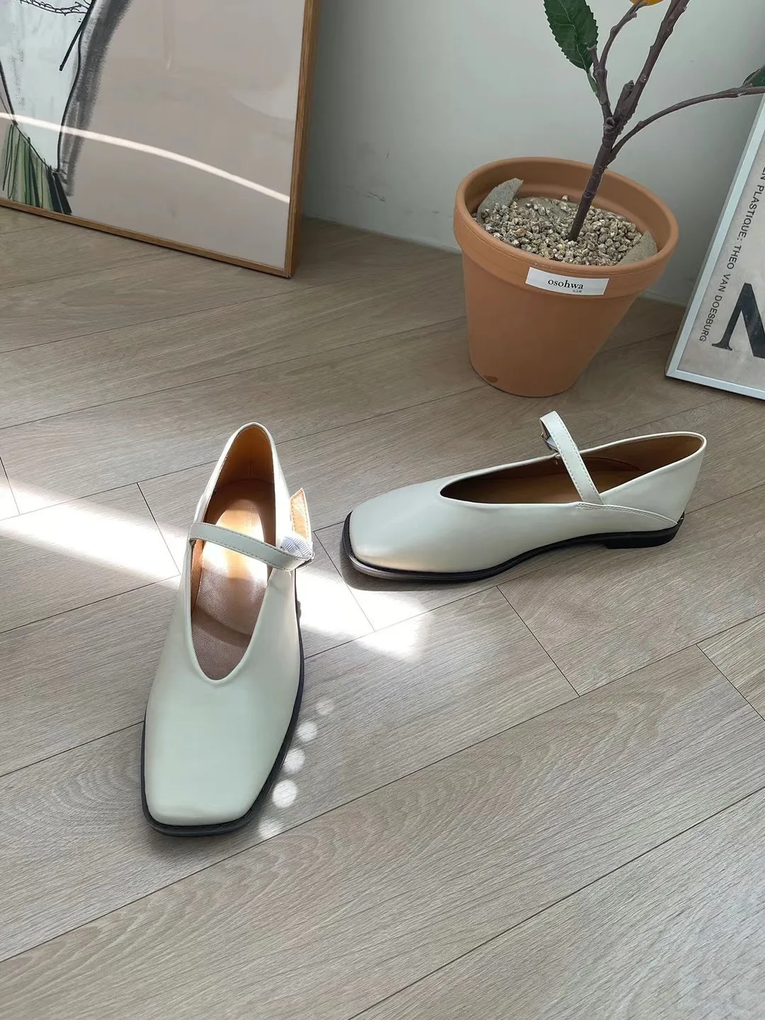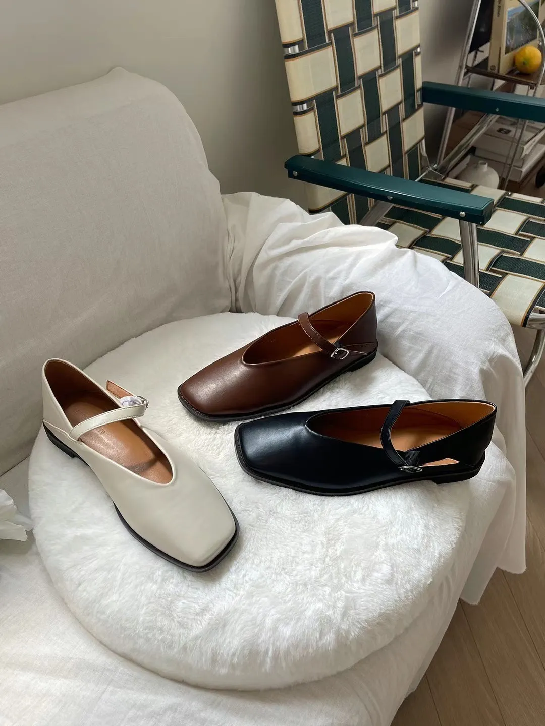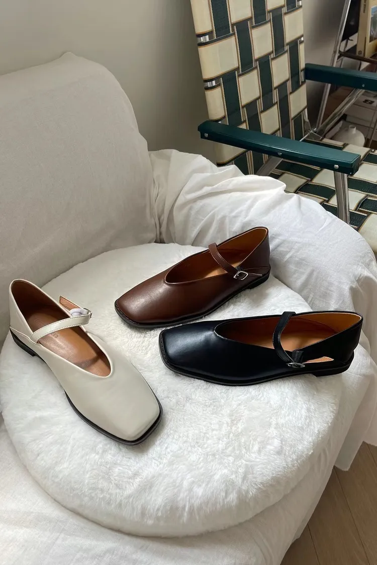 CS605 方頭釦環休閒鞋 白 咖 黑 230-250(有半號) $950