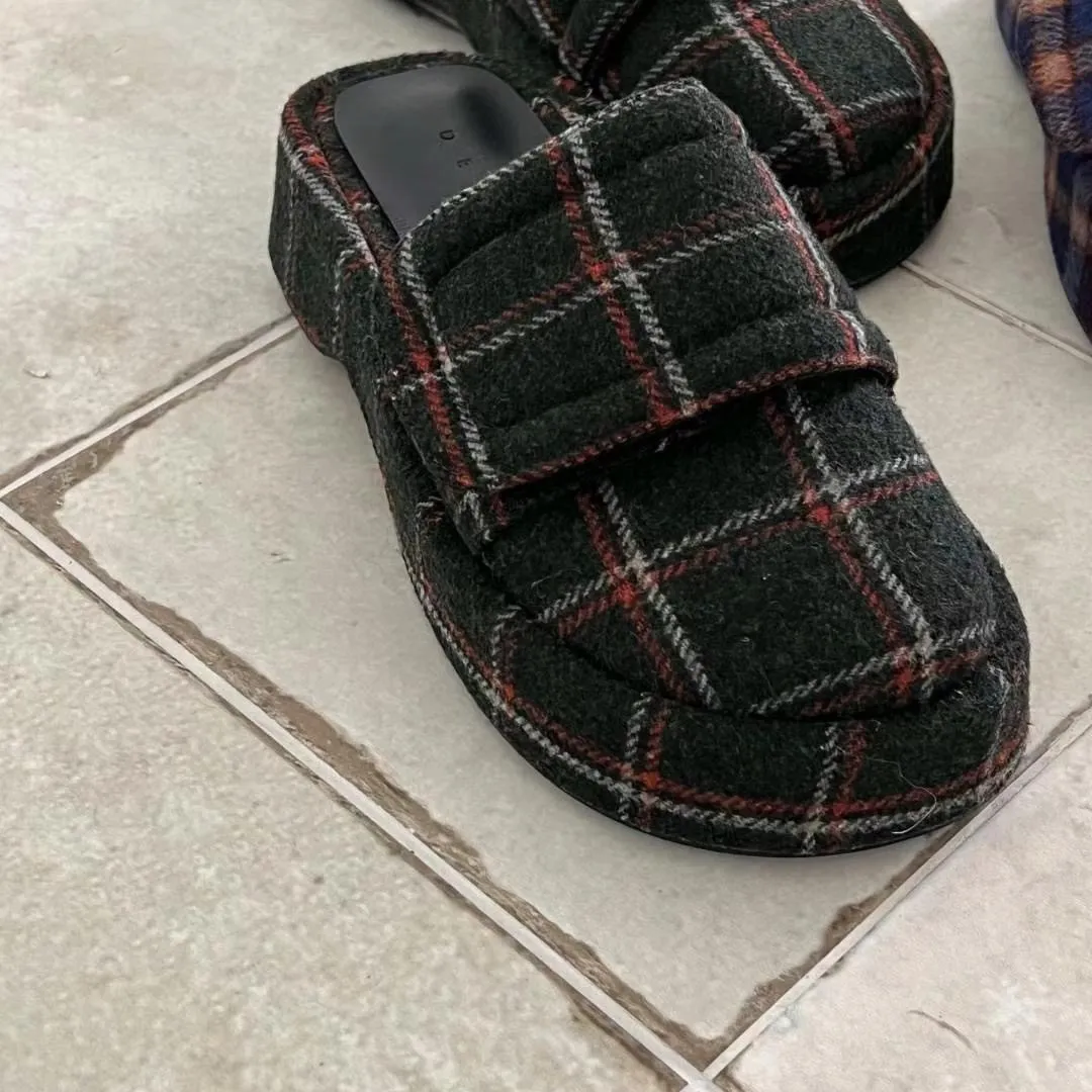 CS618可愛格紋拖鞋 綠 藍 225-250(有半號) $1180