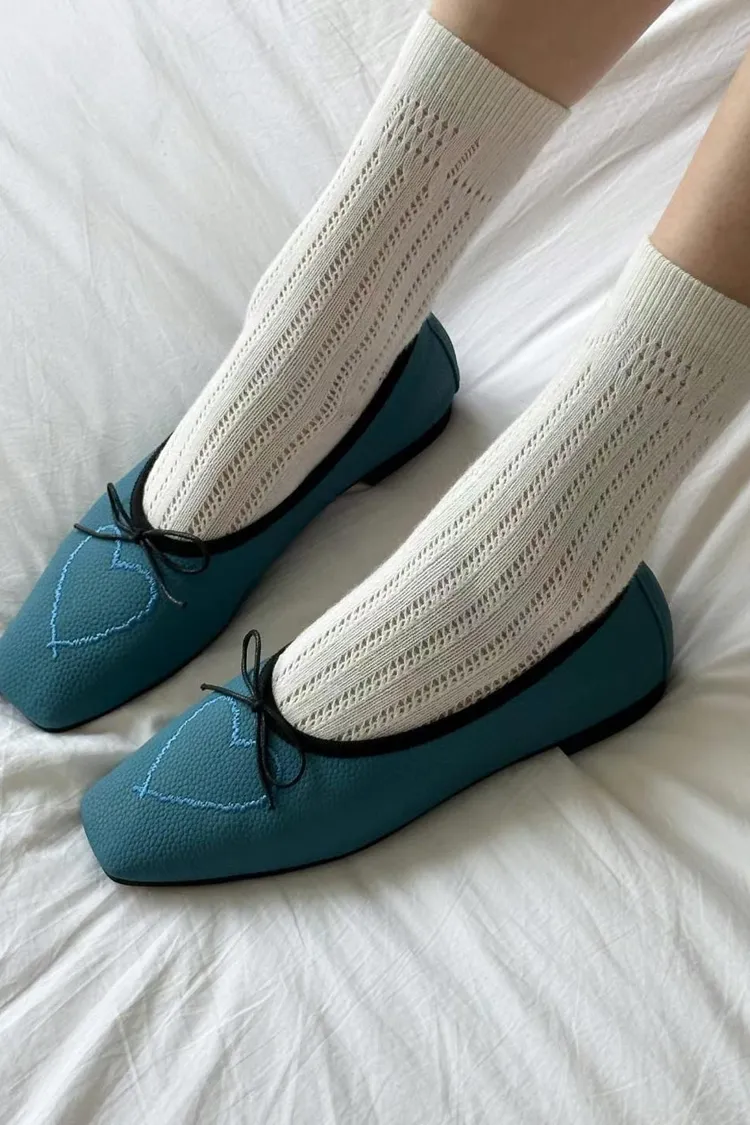 CS623小蝴蝶結刺繡愛心鞋 米 黑 咖 藍 225-250 $950
