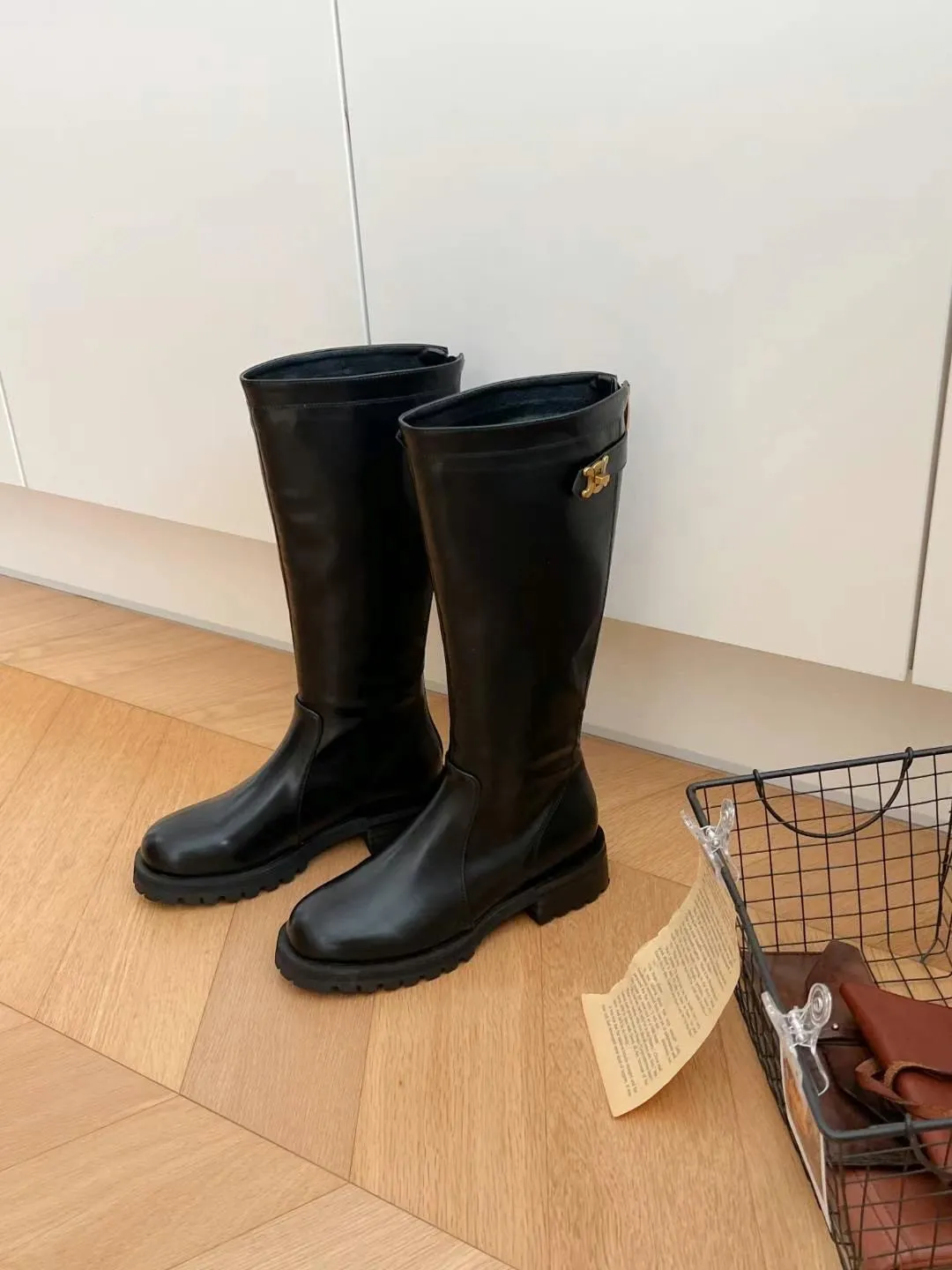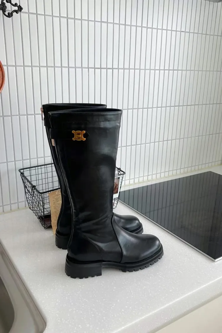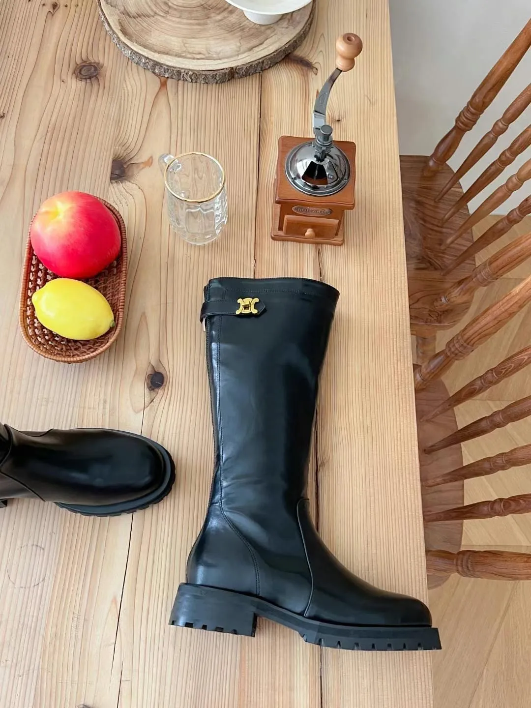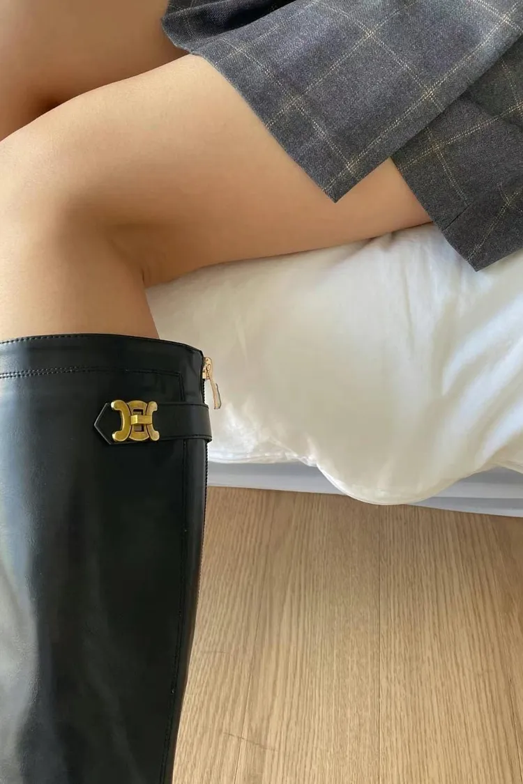CS639後拉鍊側金釦黑色長靴230-250(有半號)$1480