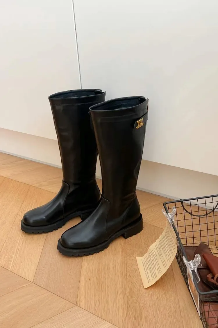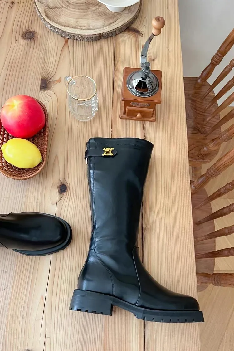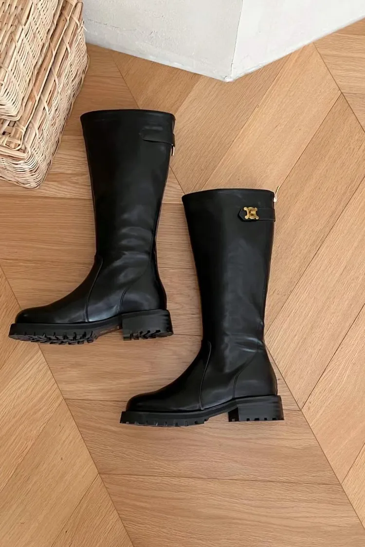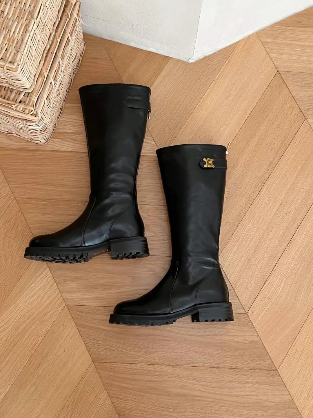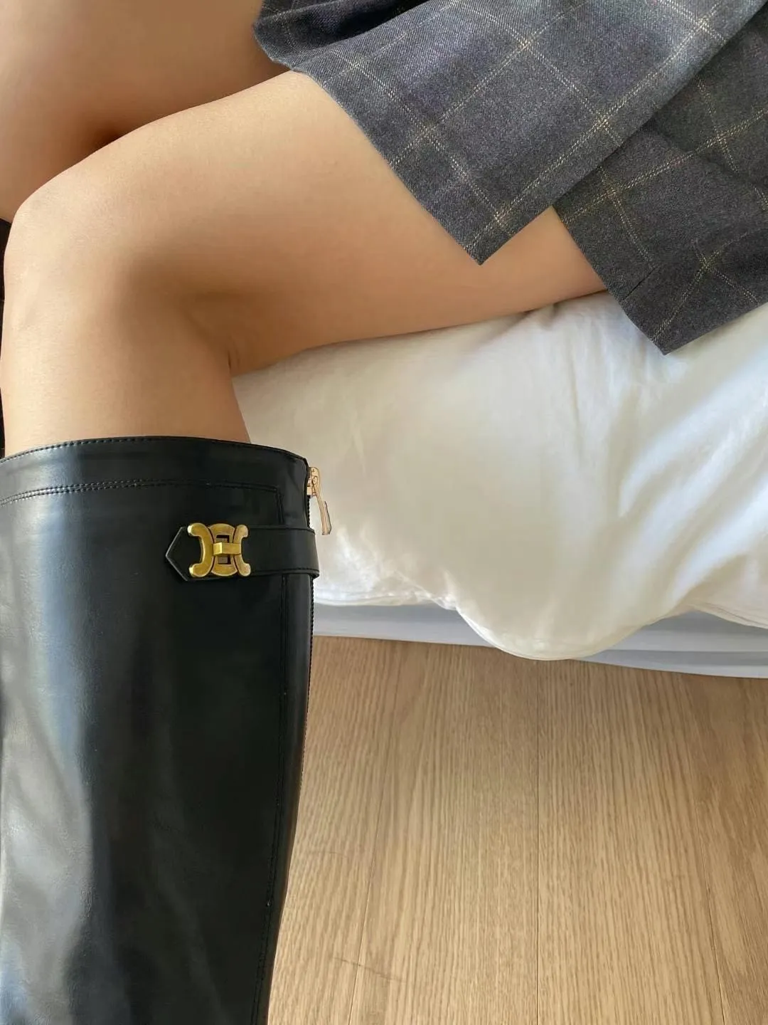 CS639後拉鍊側金釦黑色長靴230-250(有半號)$1480