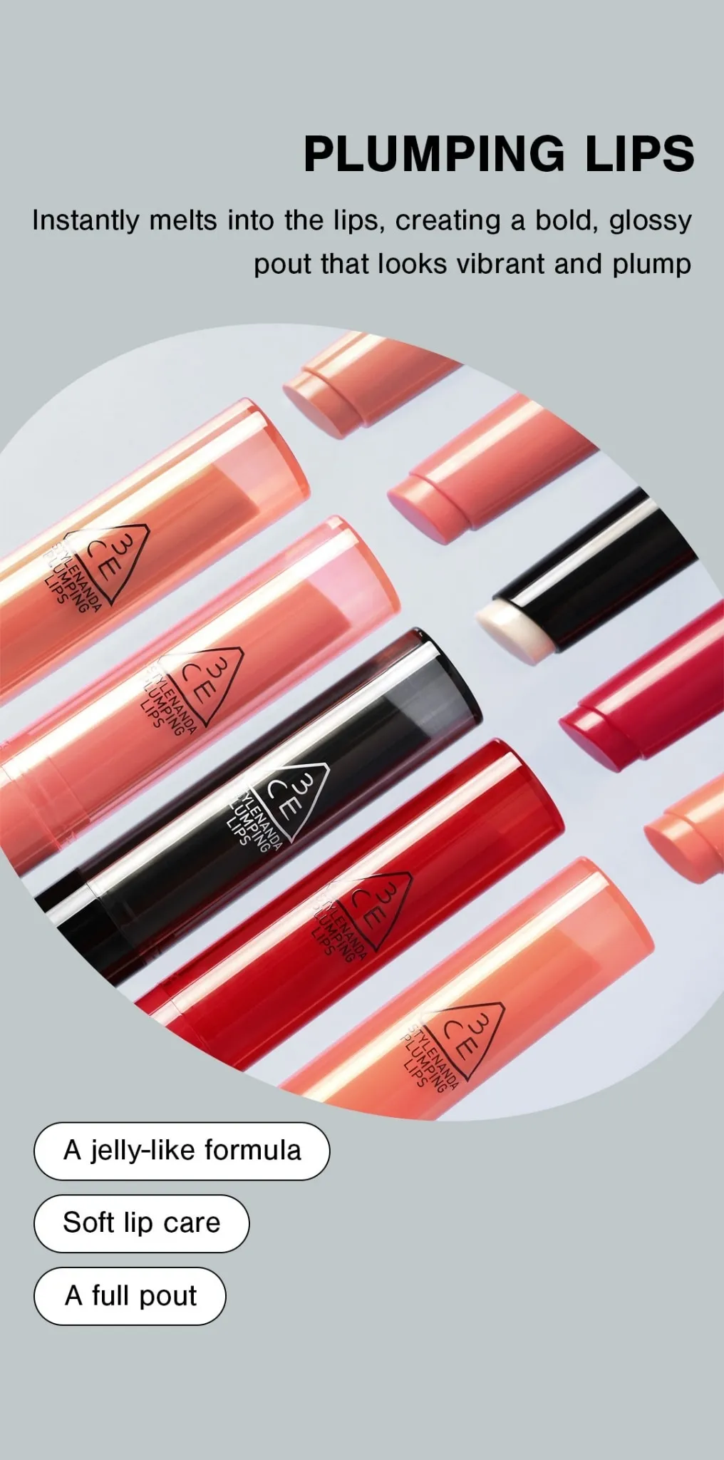 CS685果凍3CE 豐潤水嫩潤唇膏 PLUMPING LIPS(2.2g) 一號到五號 $299