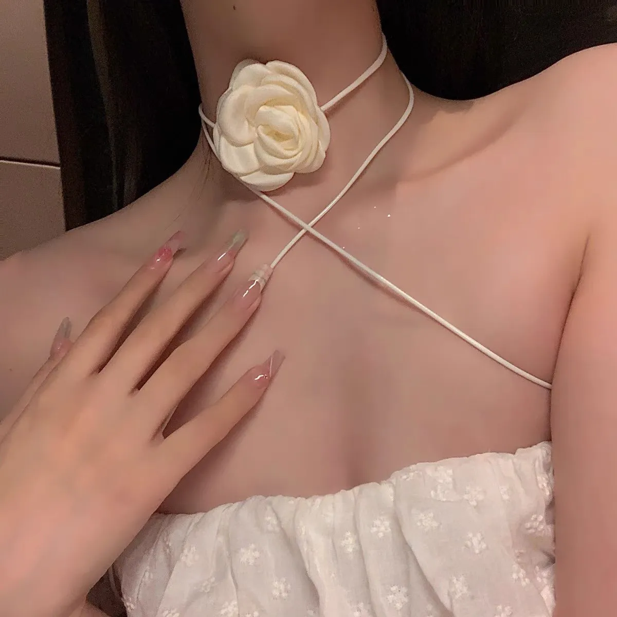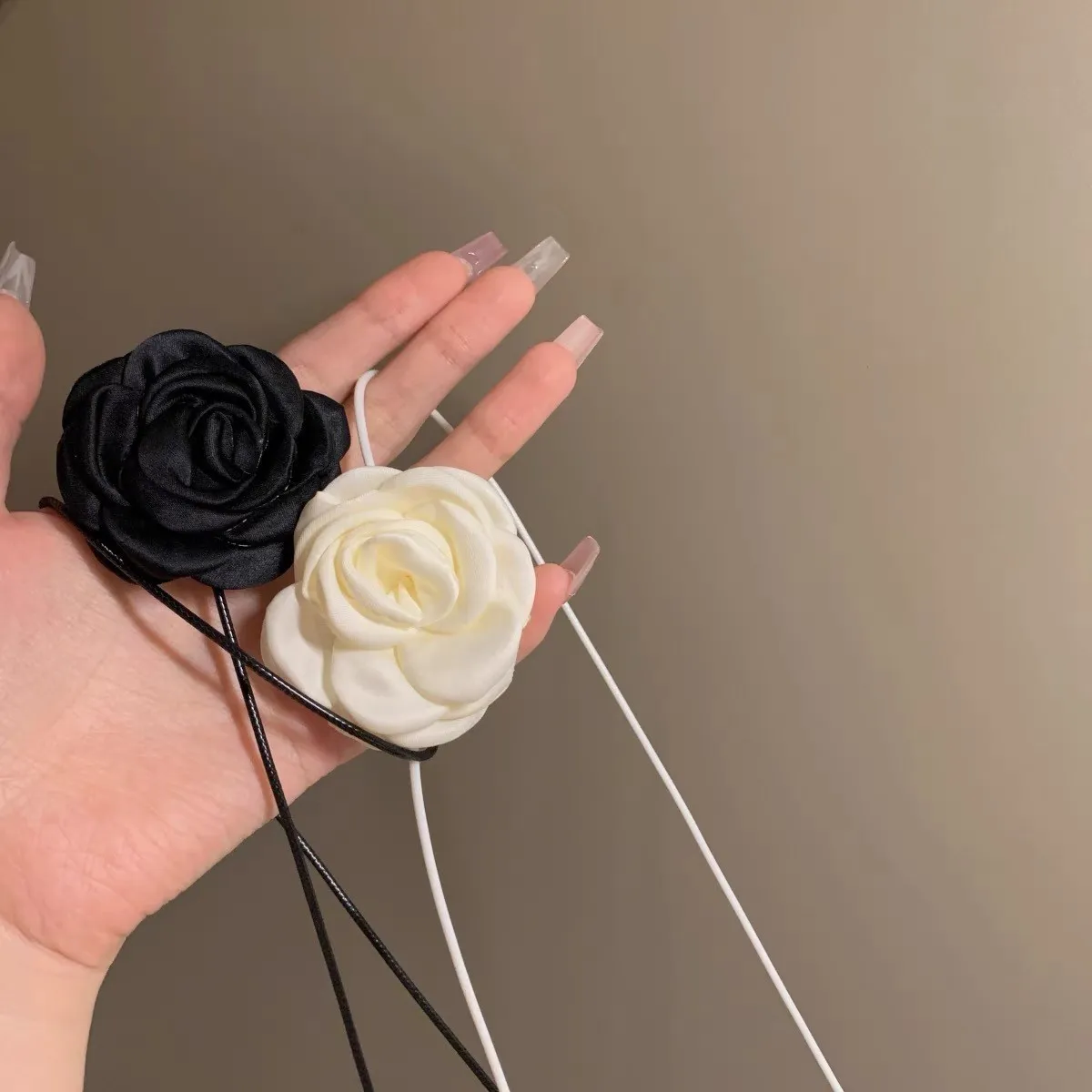 CS705質感立體玫瑰花綁繩項鍊 全白 全黑 線上價$240官網價$270