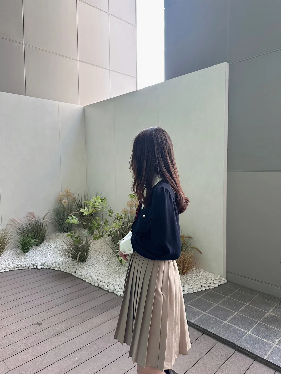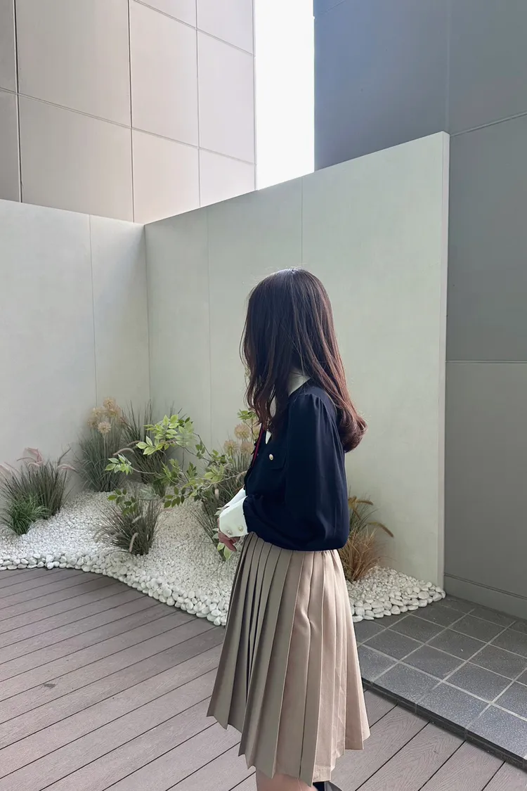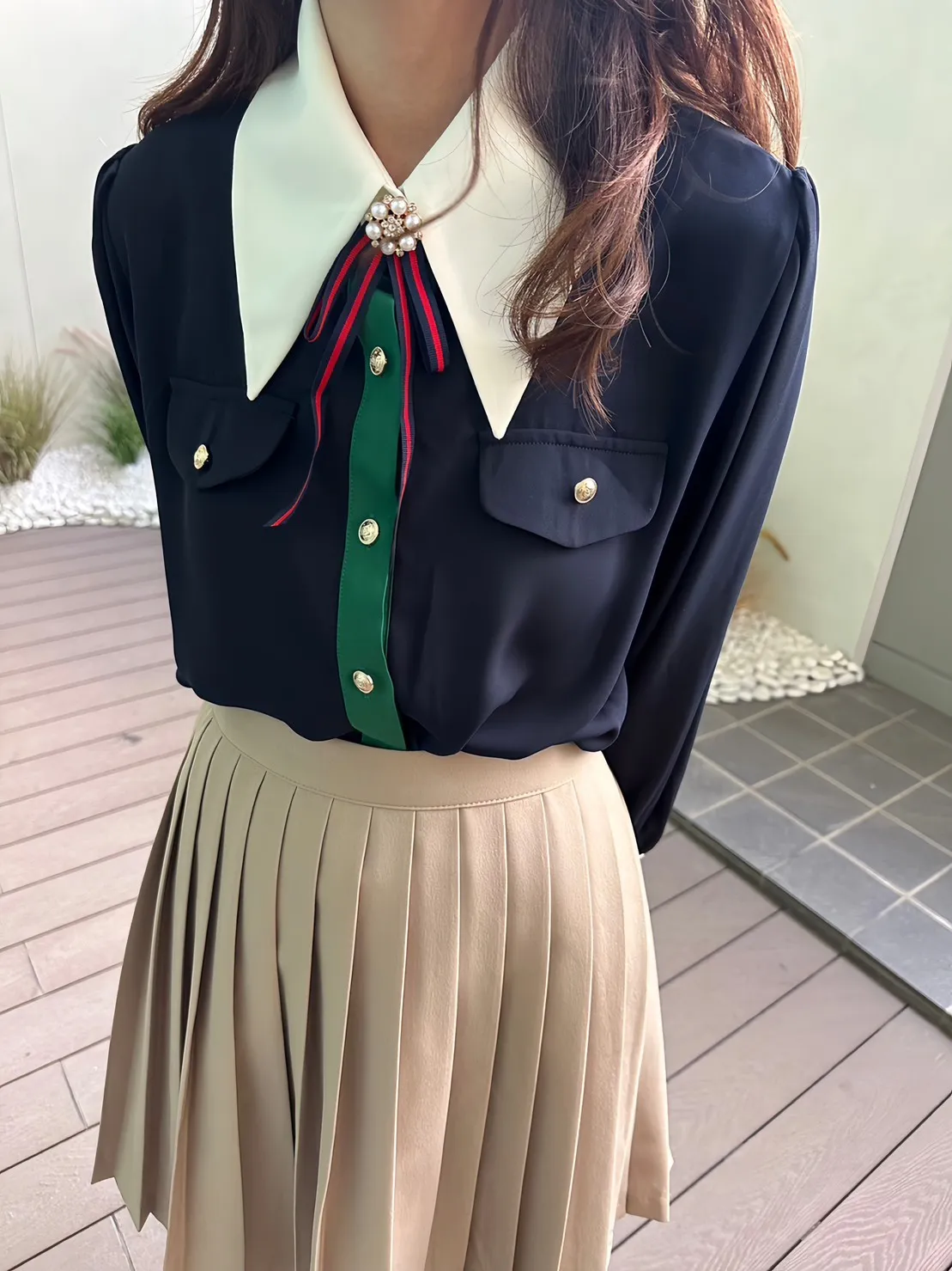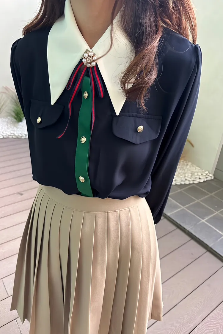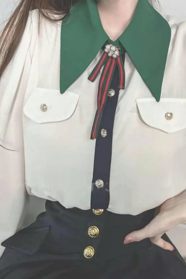 精緻金釦 英倫珍珠花緞帶可拆 穿到L號