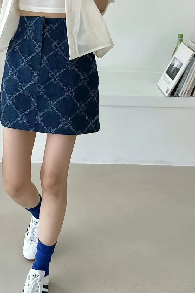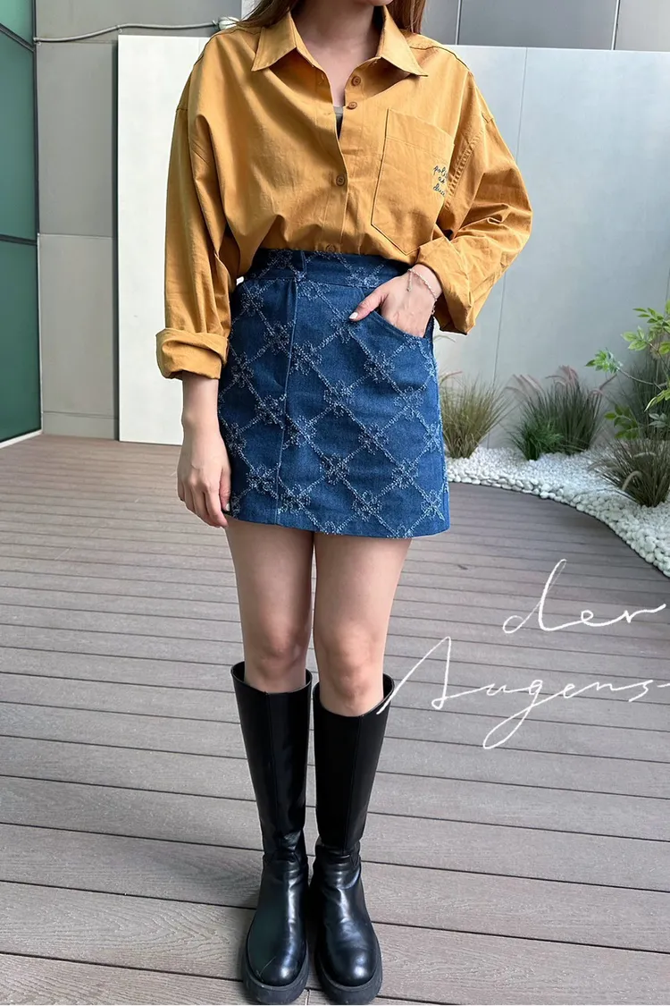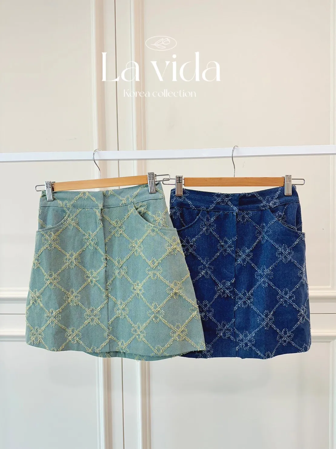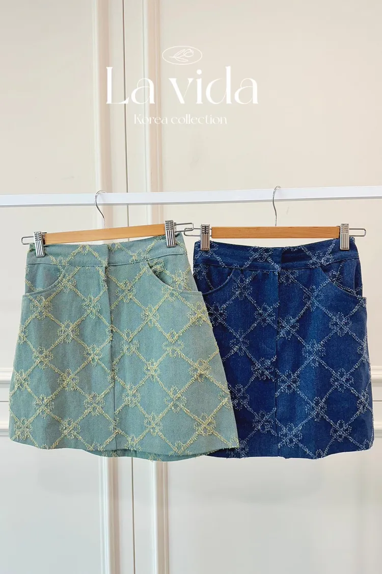 CS721極軟薄款牛仔棉花朵菱格短裙 淺藍 深藍 線上價$740 官網價$770