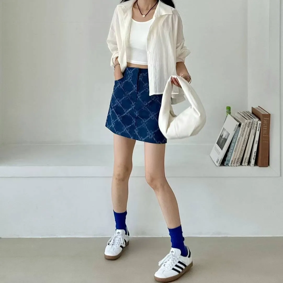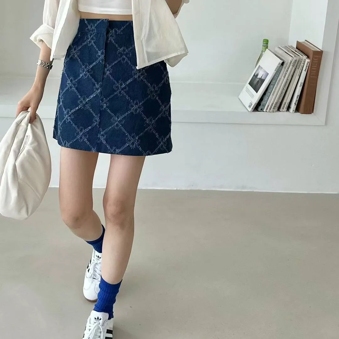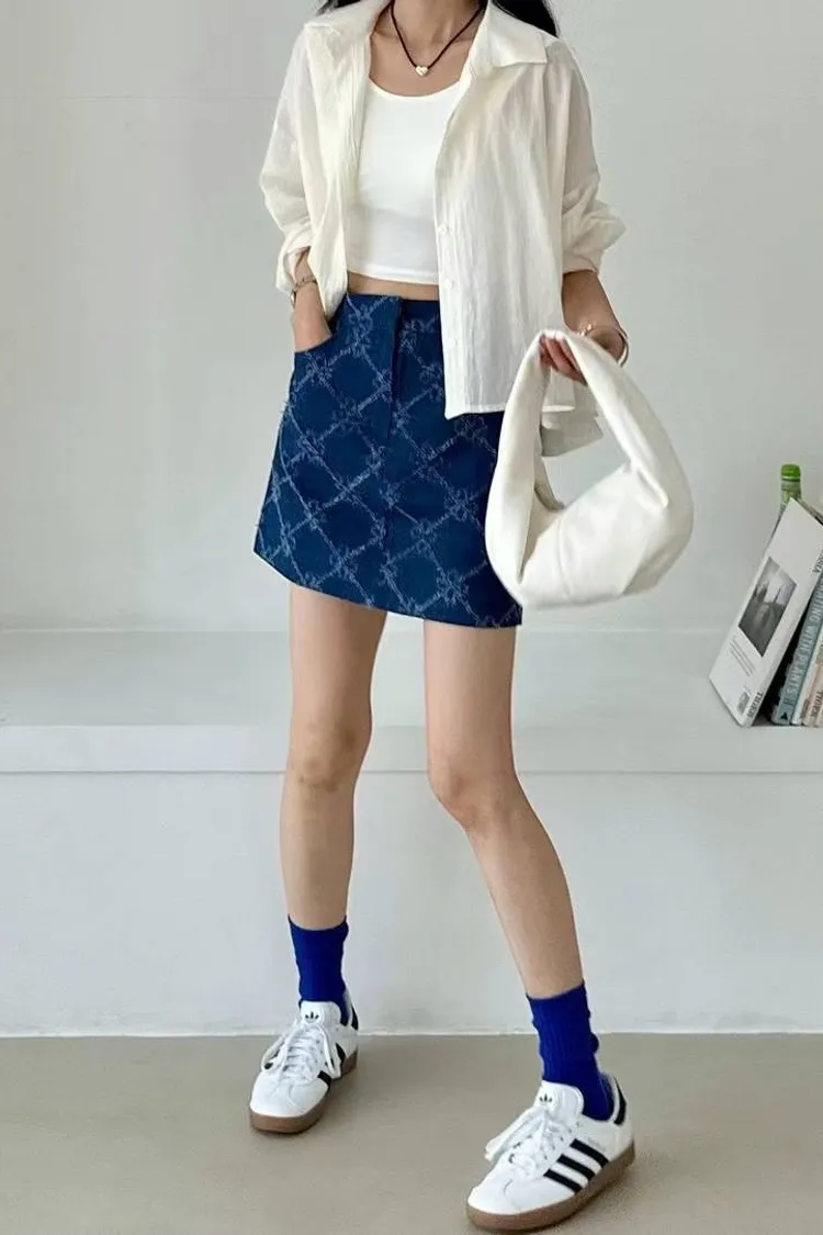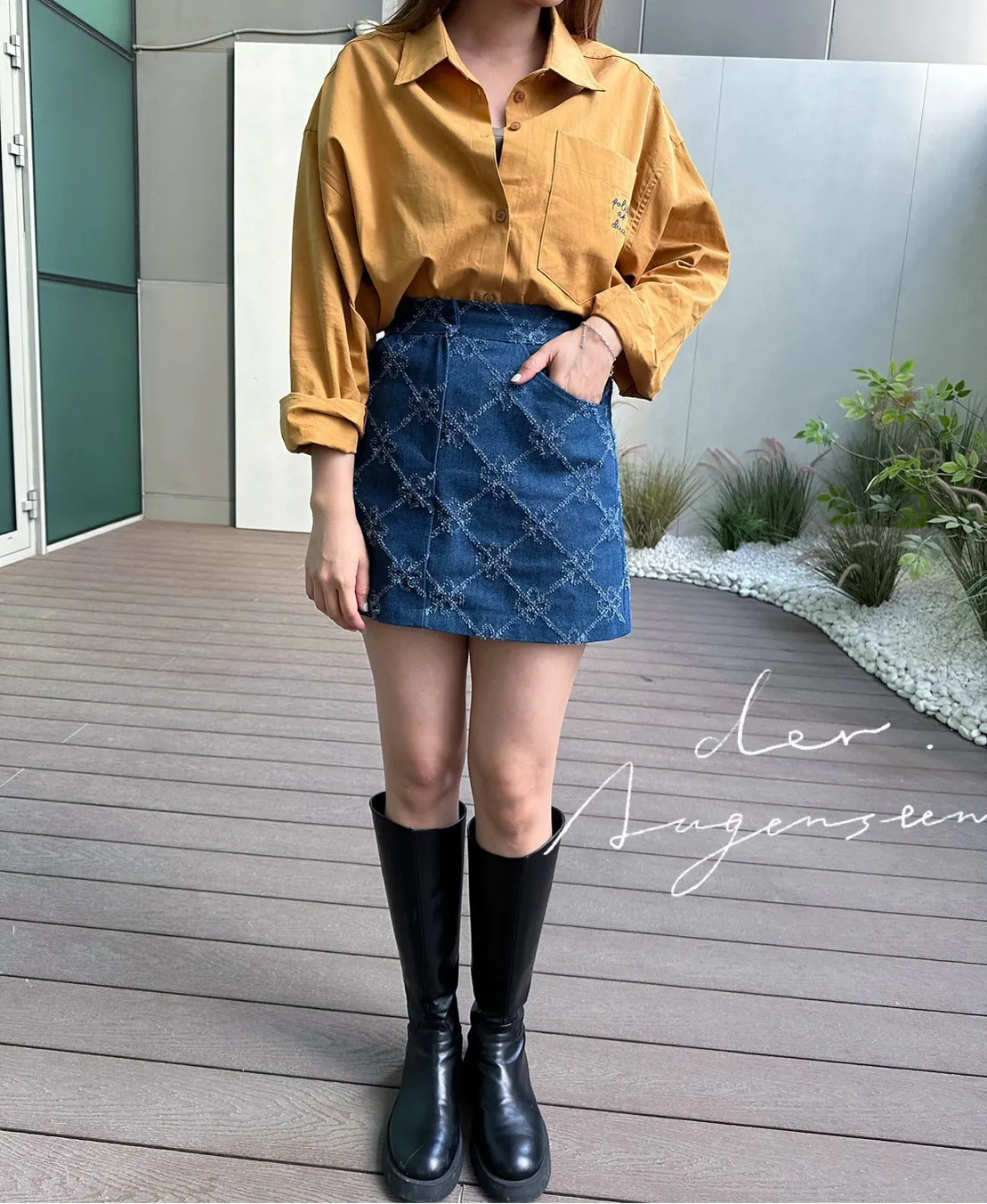CS721極軟薄款牛仔棉花朵菱格短裙 淺藍 深藍 線上價$740 官網價$770